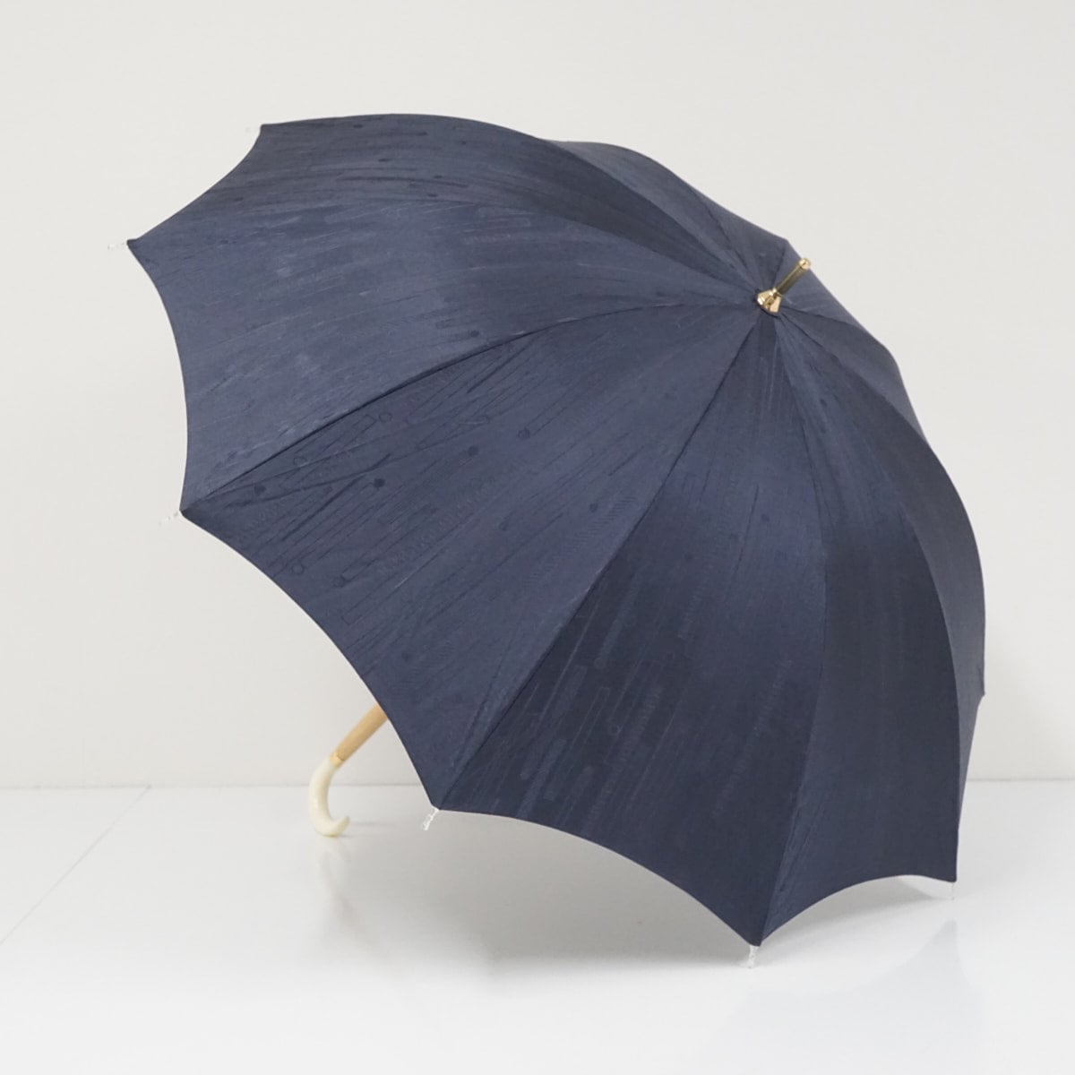ネイビーの生地に柄が織り込まれたデザインです。