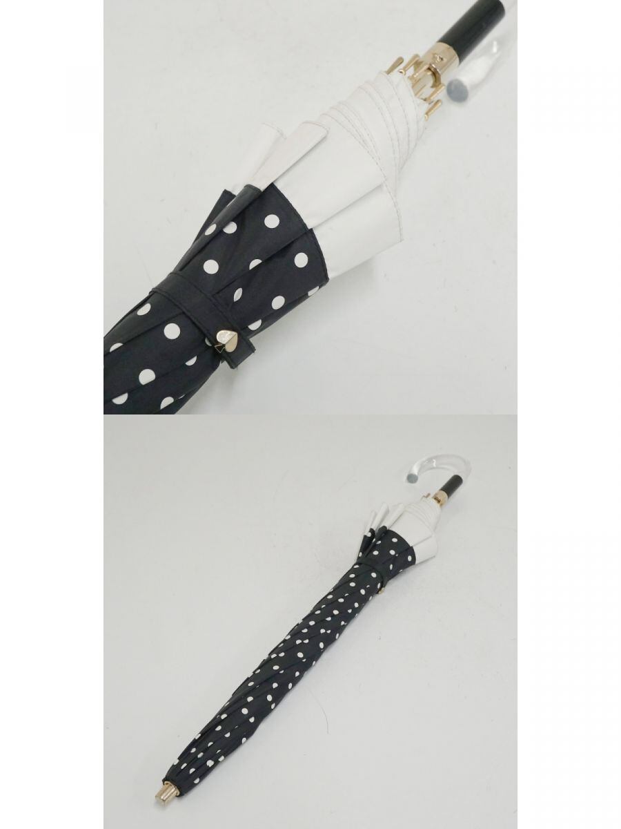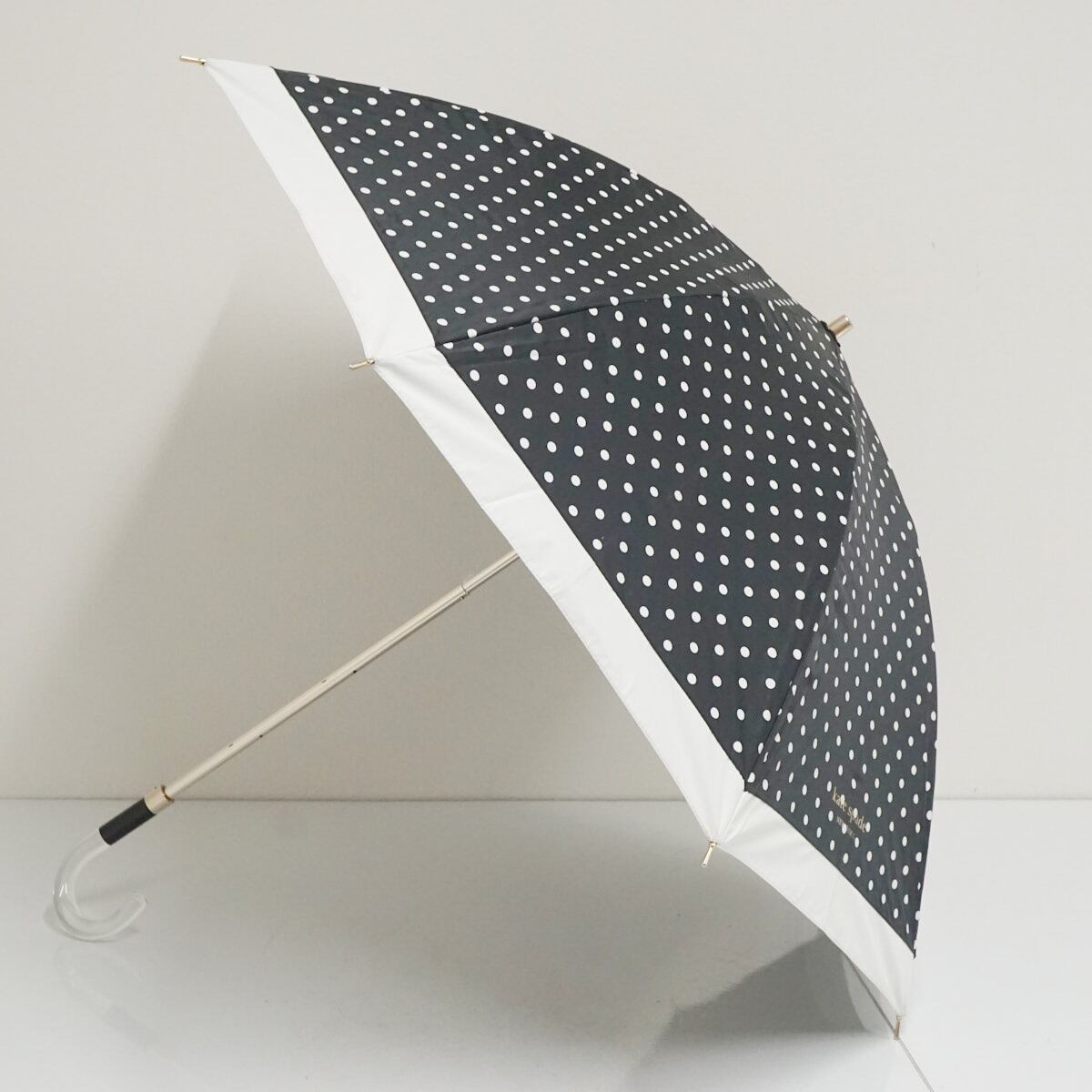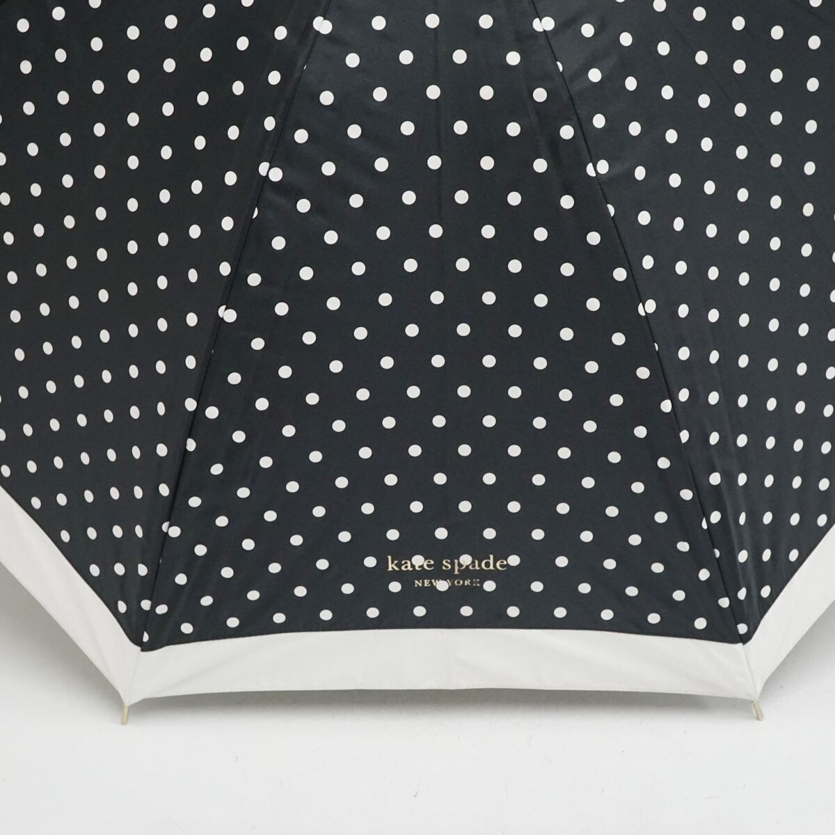 日傘 kate spade NEW YORK ケイトスペード USED品 晴雨兼用 ドット ブラック×ホワイト 遮光 UV 50cm S3517