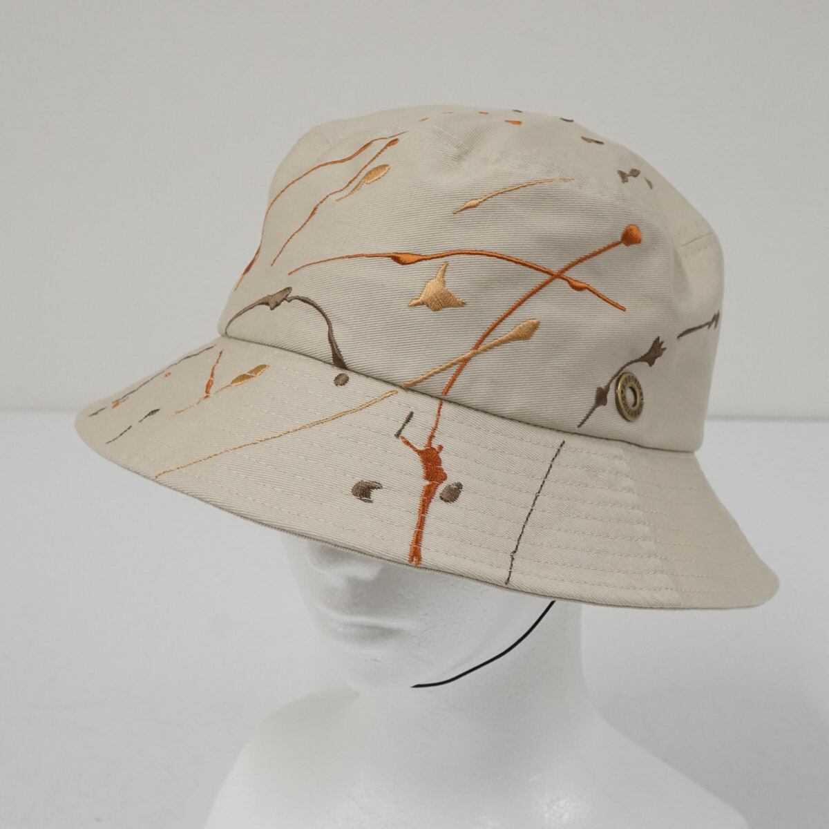 ペイント刺繍のバケットハット。ユニセックスでカジュアルに被れます。