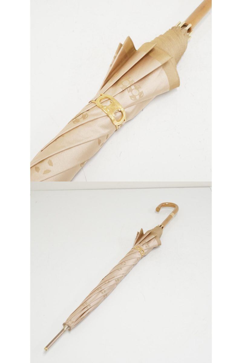 傘 CELINE セリーヌ USED品 絶版 ジャガード ピンクベージュ ロゴ ブランド 高級傘 60cm S3523