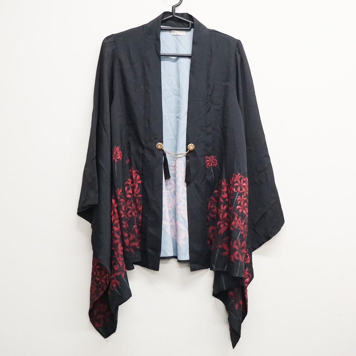 axes femme アクシーズファム 彼岸花柄羽織 USED品 着物風 和モダン タッセル付き 薄手 シアー感 和柄 即完売品 X9040