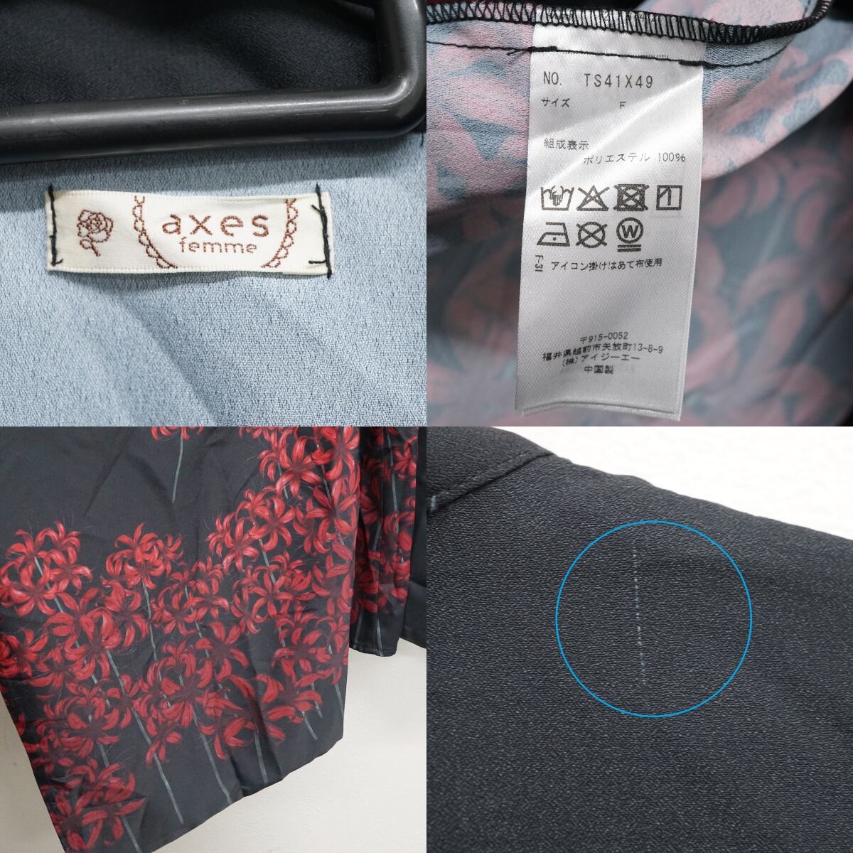 ※生地の引きつれがあります。(一部を画像にてご確認ください。背面や袖に多いです。)