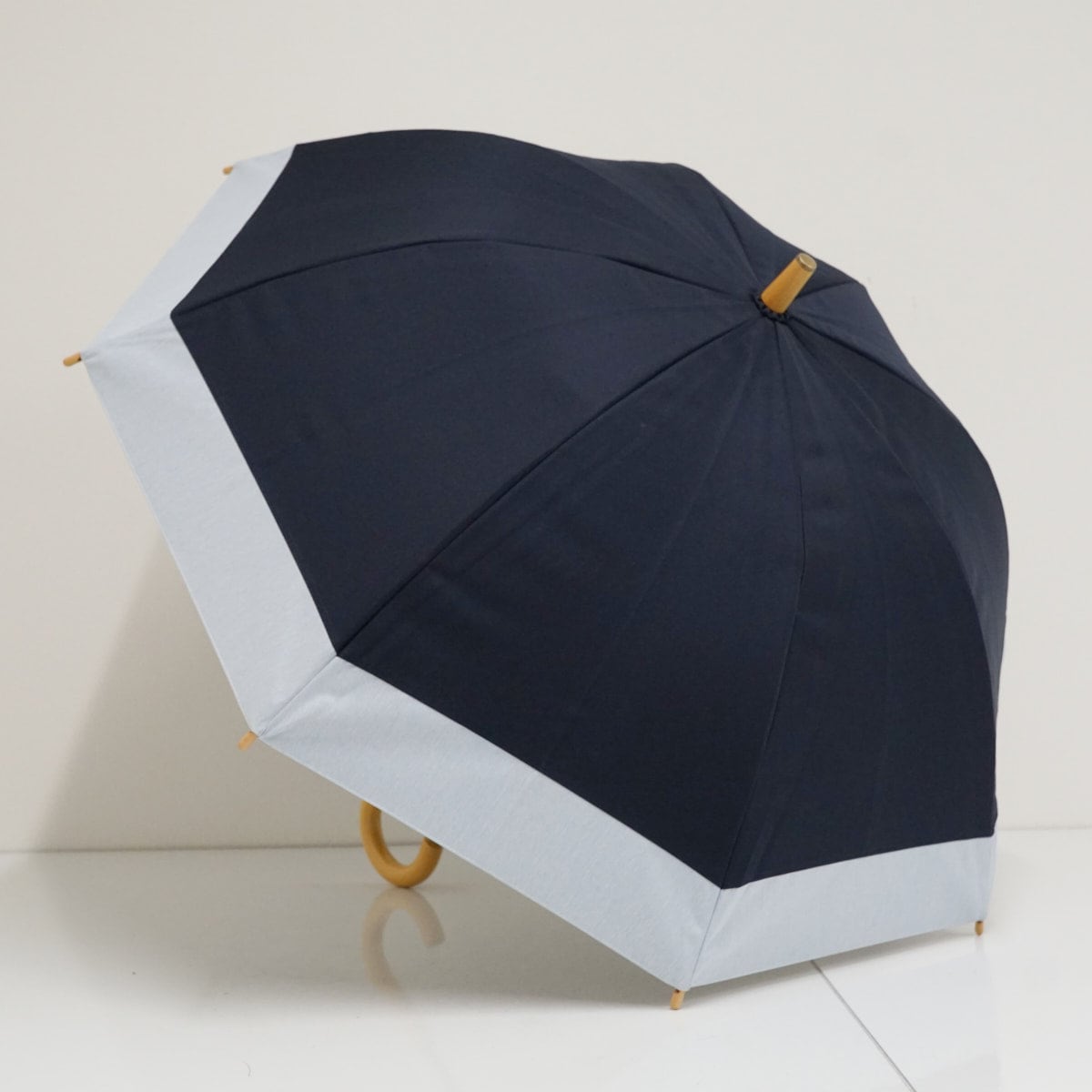 サンバリア100 完全遮光日傘 USED品 コンビ ネイビー フロストブルー バイカラー UV 遮熱 遮光 長傘 50cm S3528