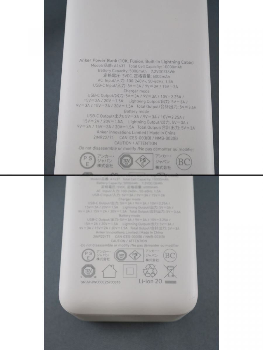 Anker アンカー Power Bank モバイルバッテリー USED品 Built-In ライトニングケーブル 充電確認済 正規 A1637 中古 完動品 ホワイト X9046