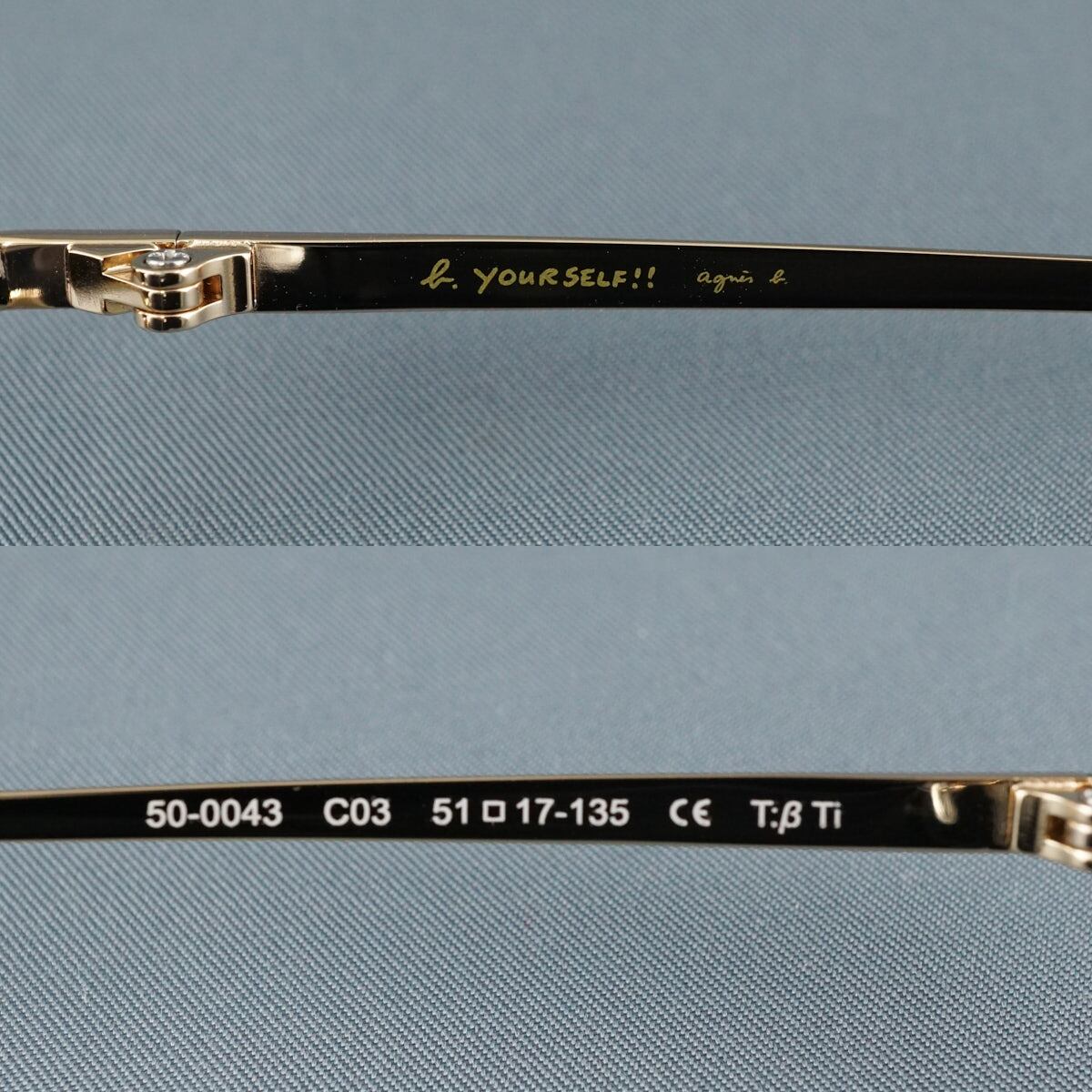 agnes b. アニエスベー 眼鏡 USED美品 50-0043 ネイビー ゴールド レディース ボストン X9136