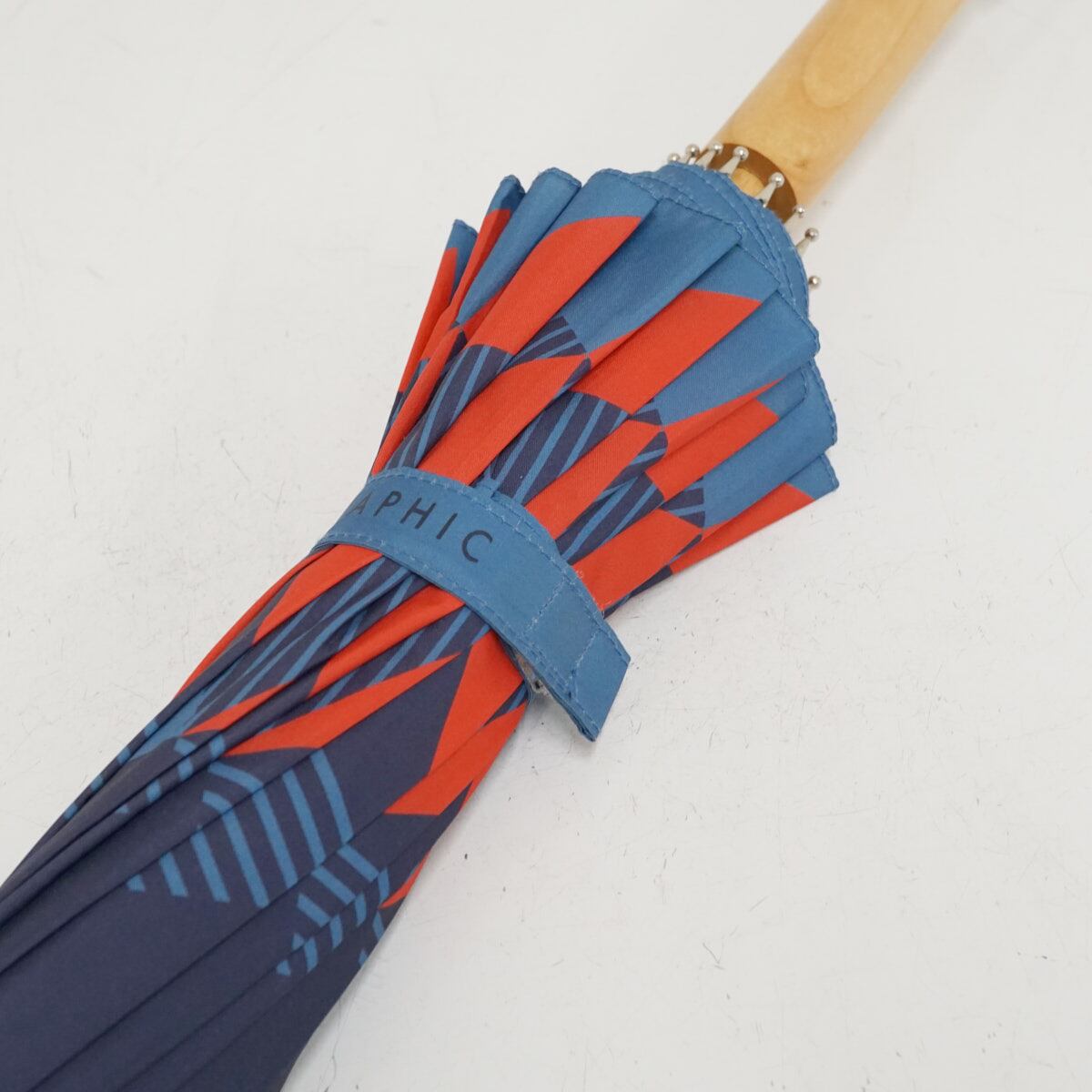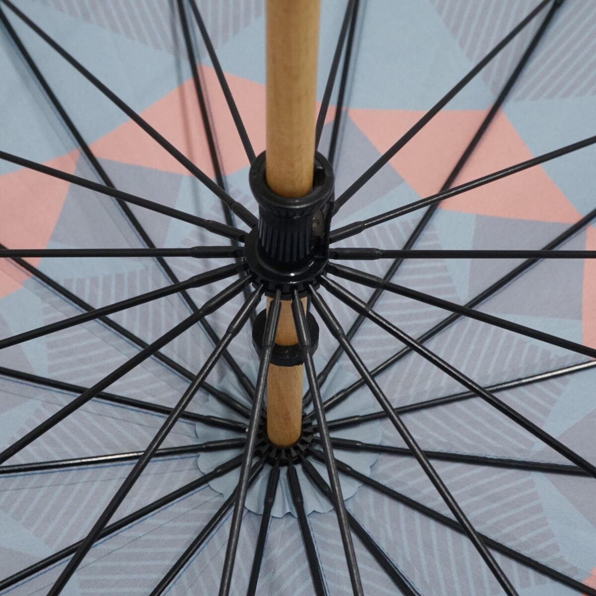 傘布全面に大胆でモダンな和柄のグラフィックデザインを施した16本の骨組の長傘です。