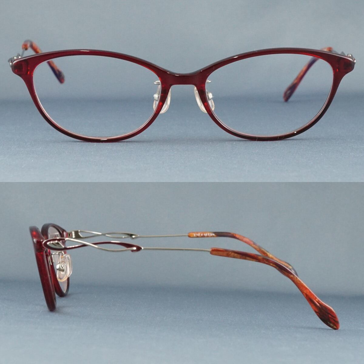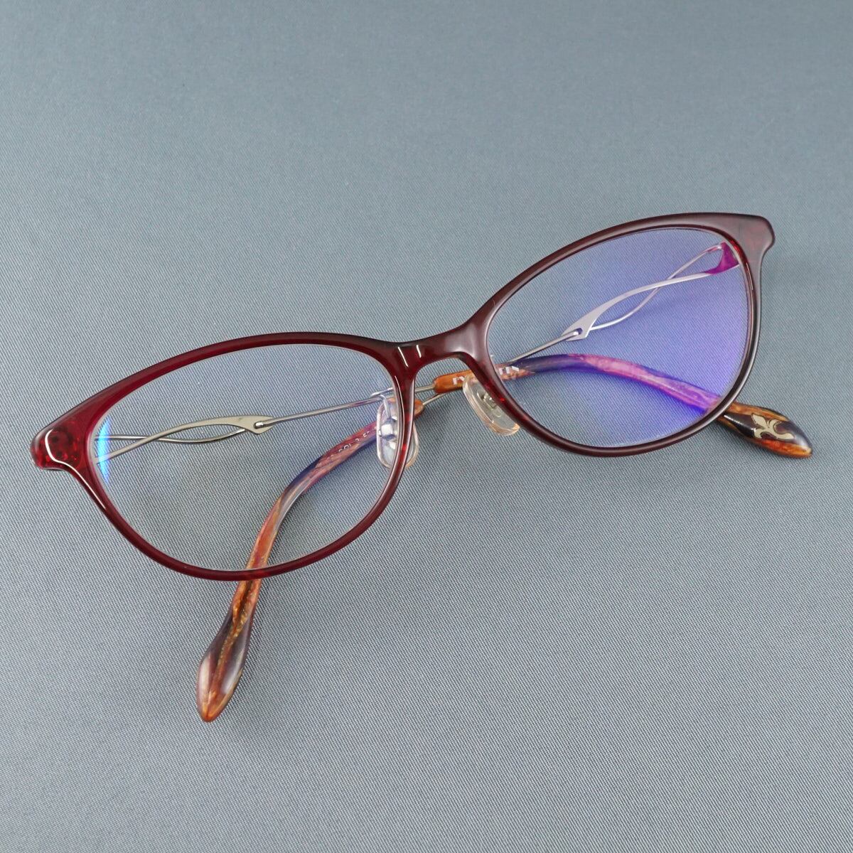 眼鏡 EYE GARDEN USED美品 EG-2032 レディース ブラウン レッド βチタン 日本製 メガネ 中古 X9186
