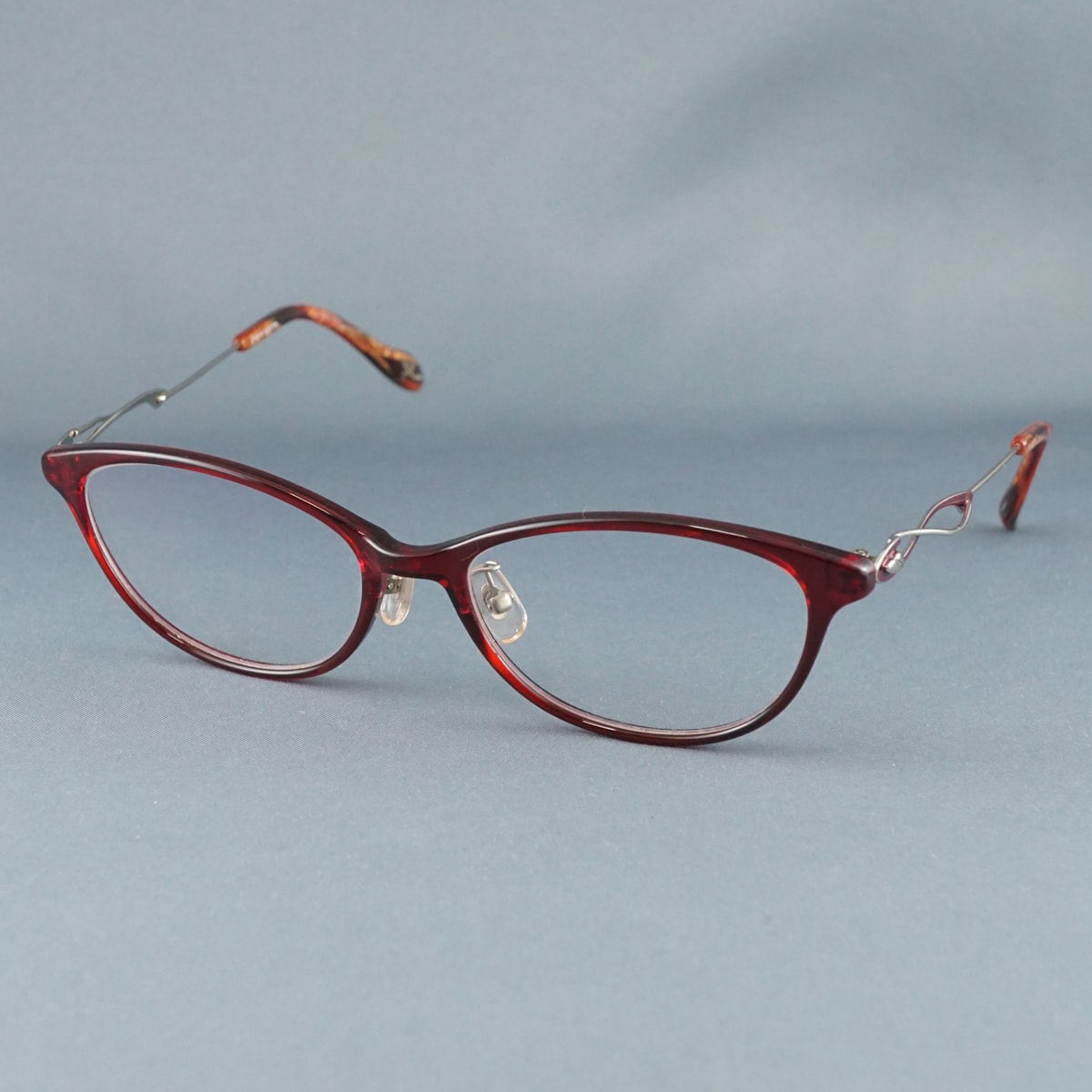 テンプルに弾力性と軽さが魅力のβ-チタンを使用した、女性向けメガネフレームです。