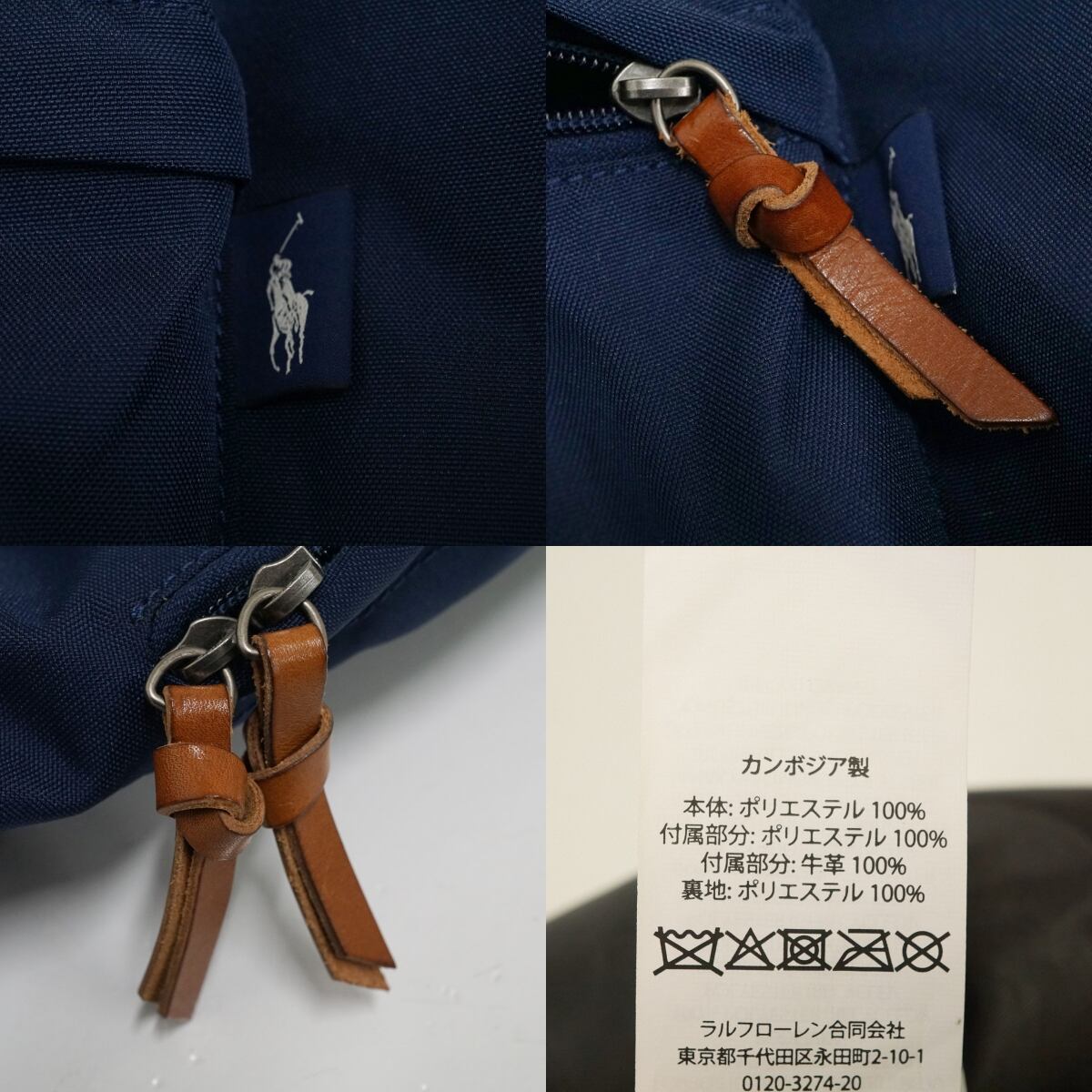 POLO RALPH LAUREN ポロラルフローレン レザートリムバックパック USED美品 鞄 リュック ネイビー X9221