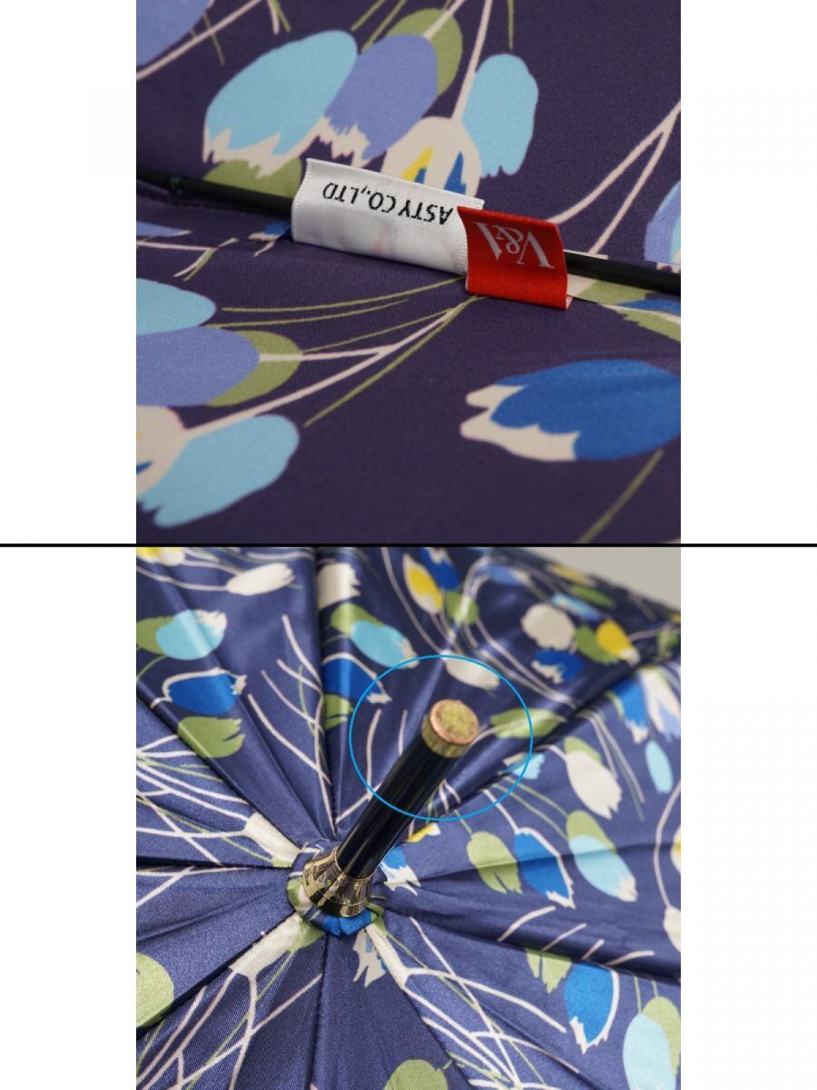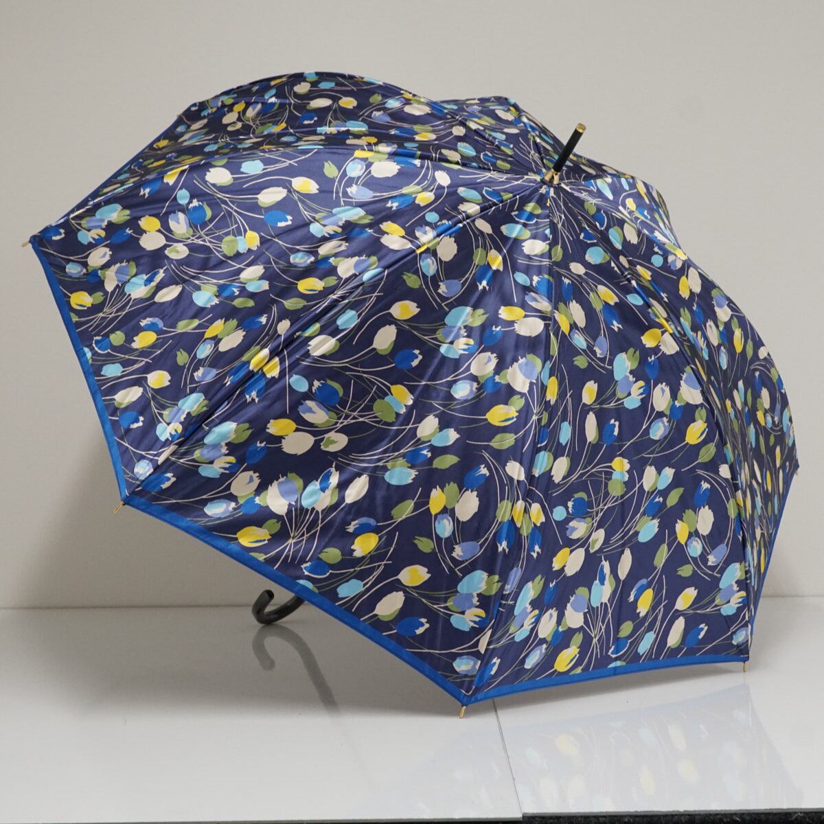 耐風傘 V&A ヴィクトリア アンド アルバート USED品 チューリップハーモニー フラワー ネイビー ジャンプ UV 60cm S3538