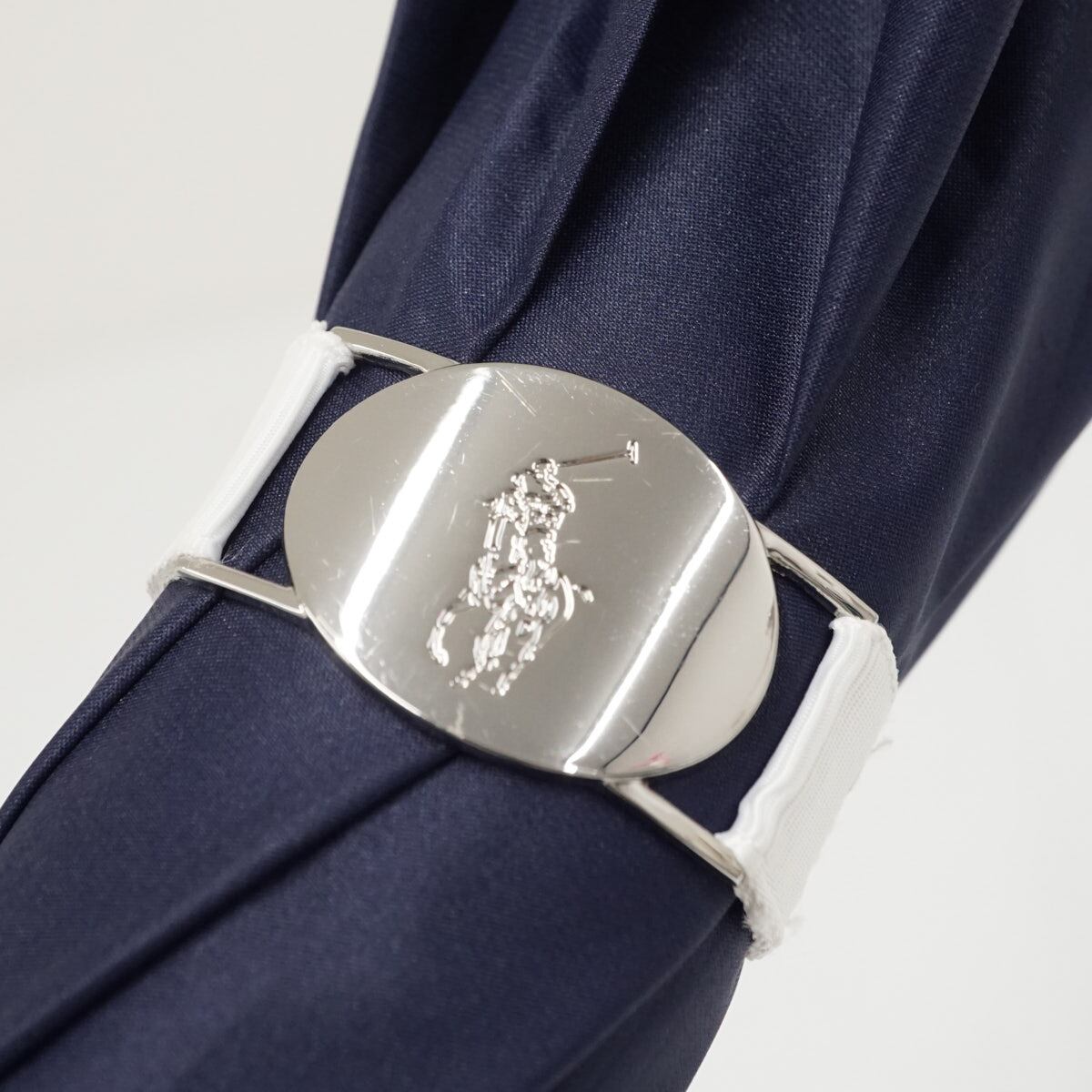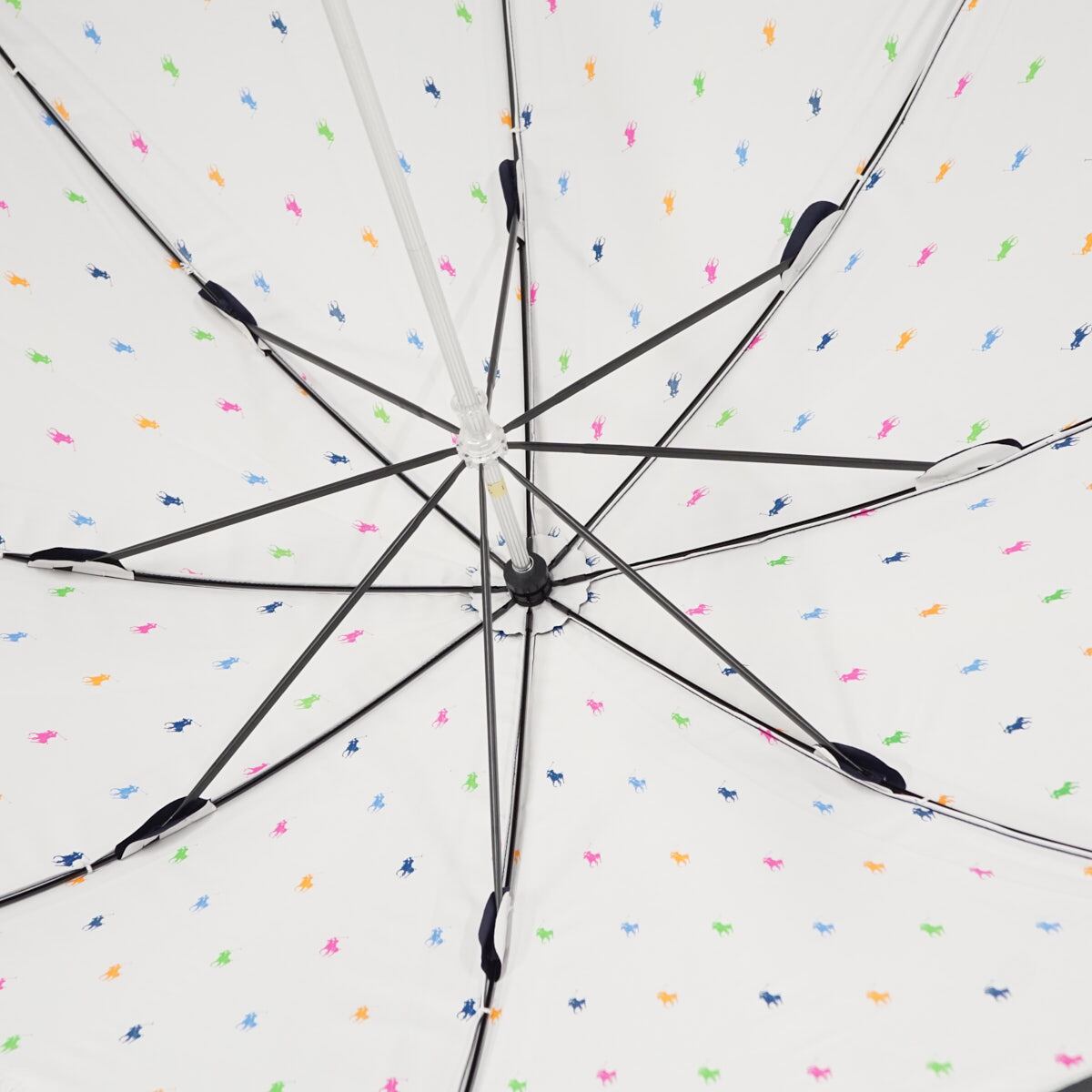 外側はネイビー生地にワンポイントロゴを入れたシンプルなデザイン、内側はカラフルなポロポニーがデザインされたおしゃれな一本です。