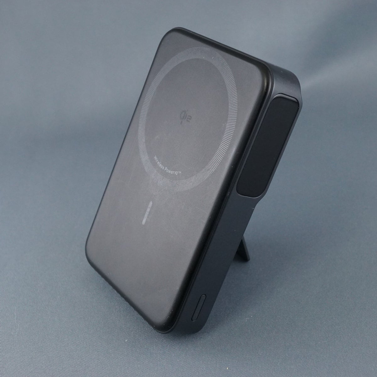 折りたたみ式スタンドを搭載。マグネット式ワイヤレス充電に対応のモバイルバッテリー。