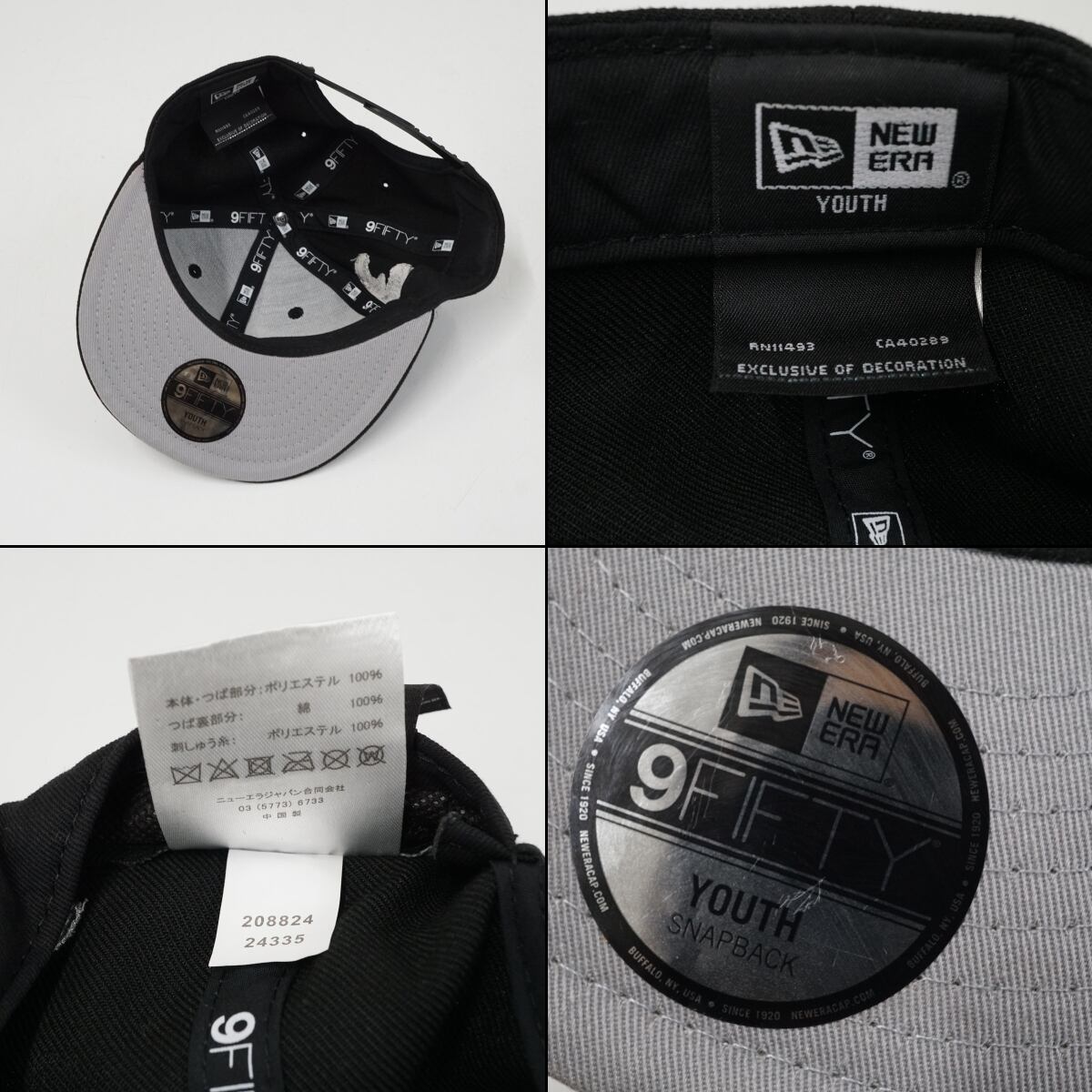 NEW ERA Youth 9FIFTY ニューエラ キッズキャップ USED美品 帽子 52-55.8cm 恐竜 ダイナソー ブラック X9239