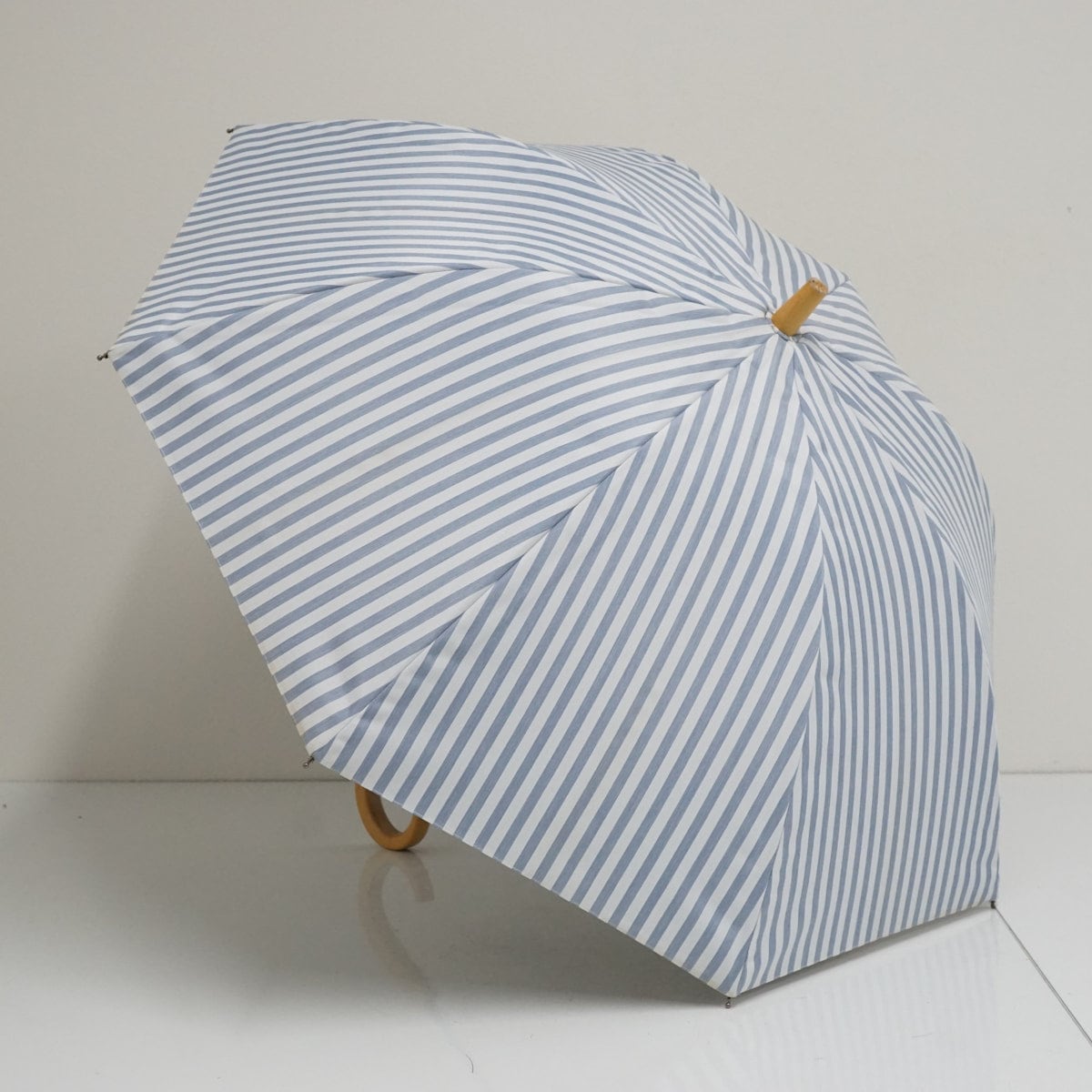 サンバリア100 完全遮光日傘 USED品 Sサイズ ストライプ ブルー UV カーボン骨 遮熱 47cm S3560
