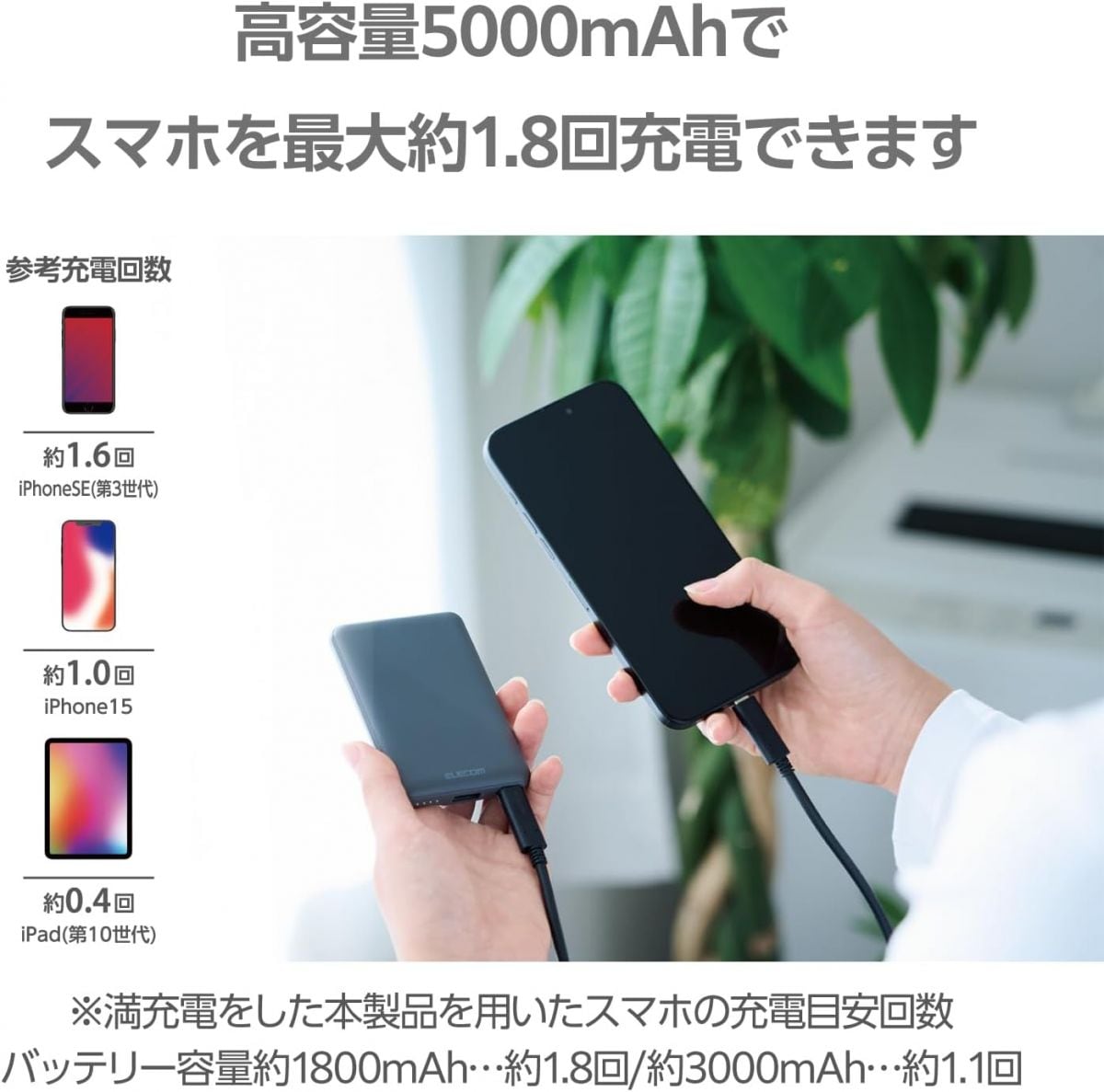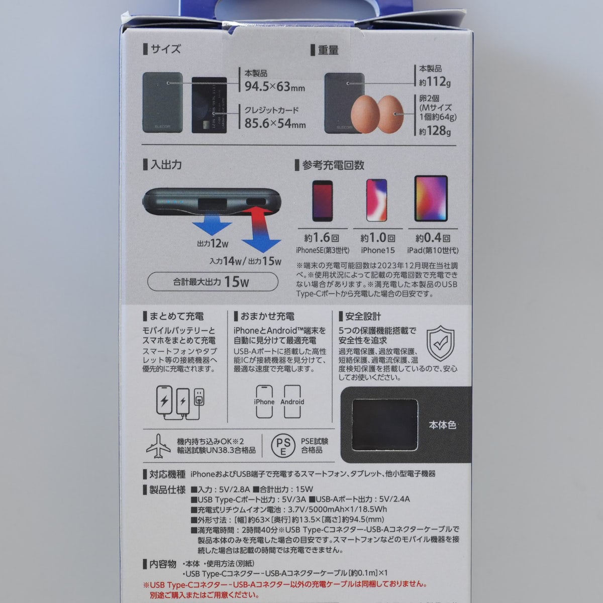 エレコム モバイルバッテリー 新品 5000mAh 15W 5V 3A Type-C USB-A ケーブル付 ダークグレー 軽量 小型 薄型 充電器 DE-C45-5000DGY X9285