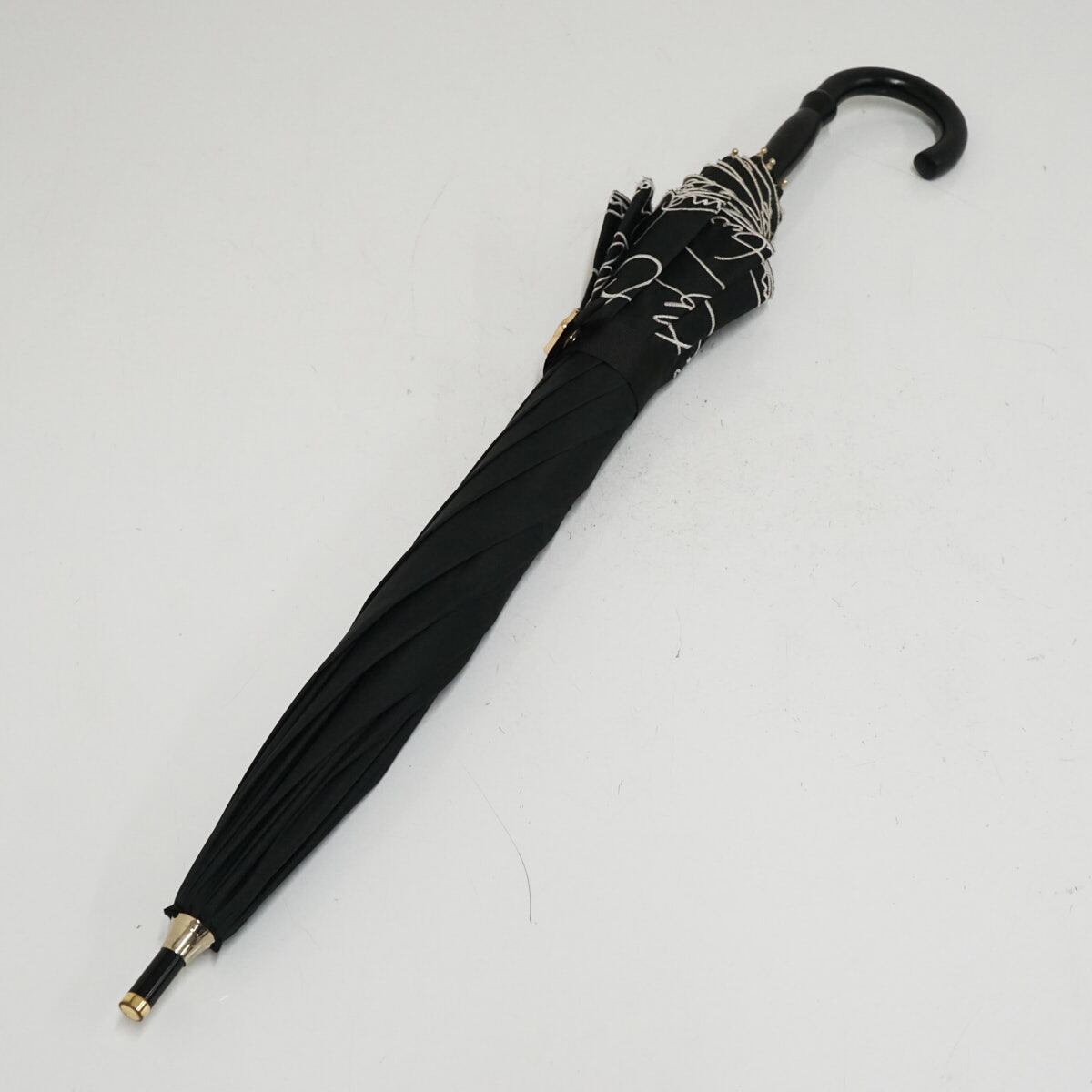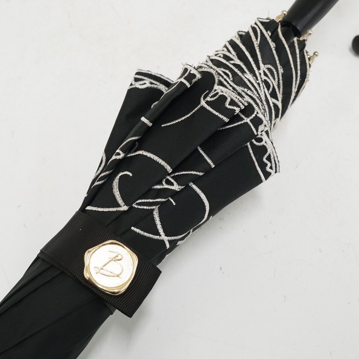 日傘 Beaurance ビューランス USED品 晴雨兼用 ブラック スカラップフリル 刺繍 東レサマーシールドLII 遮光 UV 軽量 50cm S3559