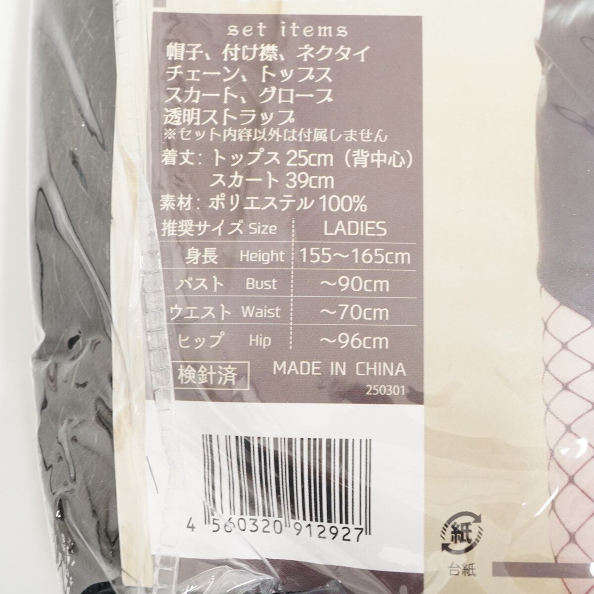 帽子、付け襟、ネクタイ、トップス、スカート、チェーン、グローブ、透明ストラップ、網タイツ