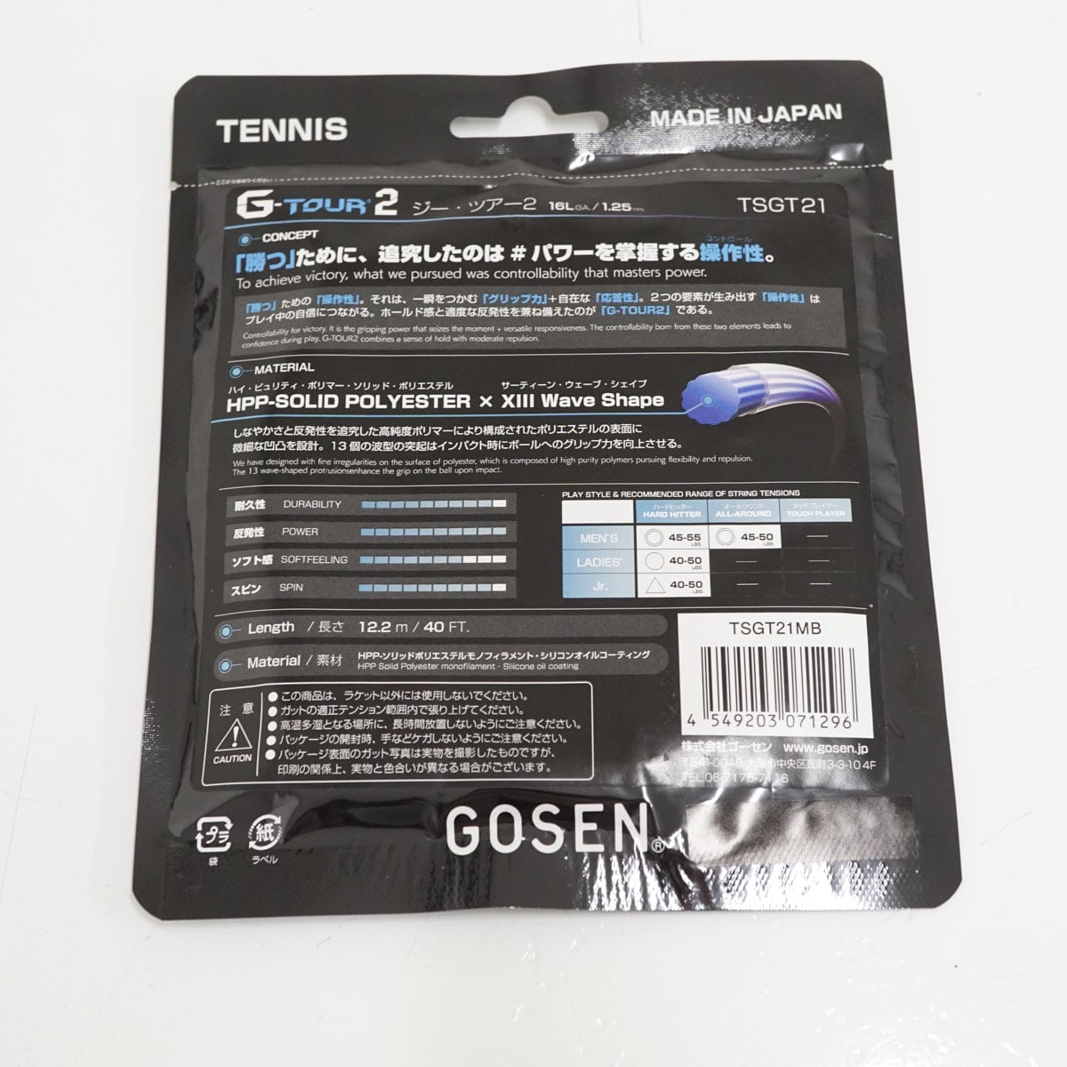 ゴーセン(GOSEN)のポリエステルストリング「G-TOUR2(ジーツアー2)」です。