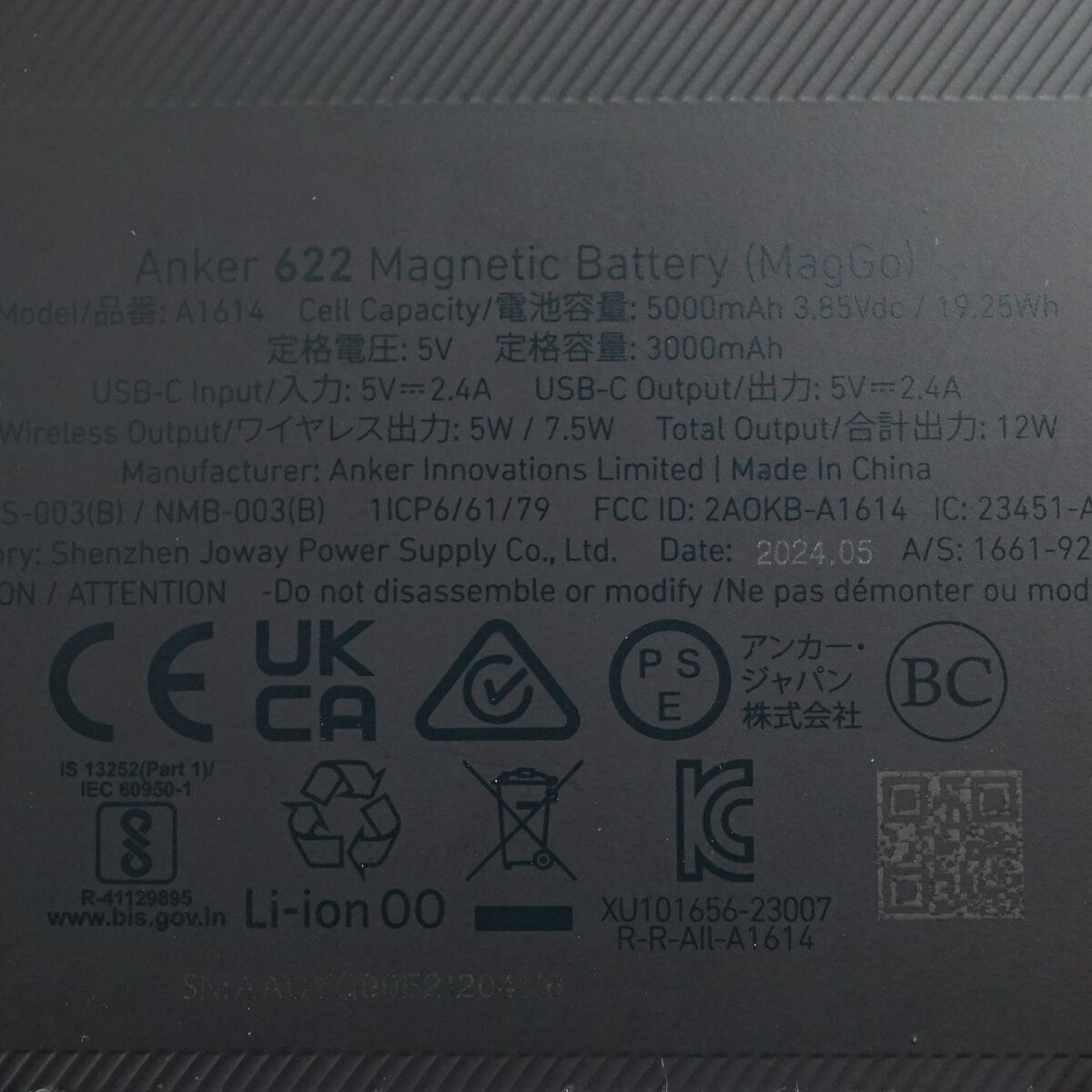 Anker アンカー モバイルバッテリー 622 Magnetic Battery USED品 MagGo 充電確認済 正規品 A1614 ブラック 中古 完動品 X9323