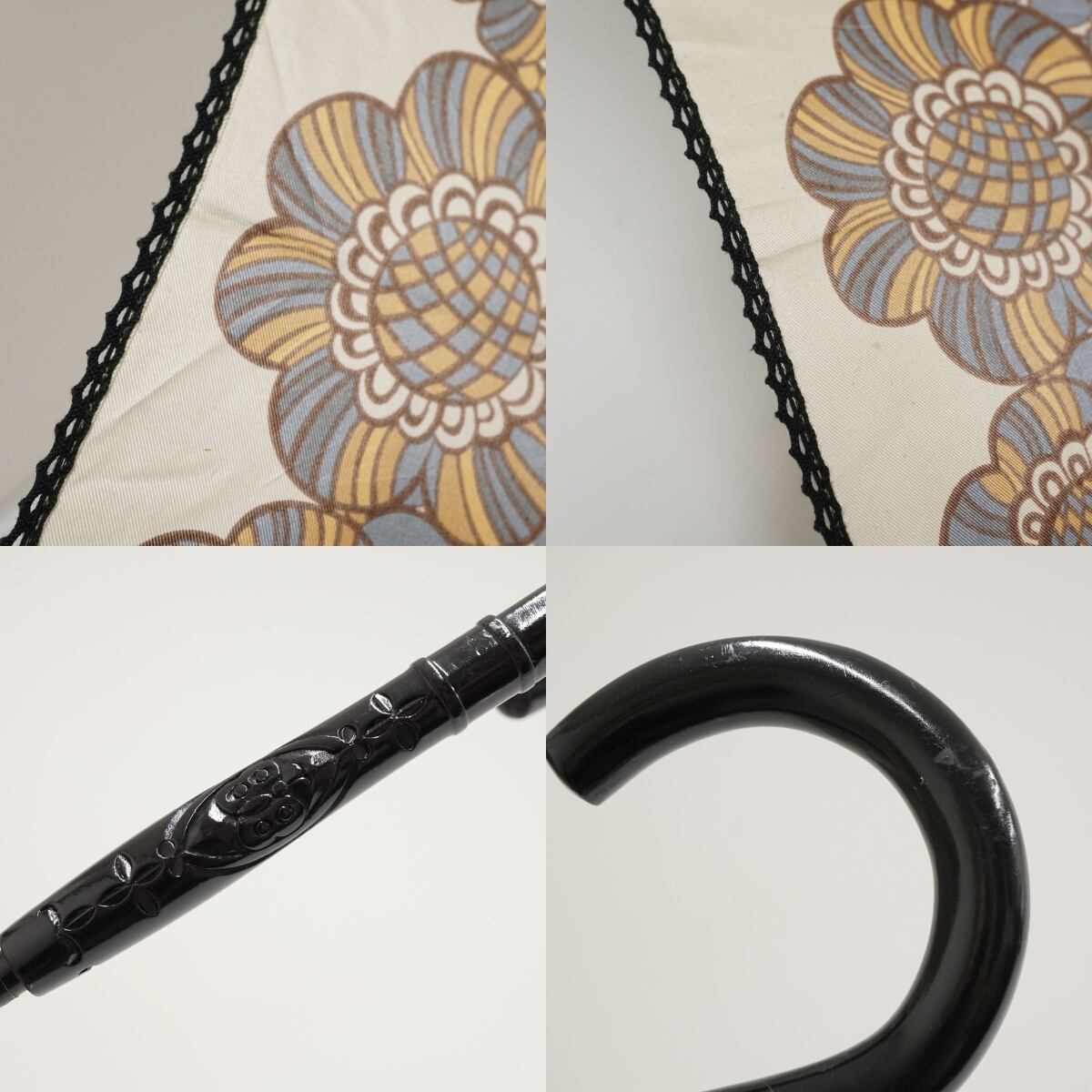 傘 ANNA SUI アナスイ パゴダ傘 USED美品 フラワー 個性的 ブルー×オレンジ 58cm S3568