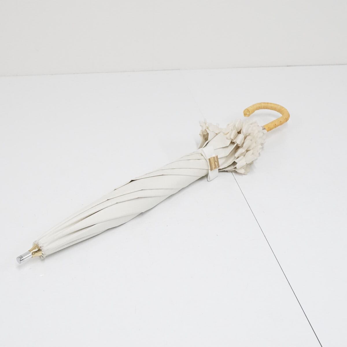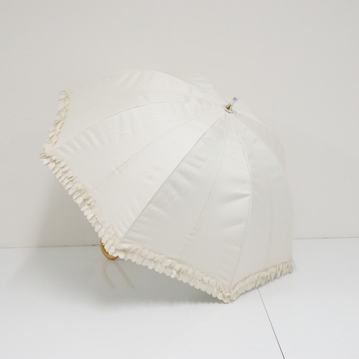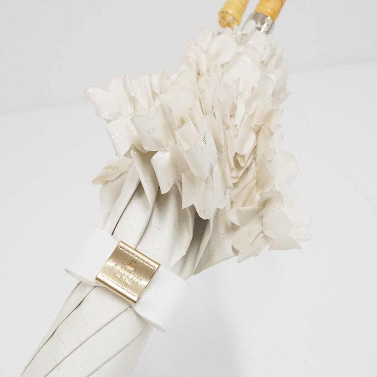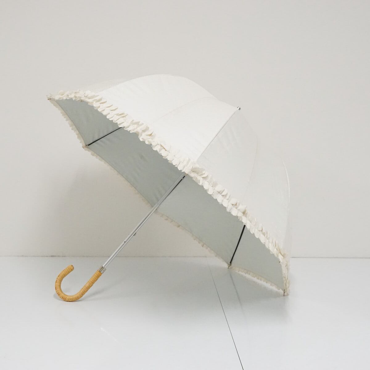 日傘 ランバン オンブルー LANVIN en Bleu ドビー フリル 晴雨兼用 ホワイト エレガント 遮光 遮熱 UV ラタン巻き A3578