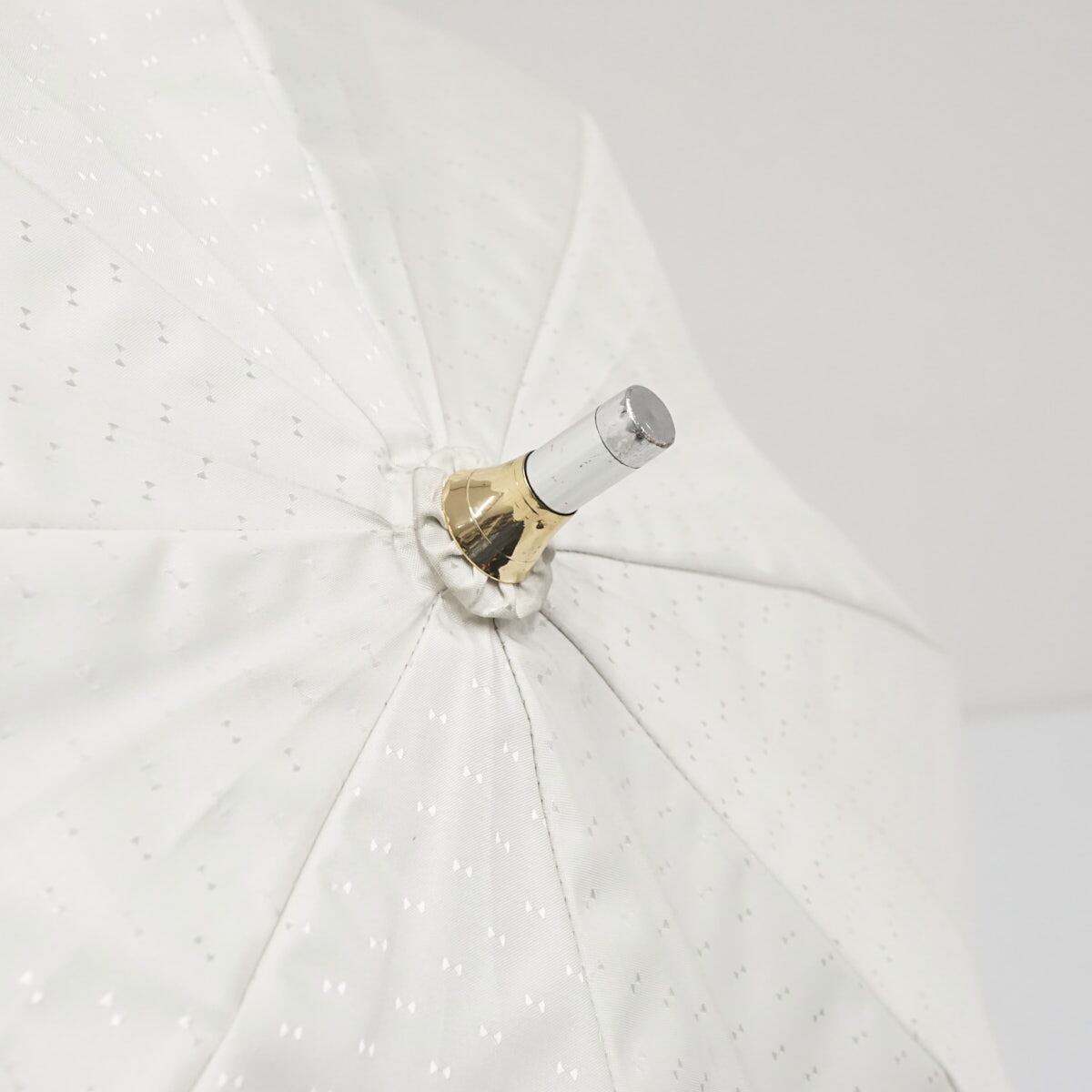 ホワイトの生地の全体にリボンドットを織り込み