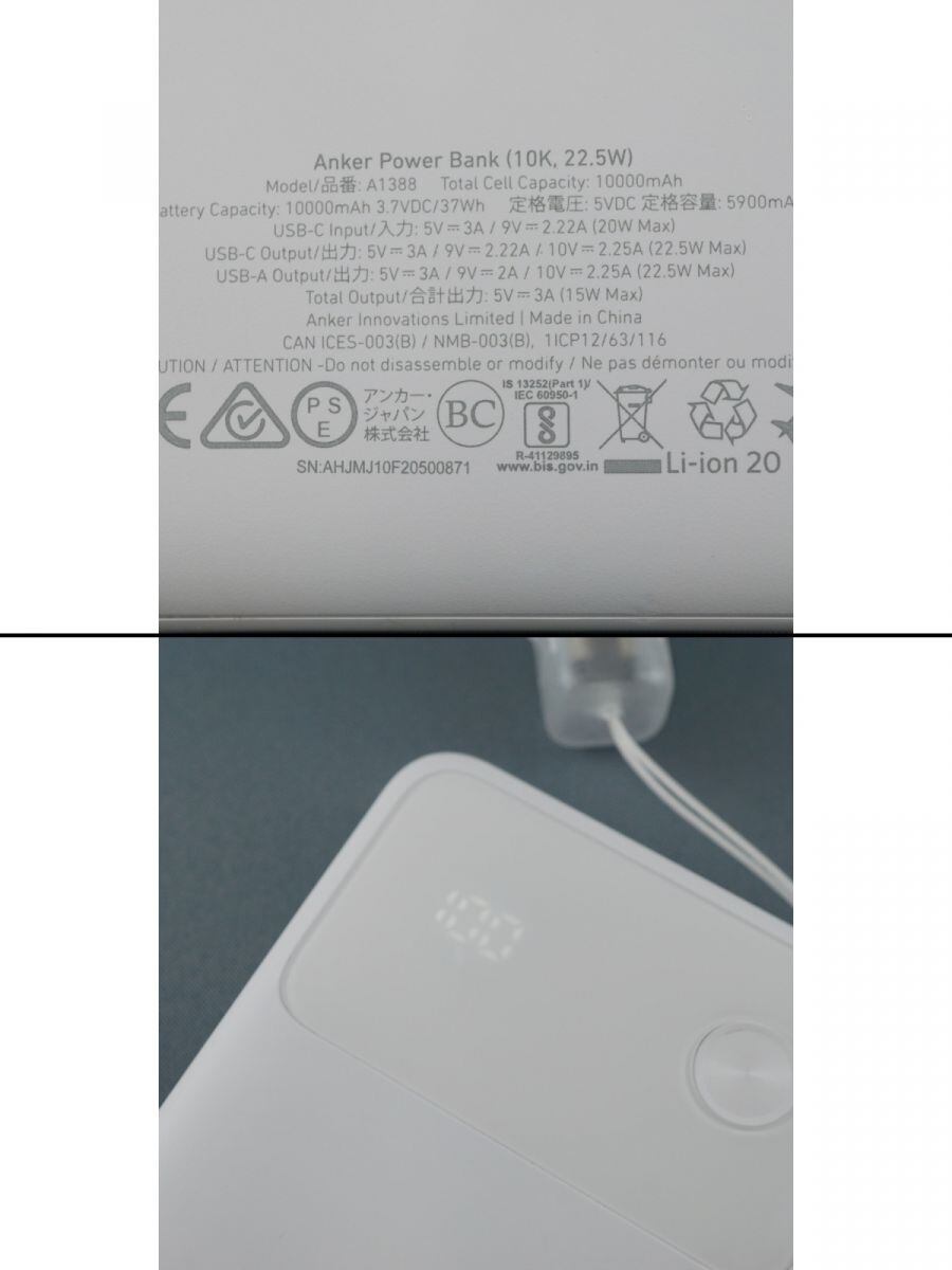 Anker アンカー Power Bank モバイルバッテリー USED美品 USB-C 充電確認済 正規品 A1388 ホワイト 中古 完動品 X9330