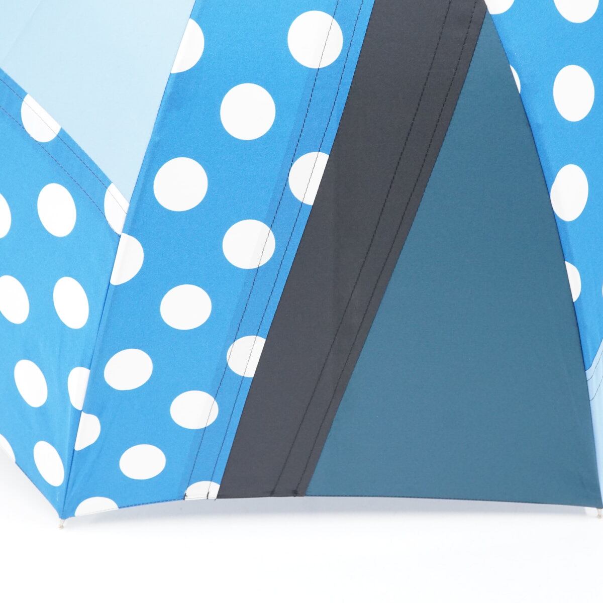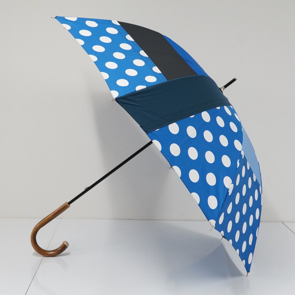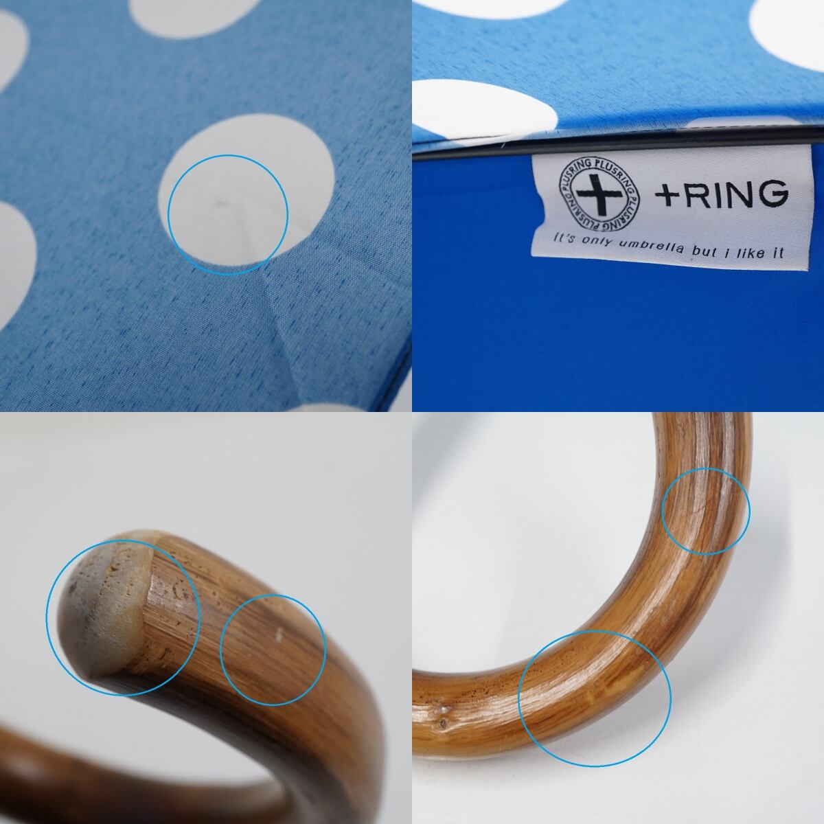 傘 +RING プラスリング USED品 パッチワーク ブルー系 ドット 木製手元 60cm A3587