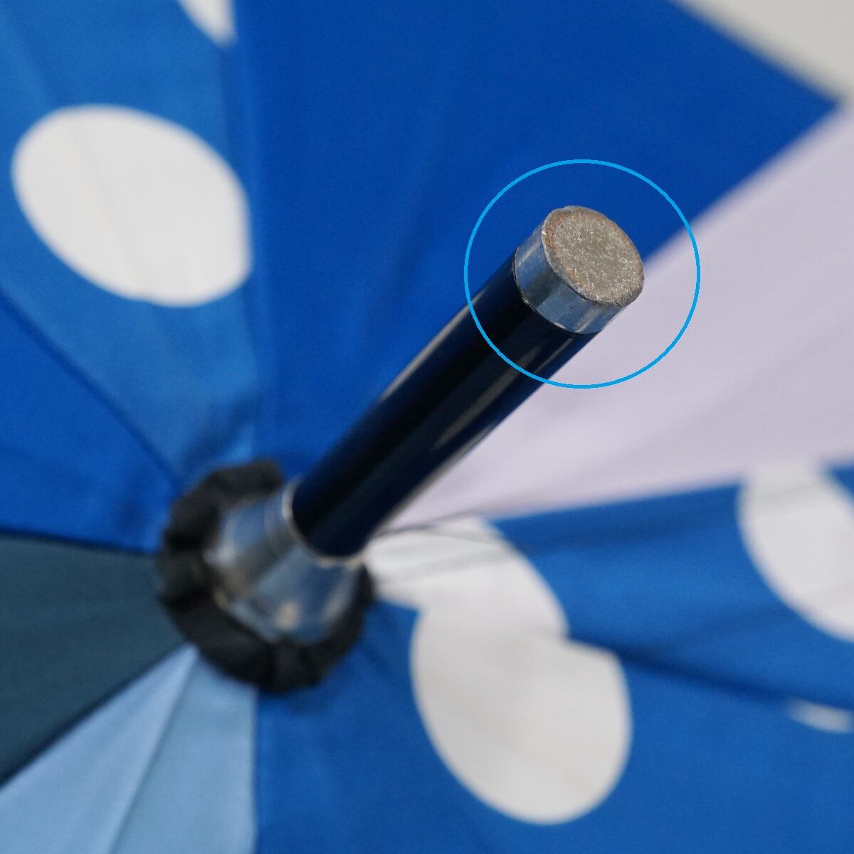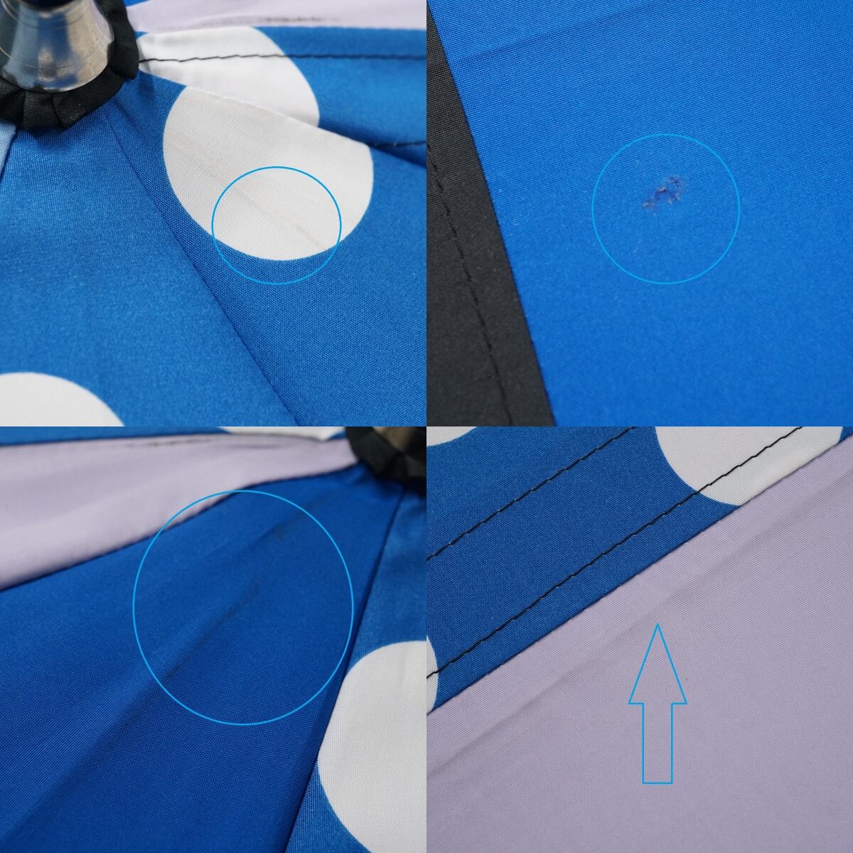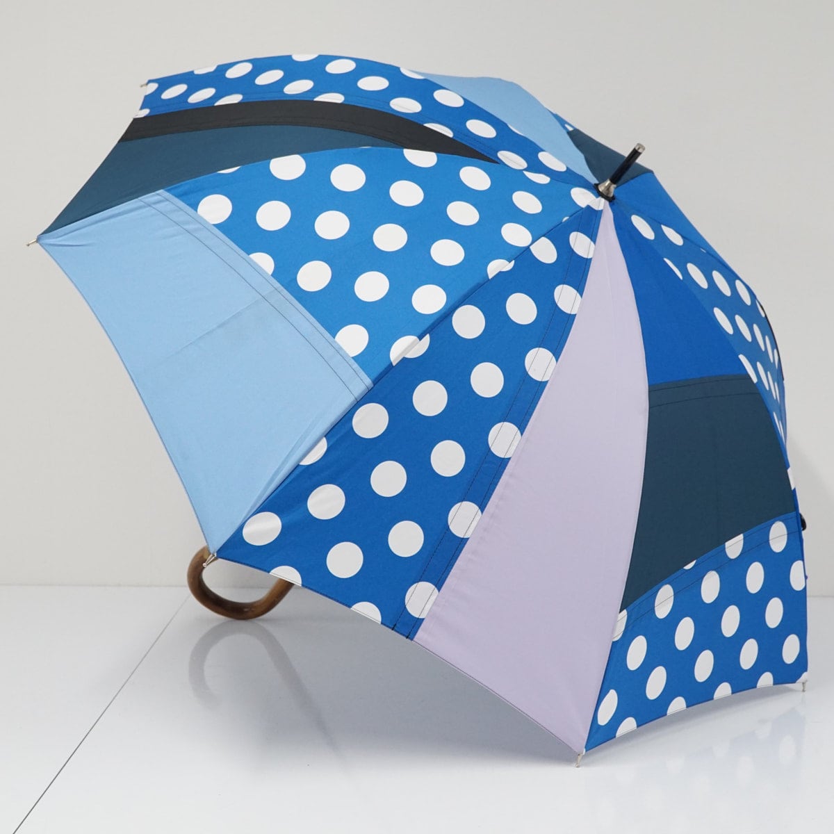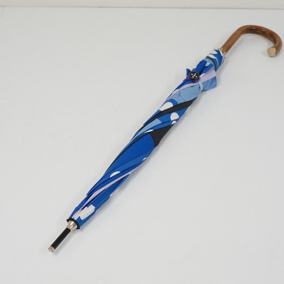 傘 +RING プラスリング USED品 パッチワーク ブルー系 ドット 木製手元 60cm A3587
