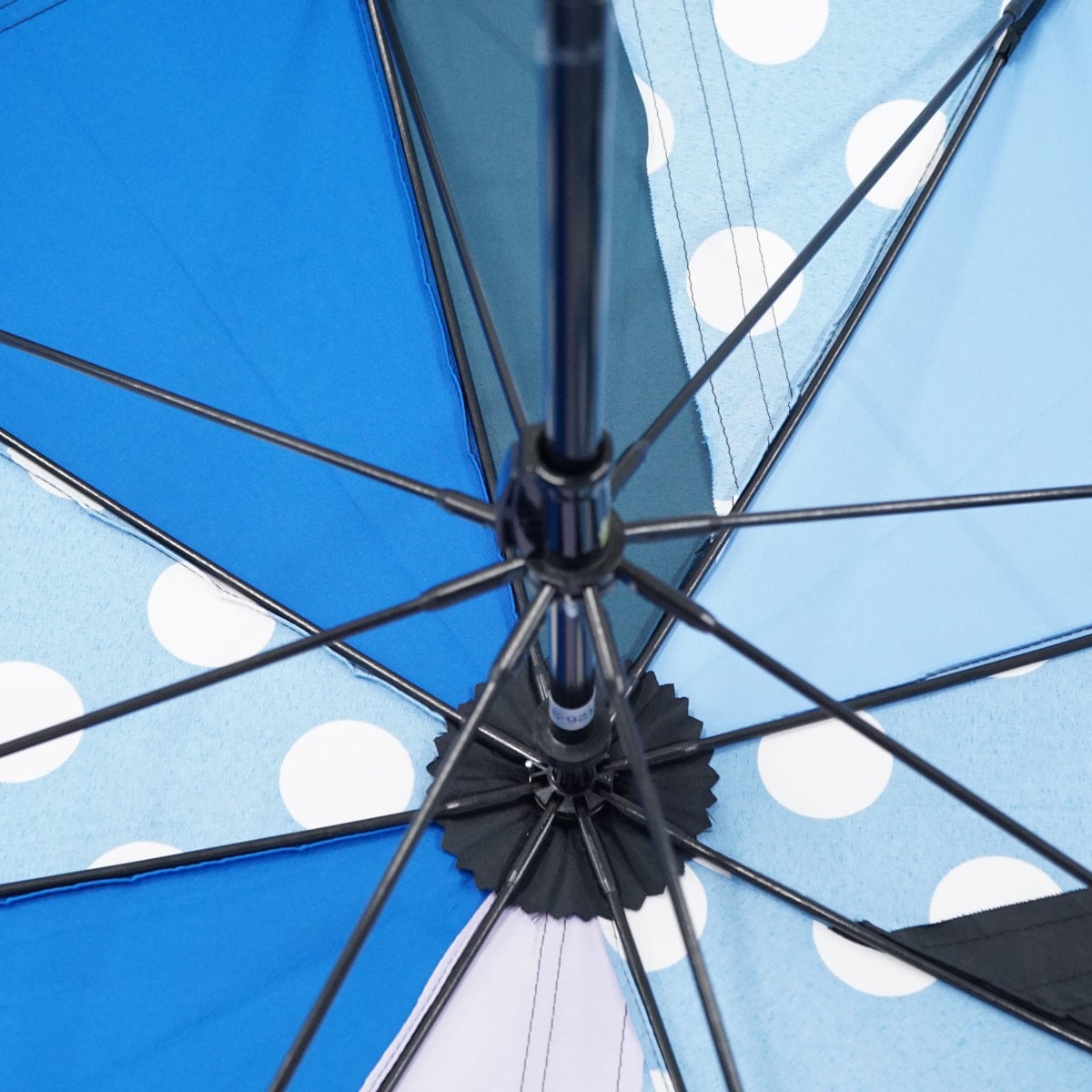 傘の1コマ1コマ異なった色柄のものを組み合わせた張り分けタイプのパターン傘です。