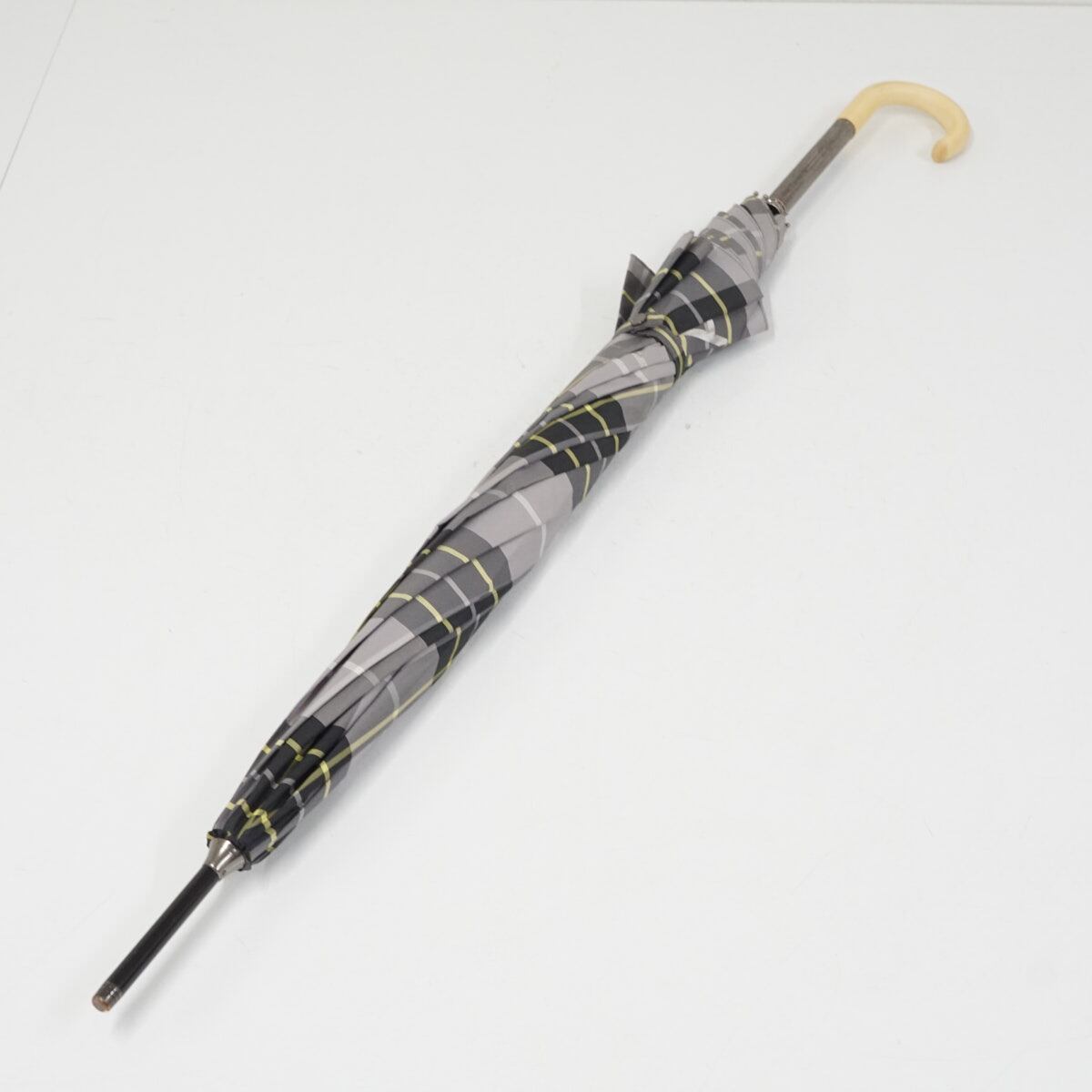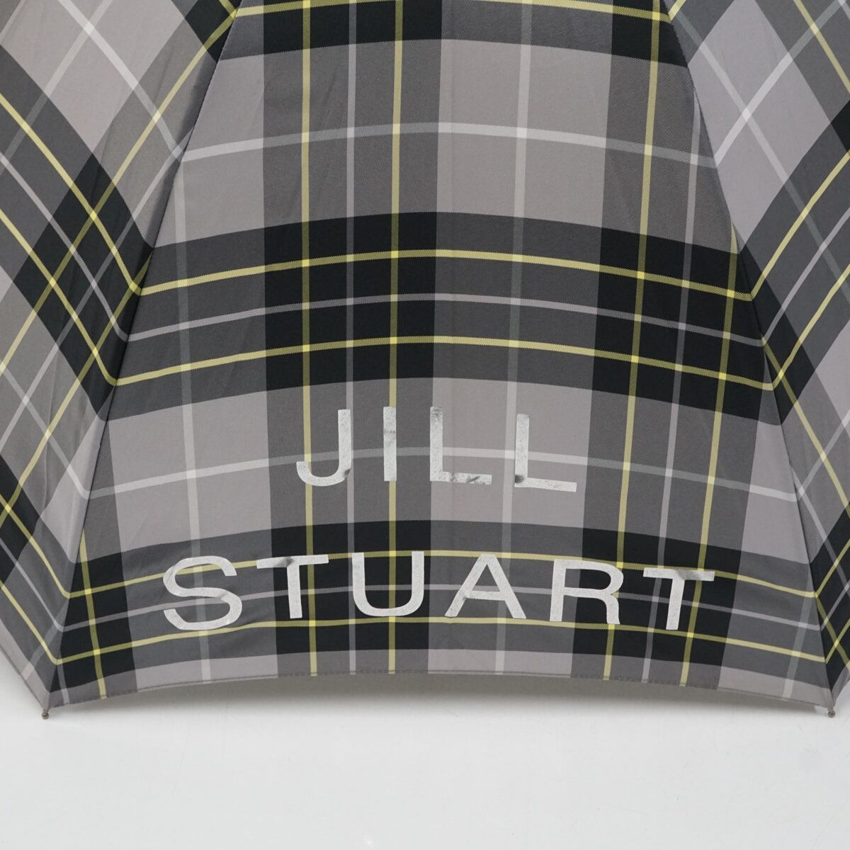 傘 JILLSTUART ジルスチュアート USED品 雨傘 チェック 箔プリント グラス骨 60cm A3592