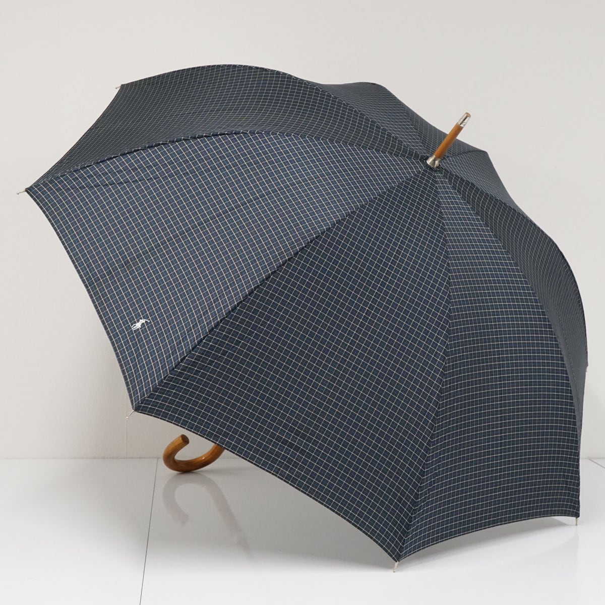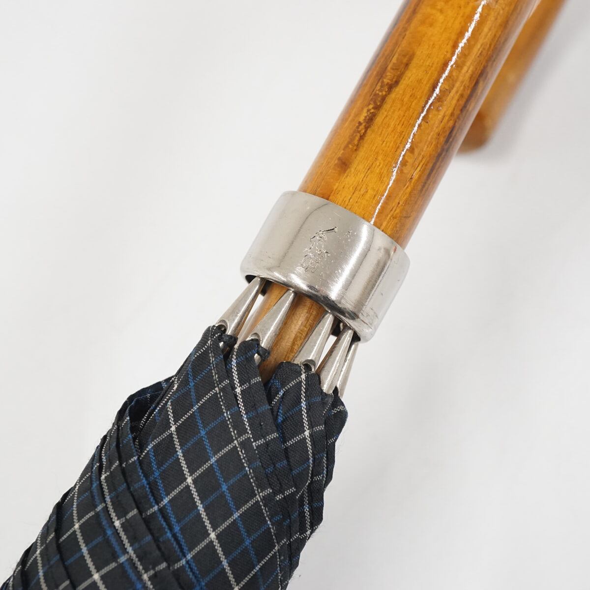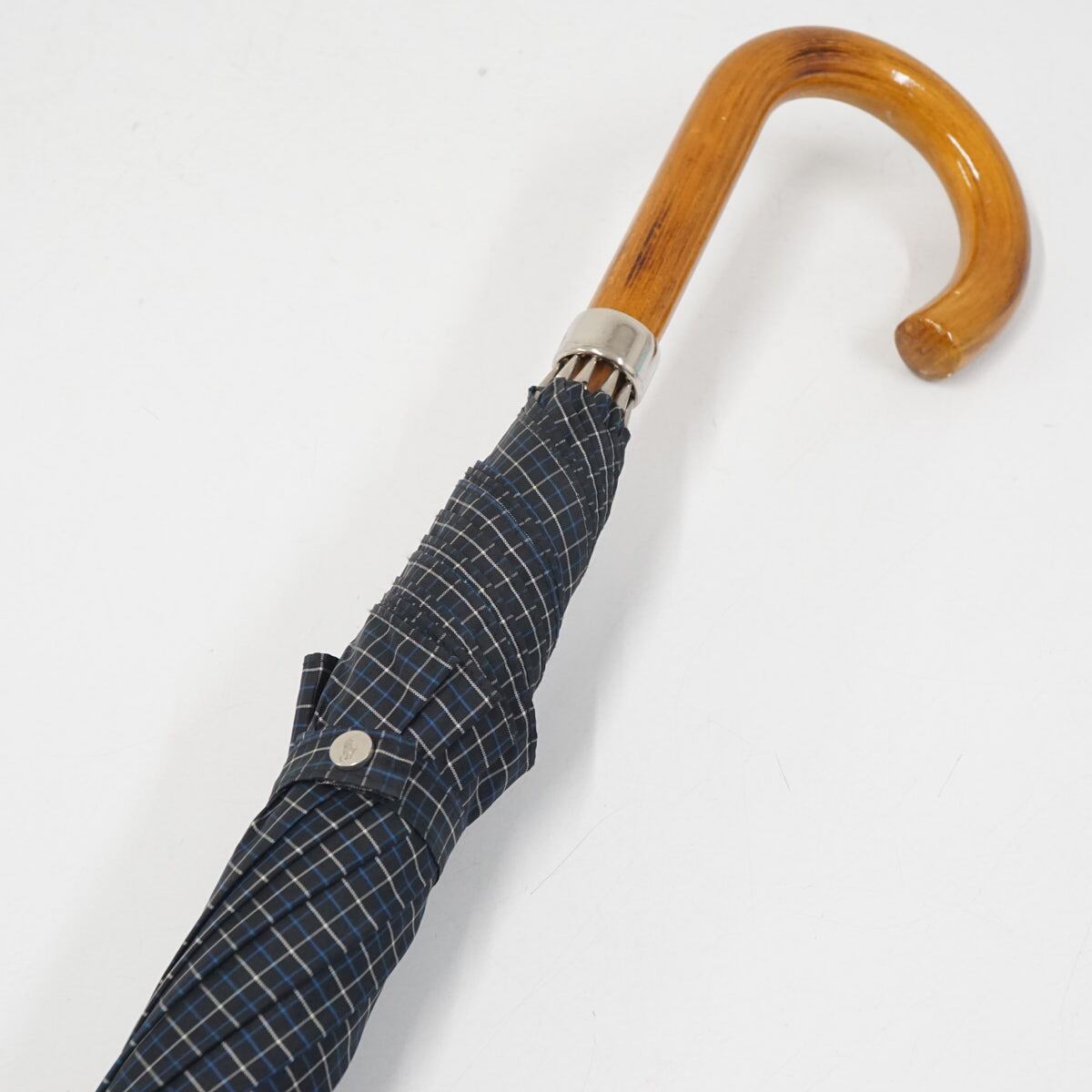 傘 Polo Ralph Lauren ポロラルフローレン USED美品 格子柄 ポロ刺繍 ネイビー メンズ 紳士傘 グラス骨 大判 65cm S3599