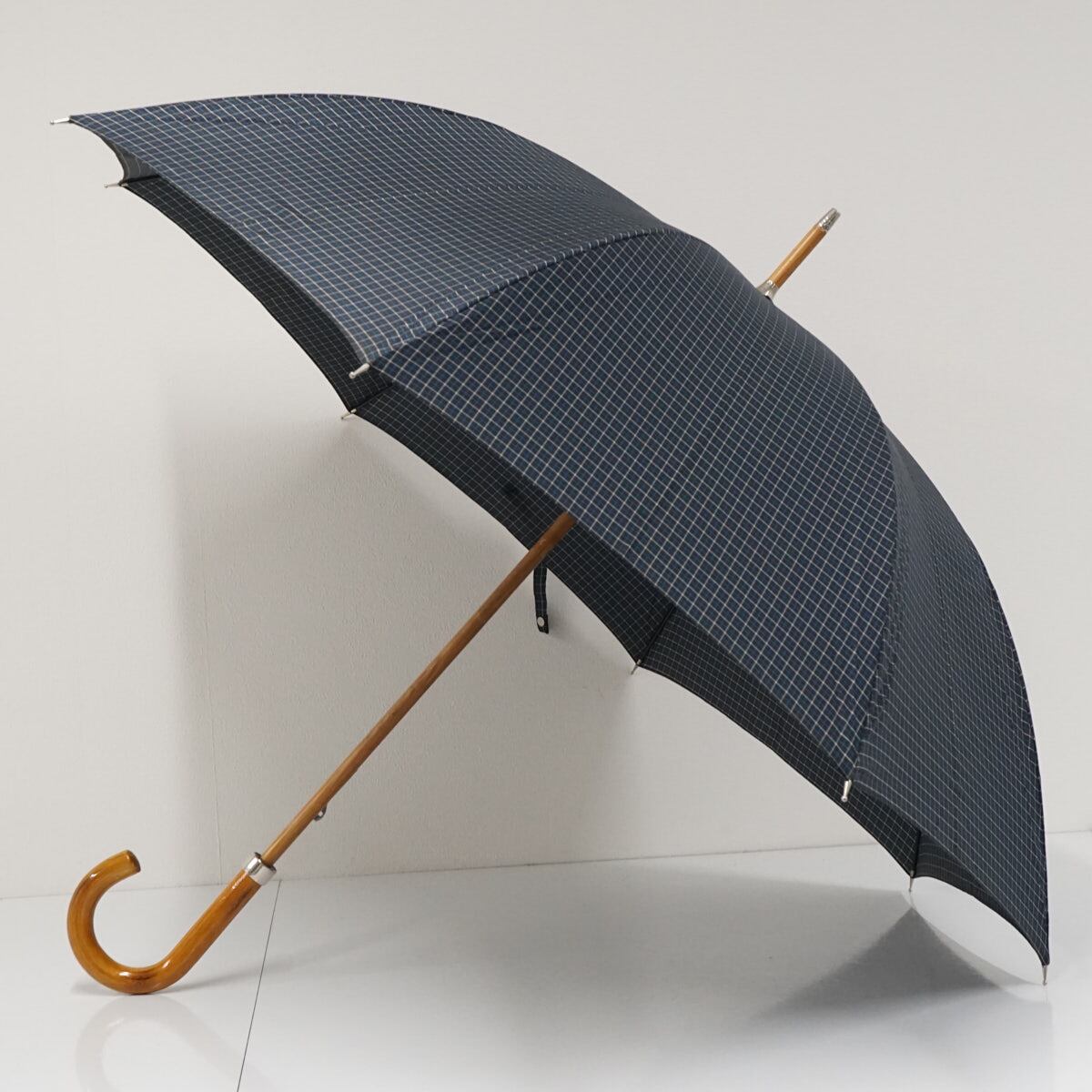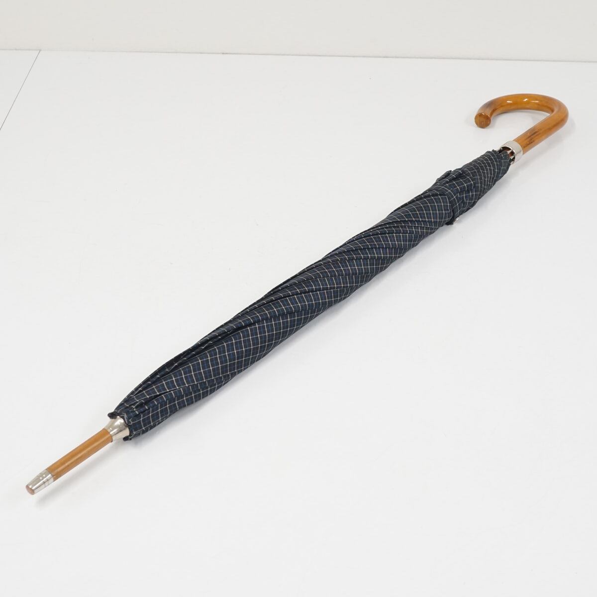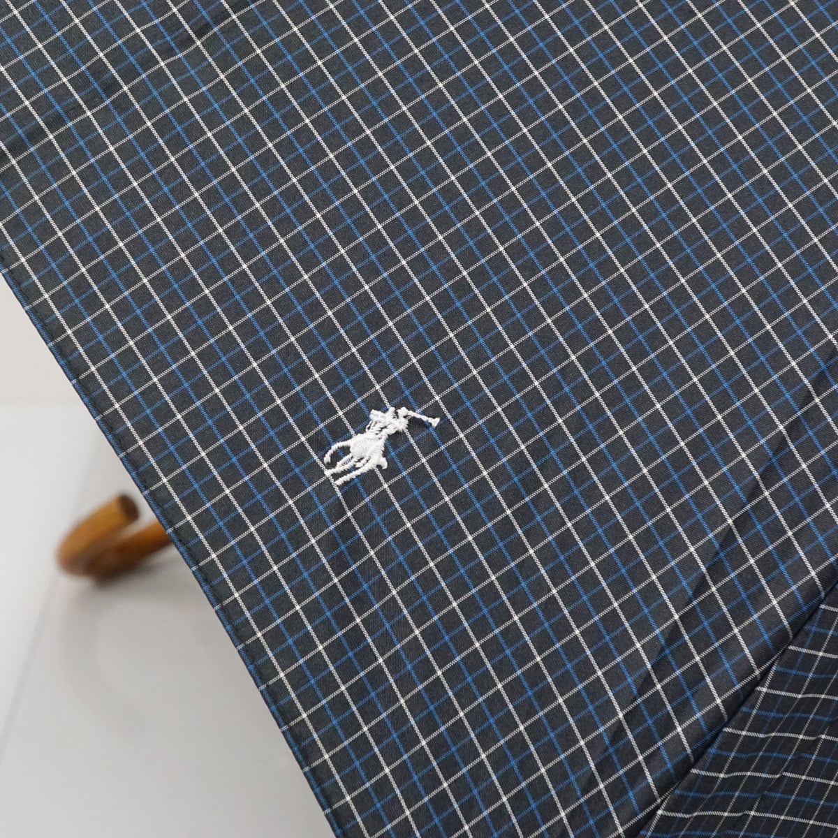 傘 Polo Ralph Lauren ポロラルフローレン USED美品 格子柄 ポロ刺繍 ネイビー メンズ 紳士傘 グラス骨 大判 65cm S3599