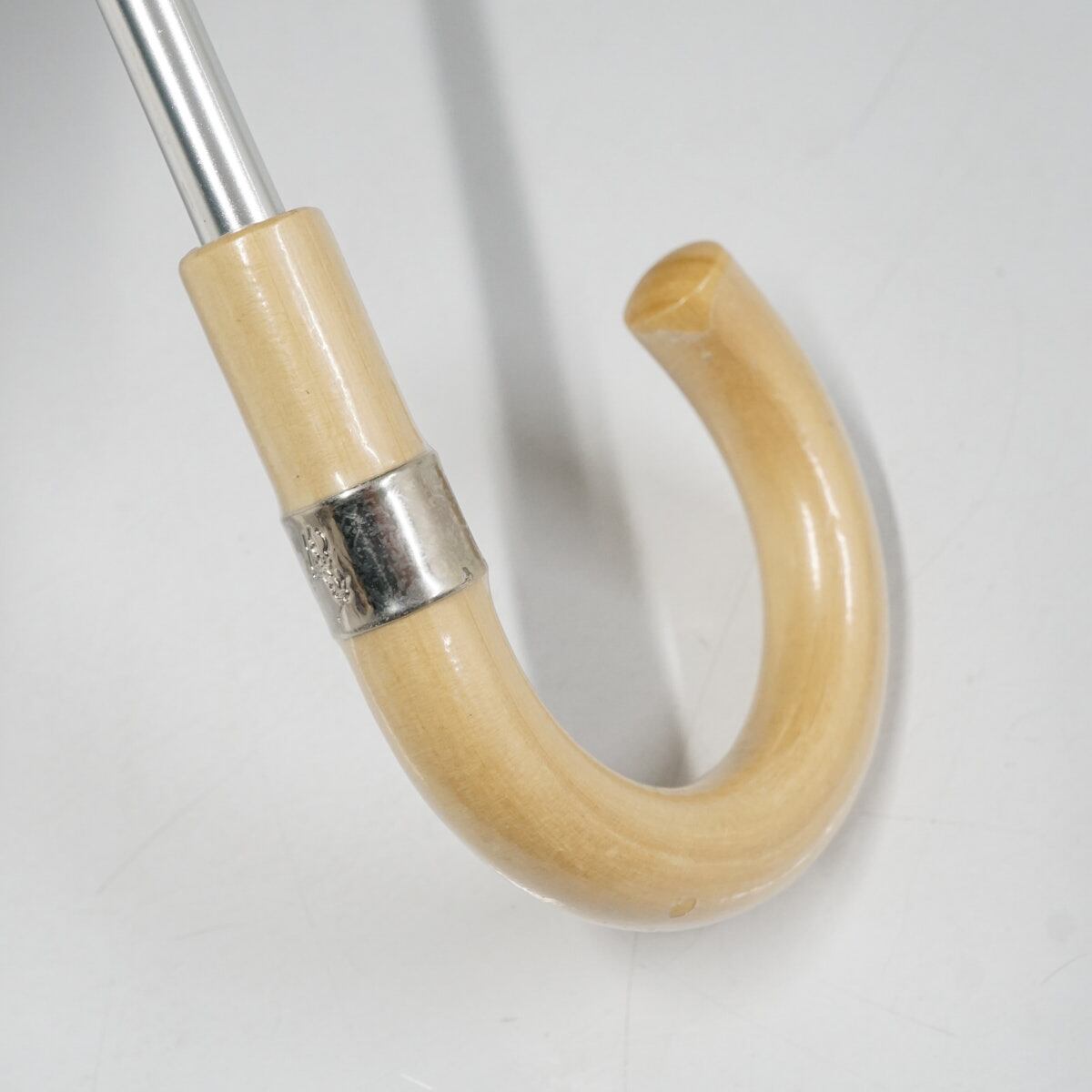 手元は木製で、ブランドロゴマークのリングを添え、高級感を演出しています。