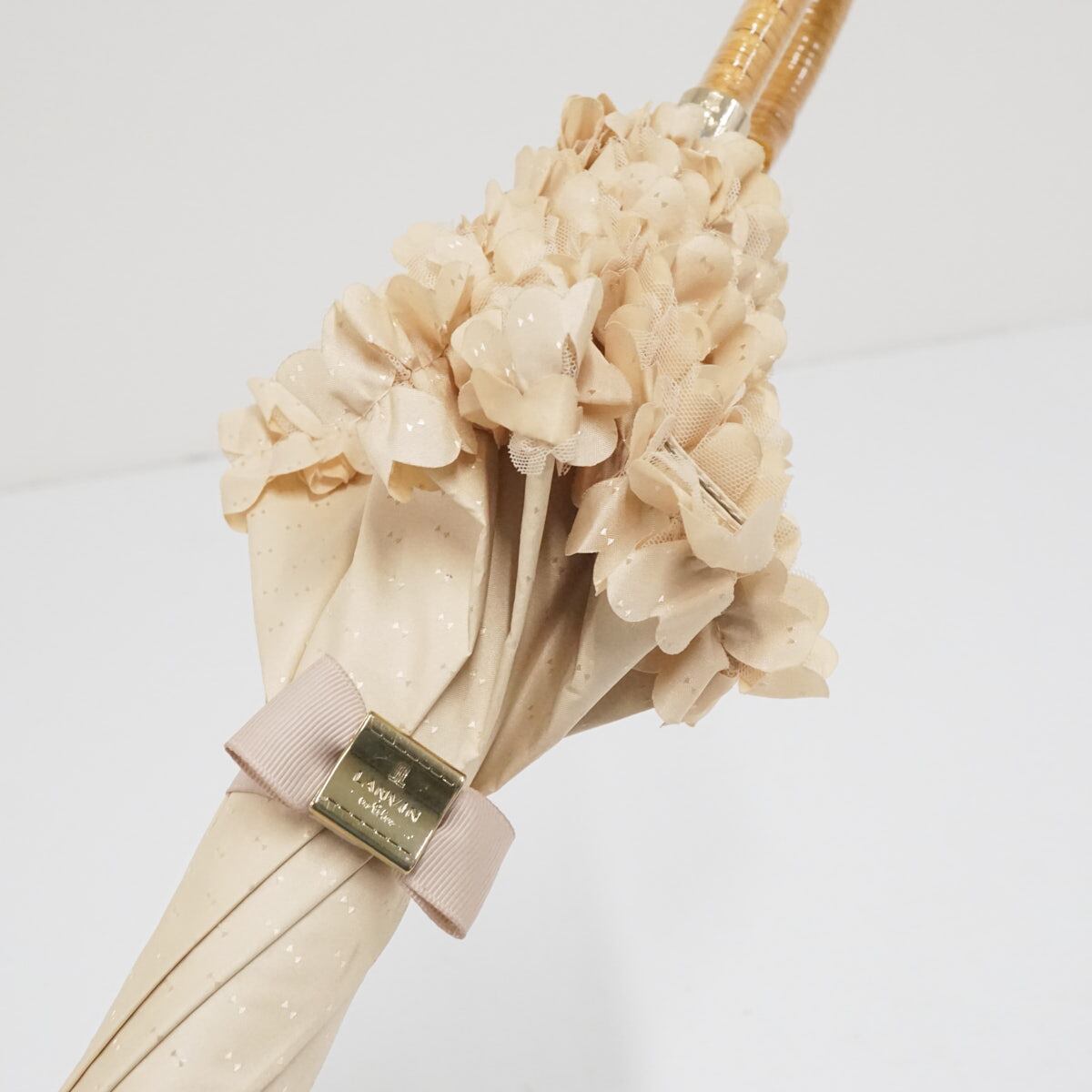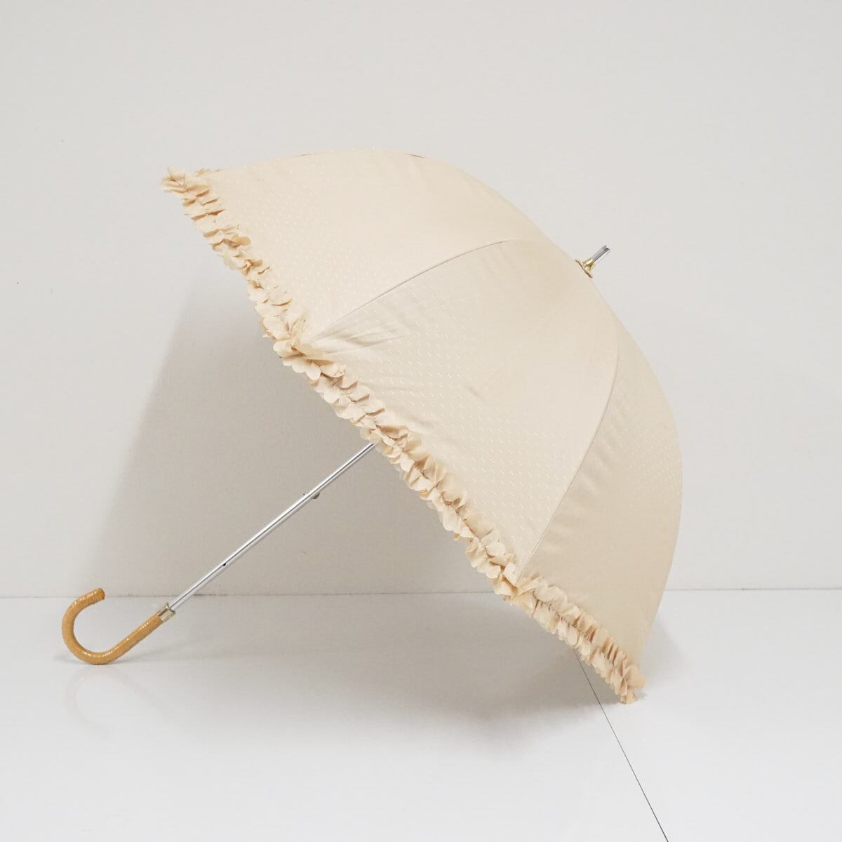日傘 ランバン オンブルー LANVIN en Bleu ドビー フリル 晴雨兼用 ライトベージュ エレガント 遮光 遮熱 UV ラタン巻き A3577
