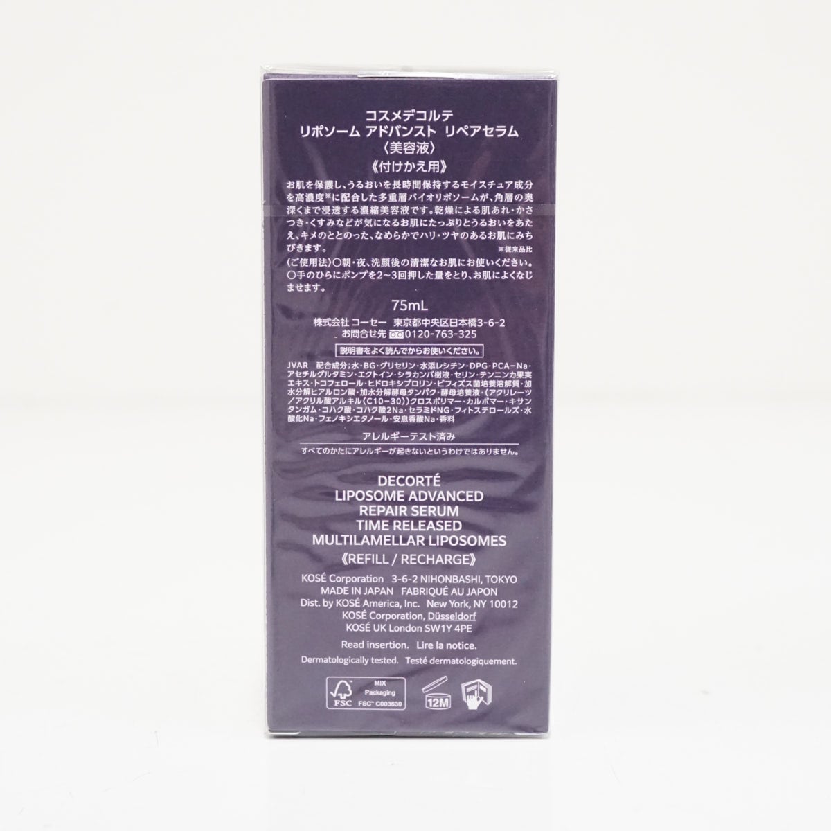 【新品未開封】コスメデコルテ COSME DECORTE リポソーム アドバンスト リペアセラム 付けかえ用 75ml 美容液 X9419