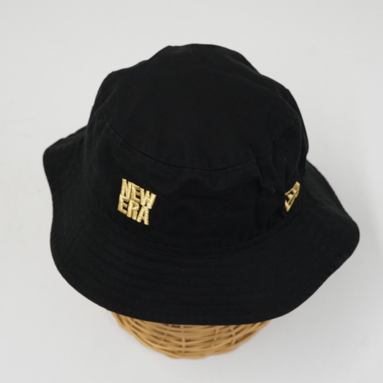 NEW ERA ニューエラ バケットハット キッズ USED美品 YOUTH M/L 約54cm ブラック ロゴ刺繍 紫外線対策 X9359
