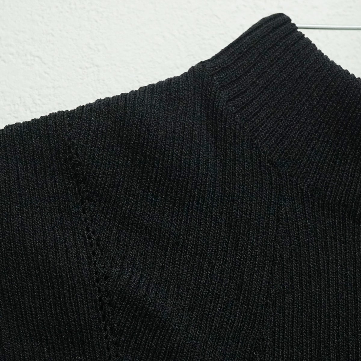細見えために計算された編み地で、程良くフィットしているのに胸周りがすっきり。