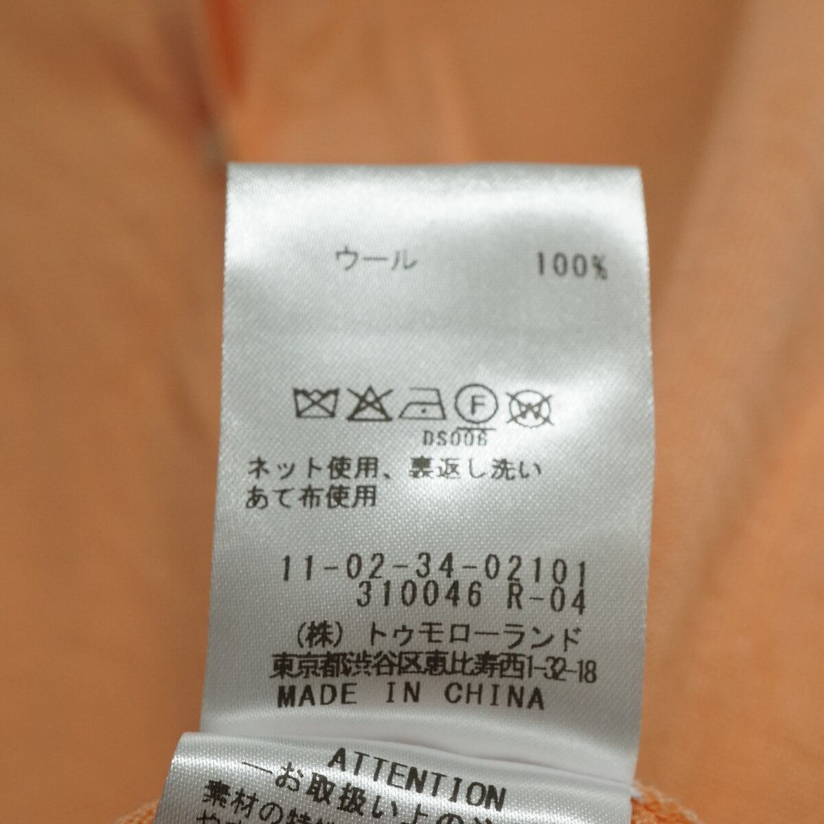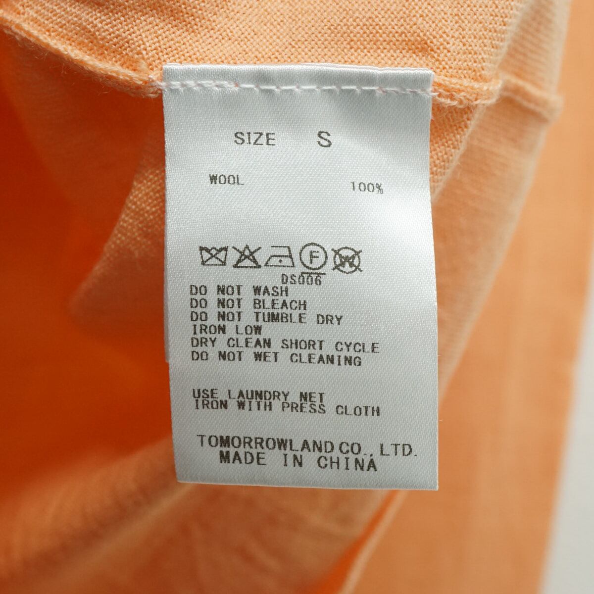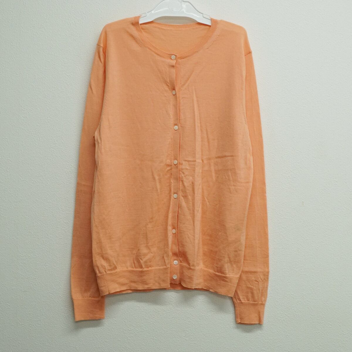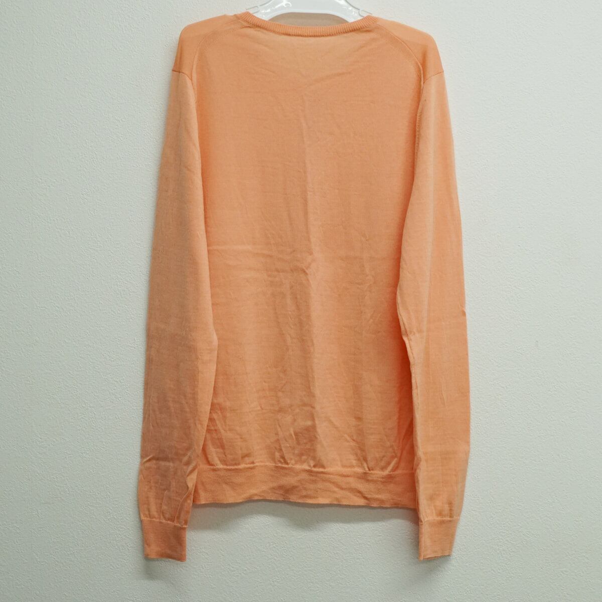 TOMORROWLAND トゥモローランド スーパーエクストラファインウール クルーネックカーディガン USED美品 薄手 S ライトオレンジ X9430