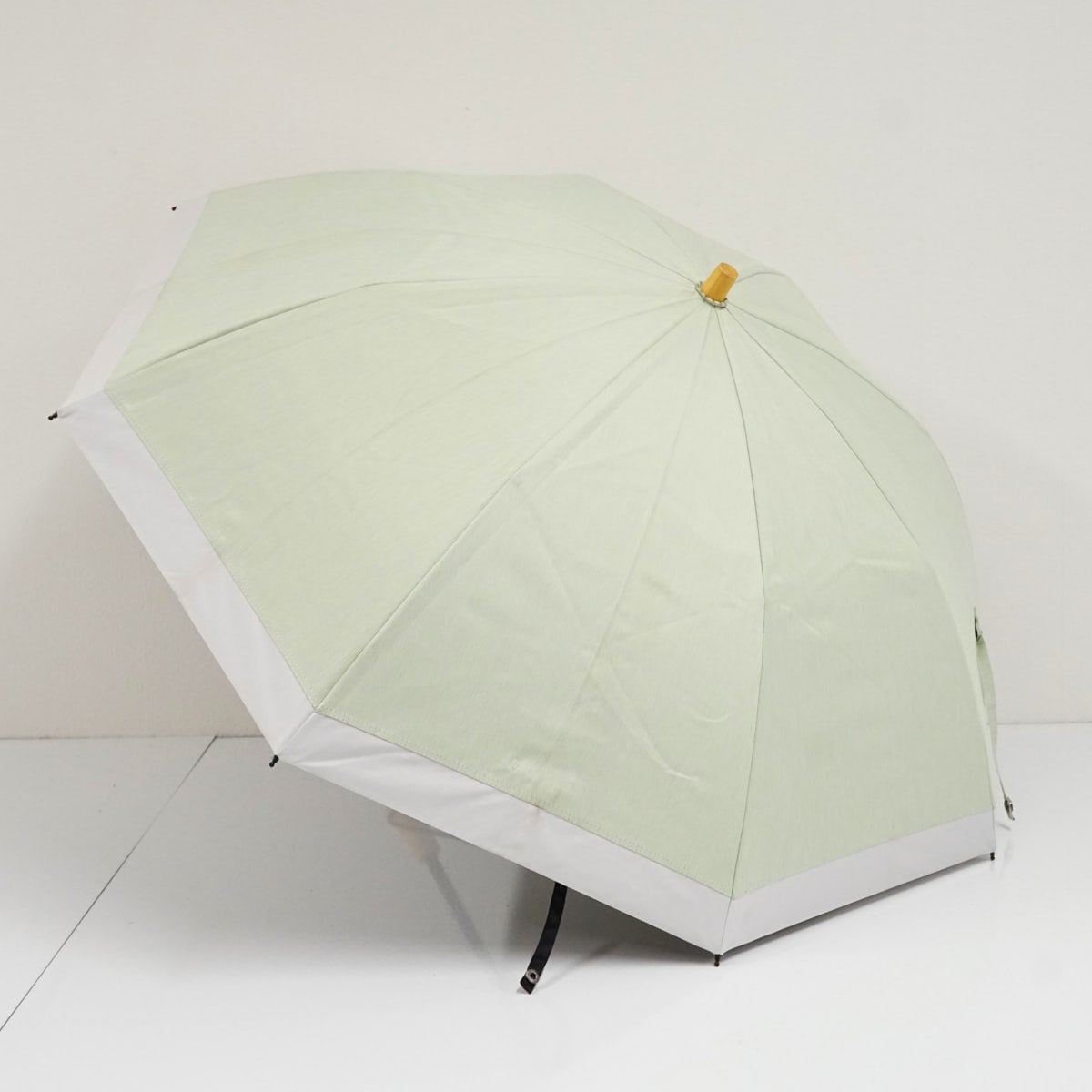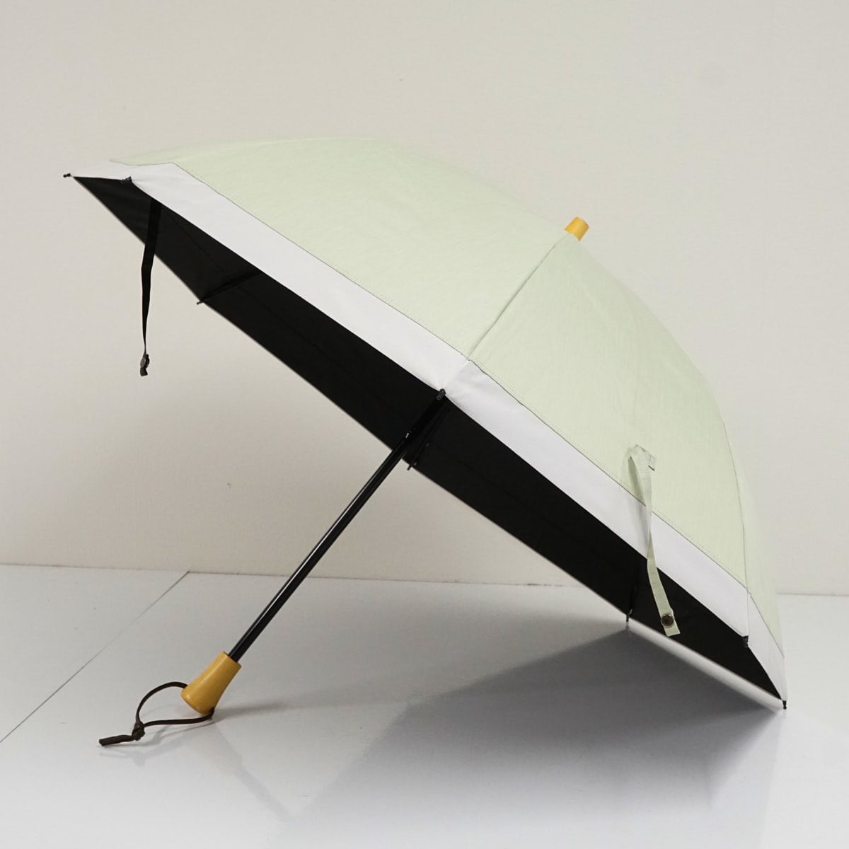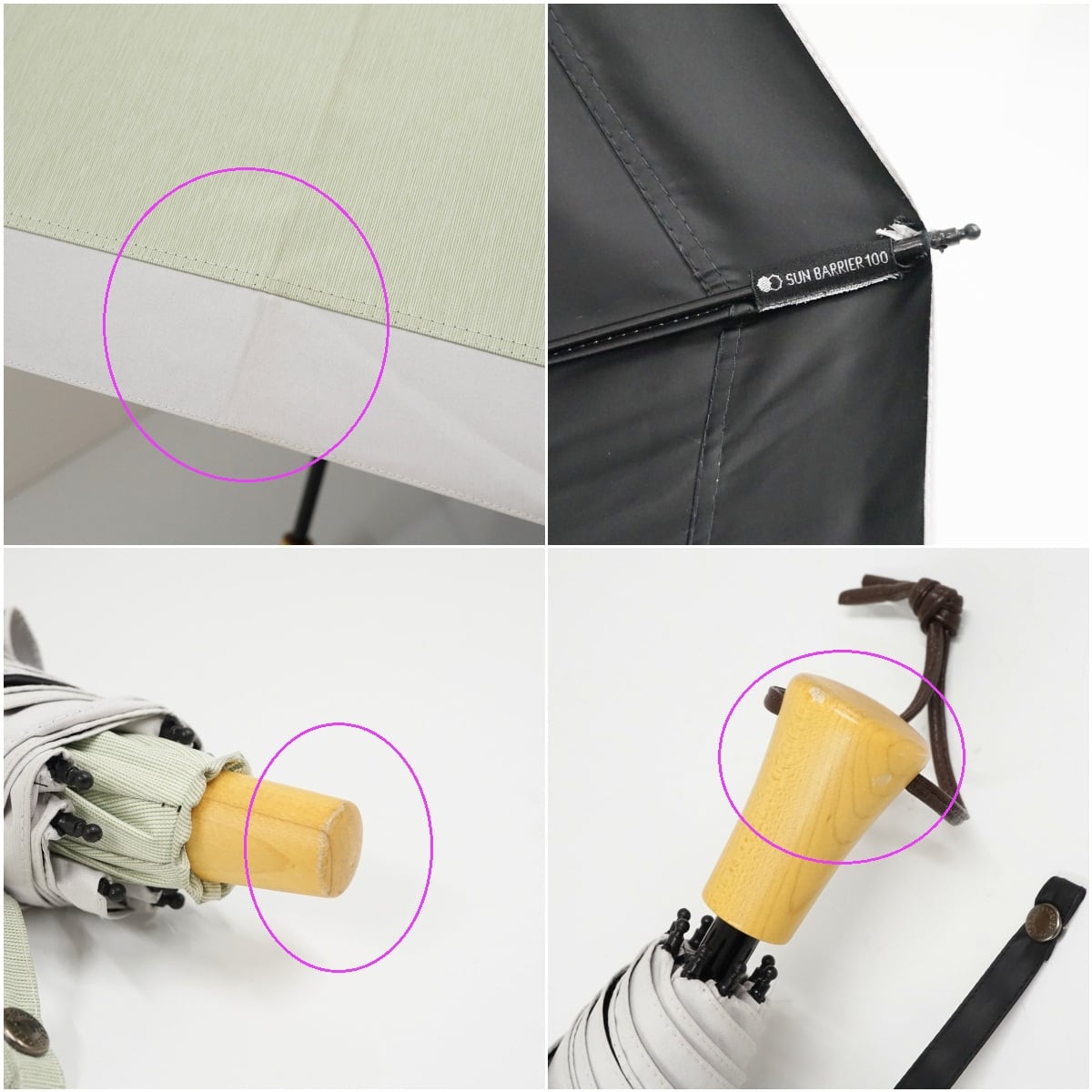 完全遮光 折りたたみ日傘 サンバリア100 USED品 2段折 コンビ moku グリーン 木製手元 UV 遮熱 折日傘 50cm FS9502
