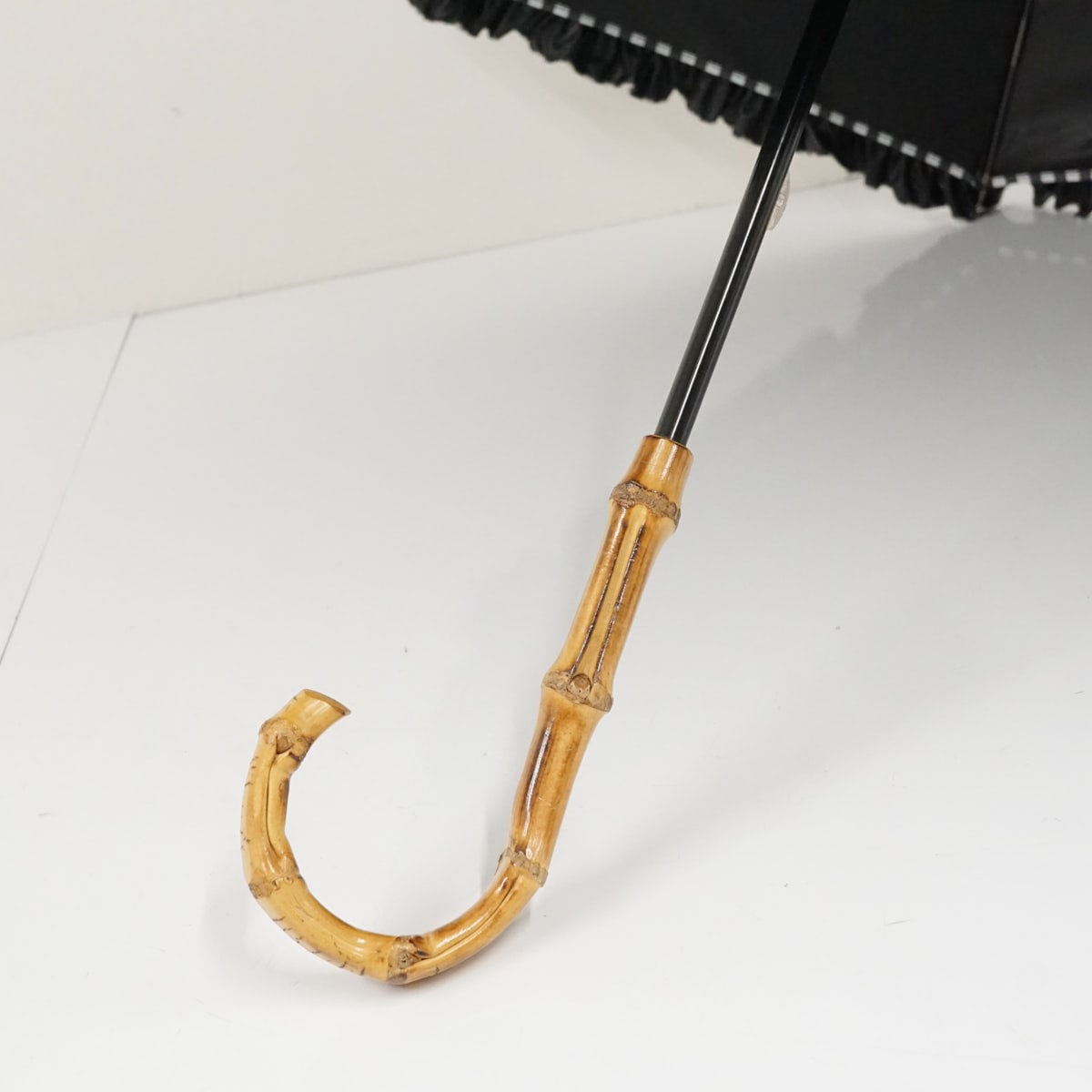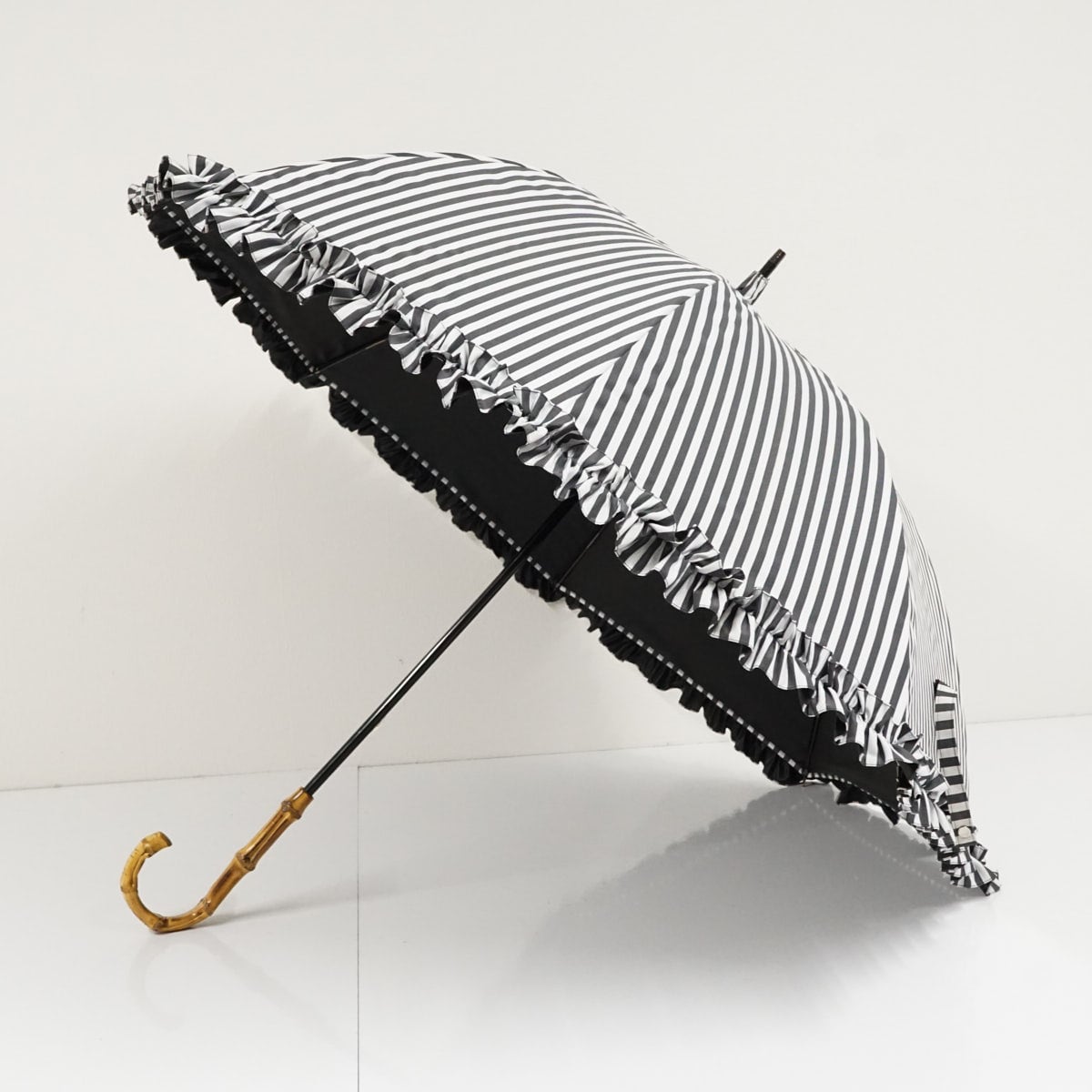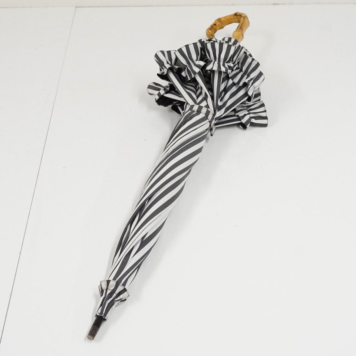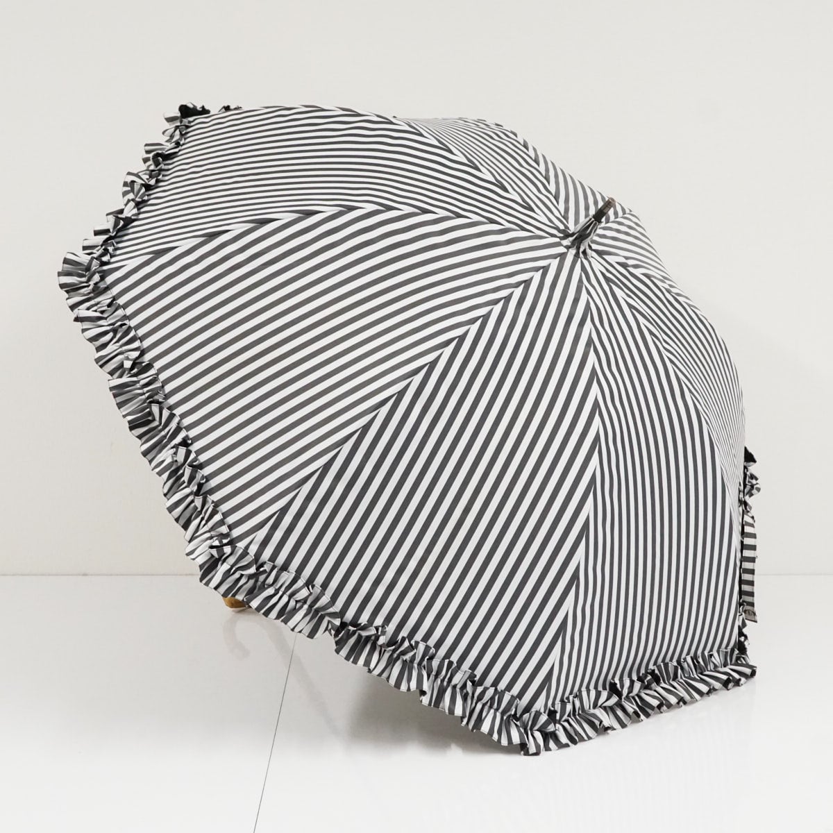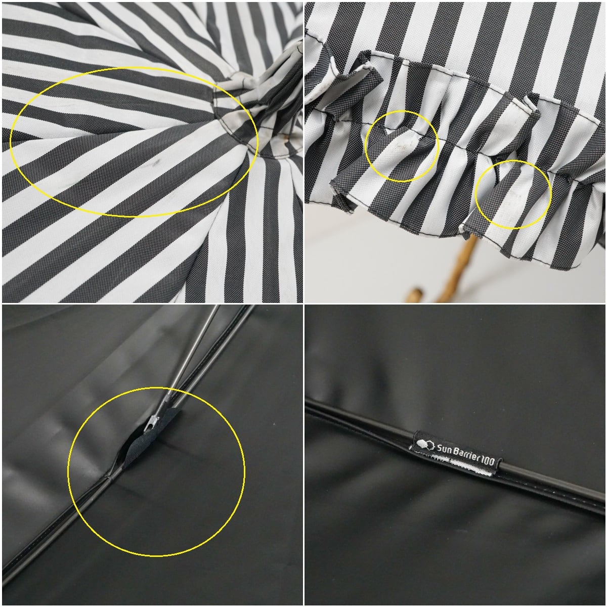 日傘 サンバリア100 完全遮光日傘 USED品 白黒 ストライプ フリル UVカット SUN BARRIER 100 Mサイズ 55cm S3621