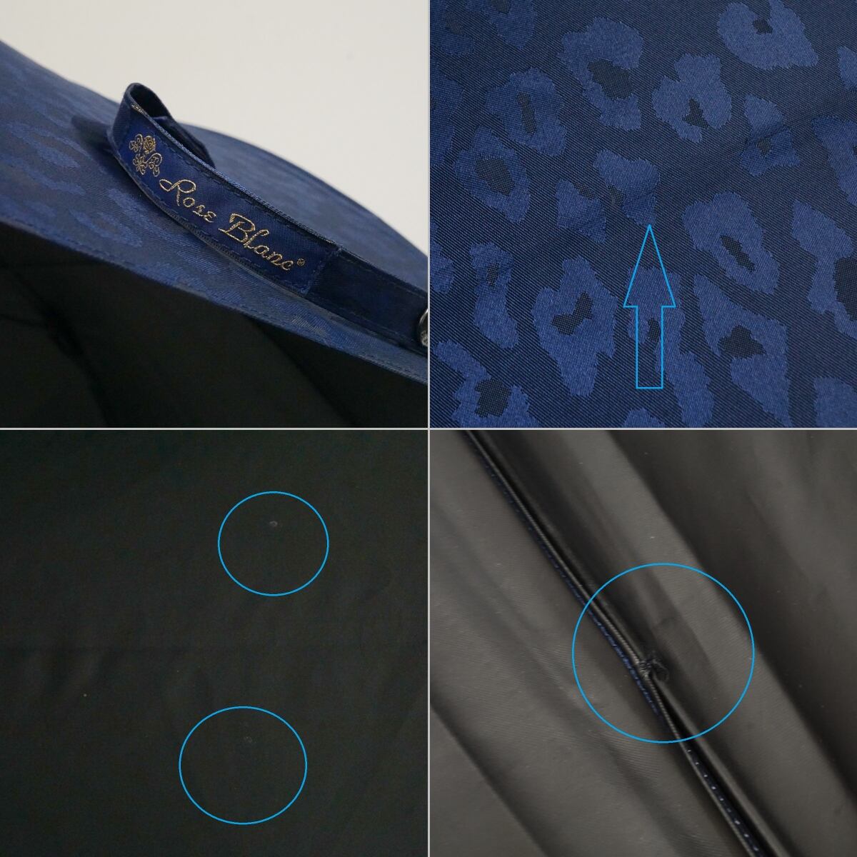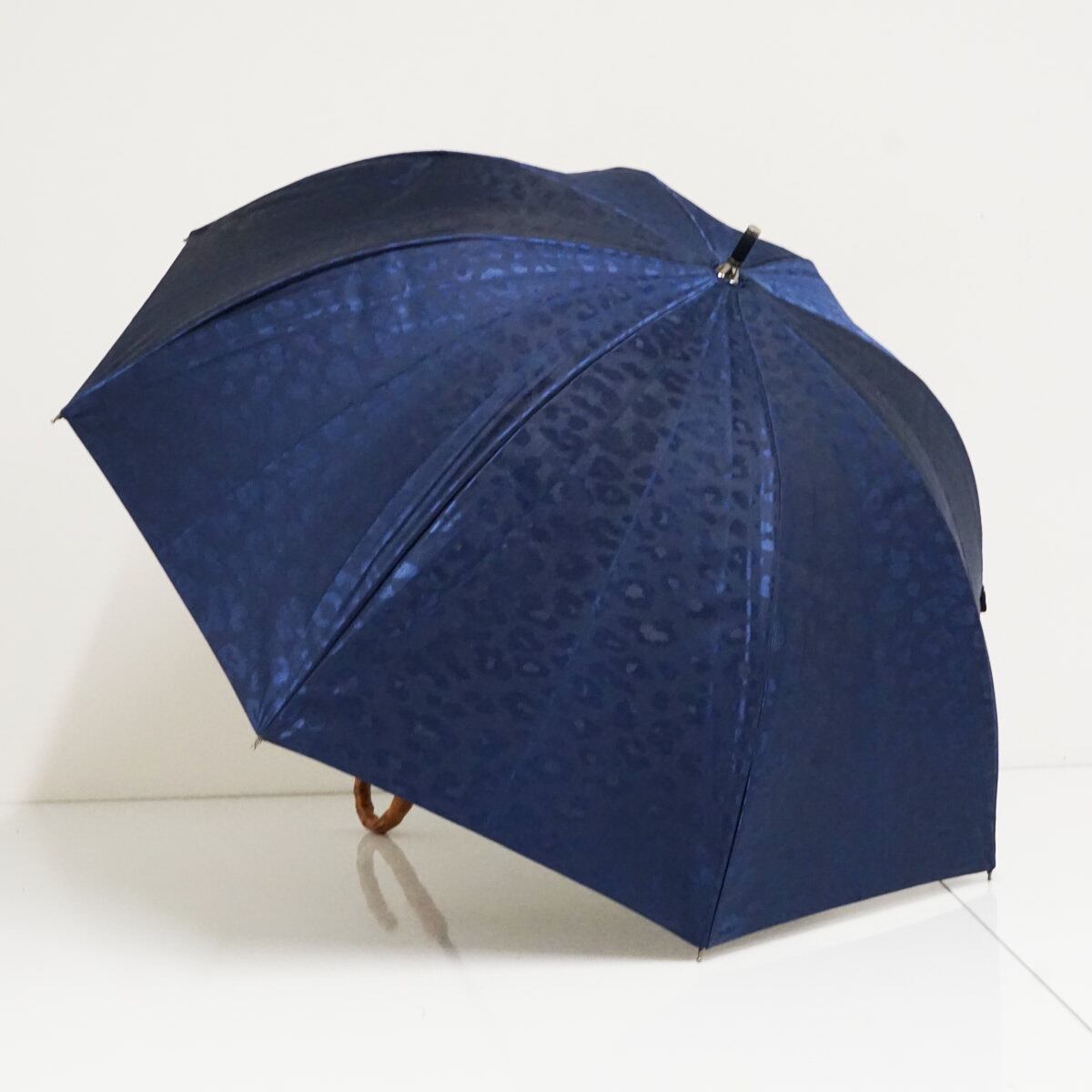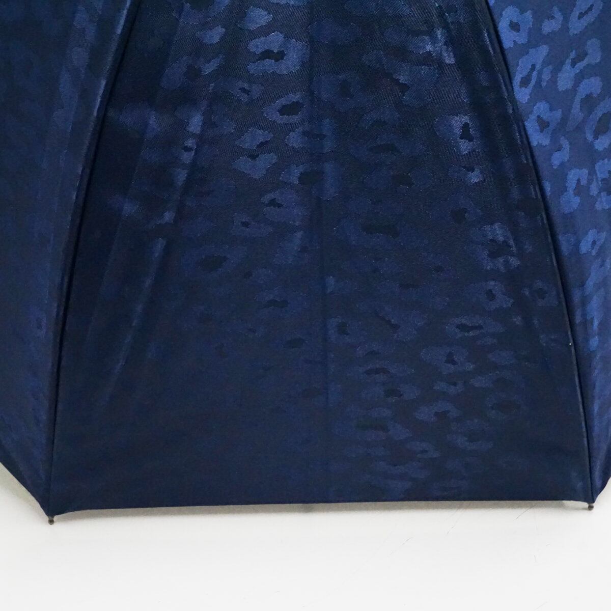 完全遮光折日傘 芦屋ロサブラン USED美品 ショートサイズ レオパード ヒョウ柄 ネイビー 寒竹手元 UV 遮熱 50cm S3624