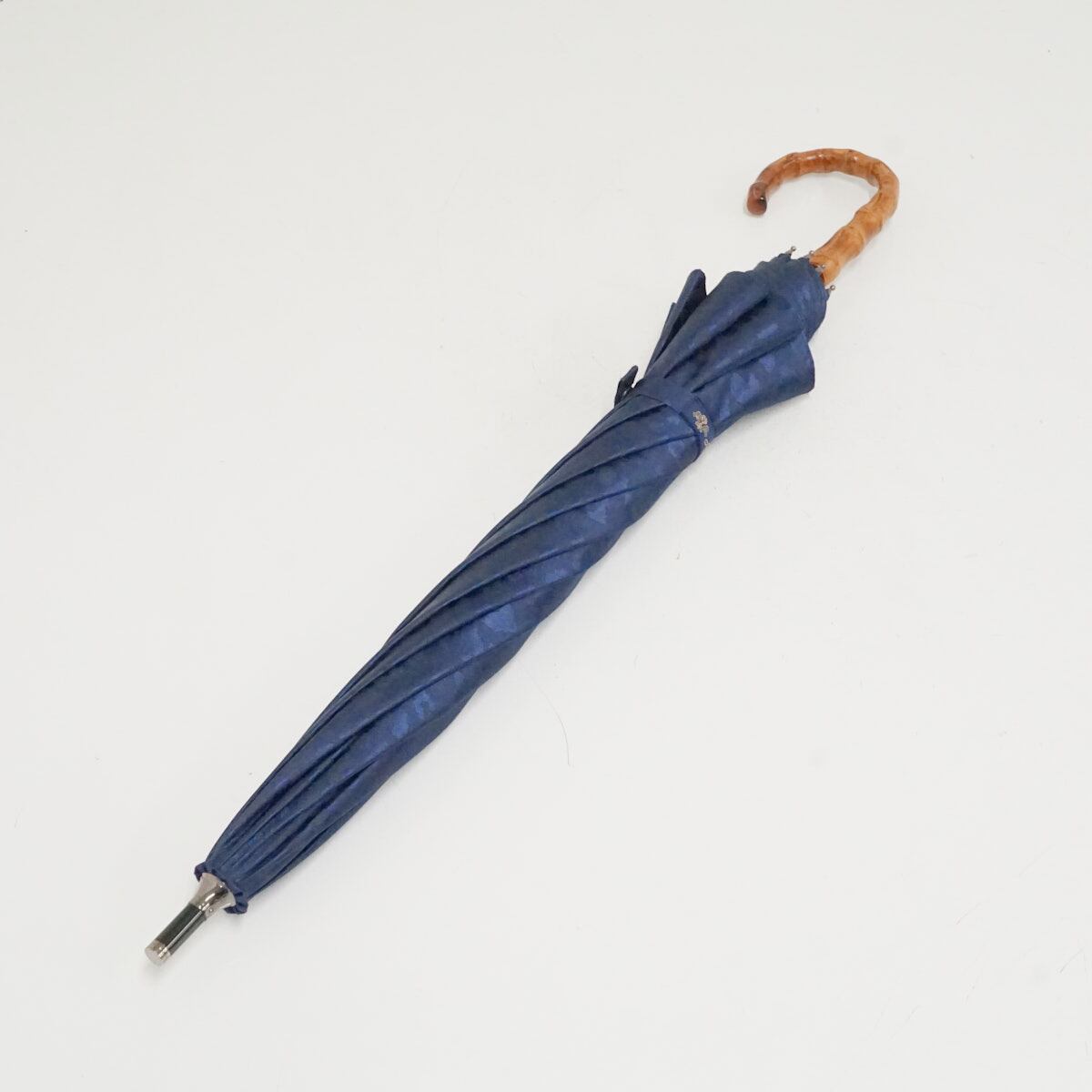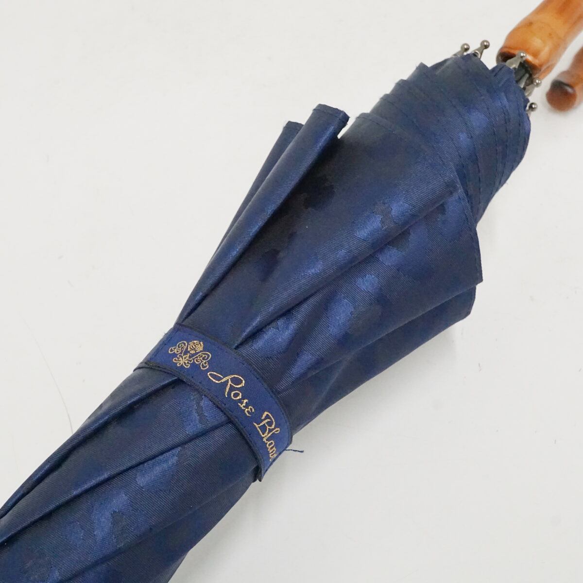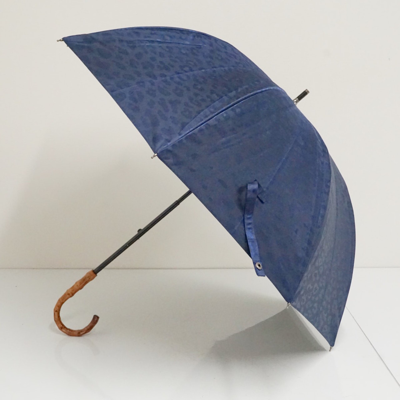 完全遮光折日傘 芦屋ロサブラン USED美品 ショートサイズ レオパード ヒョウ柄 ネイビー 寒竹手元 UV 遮熱 50cm S3624