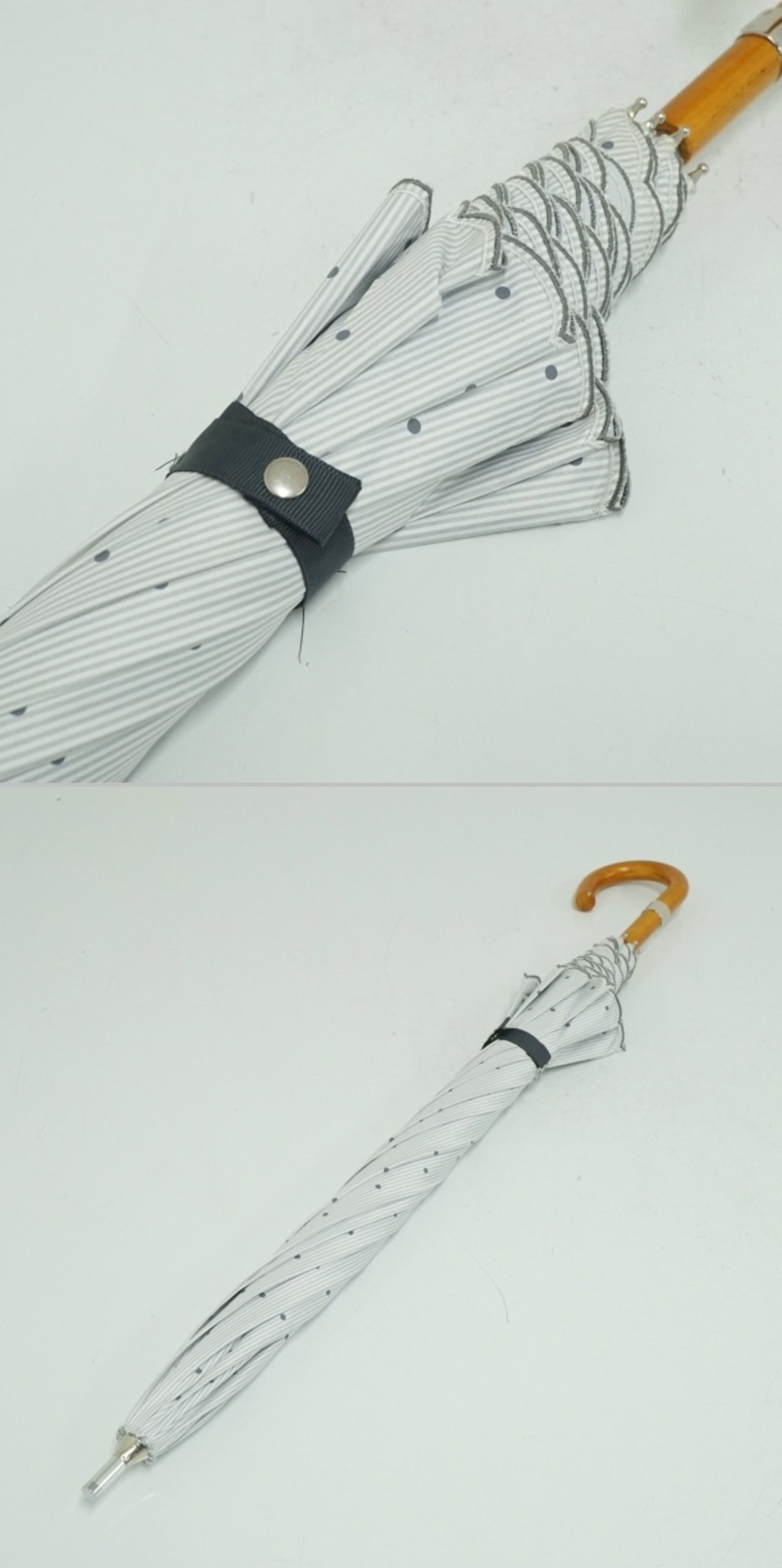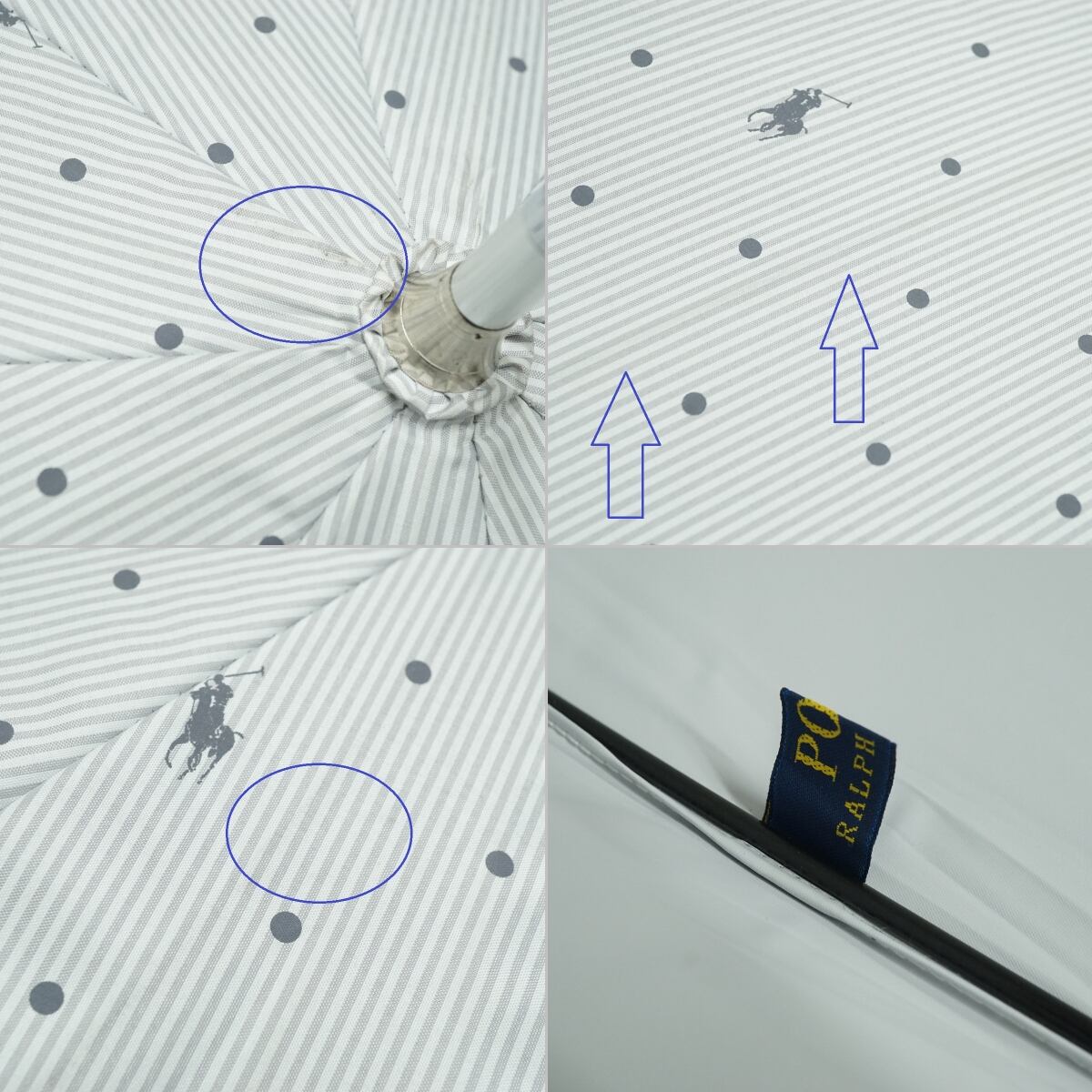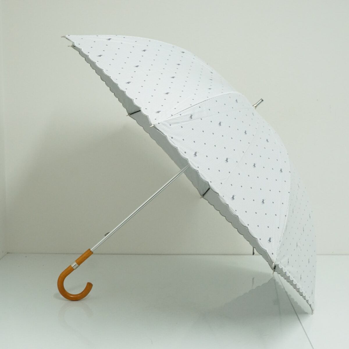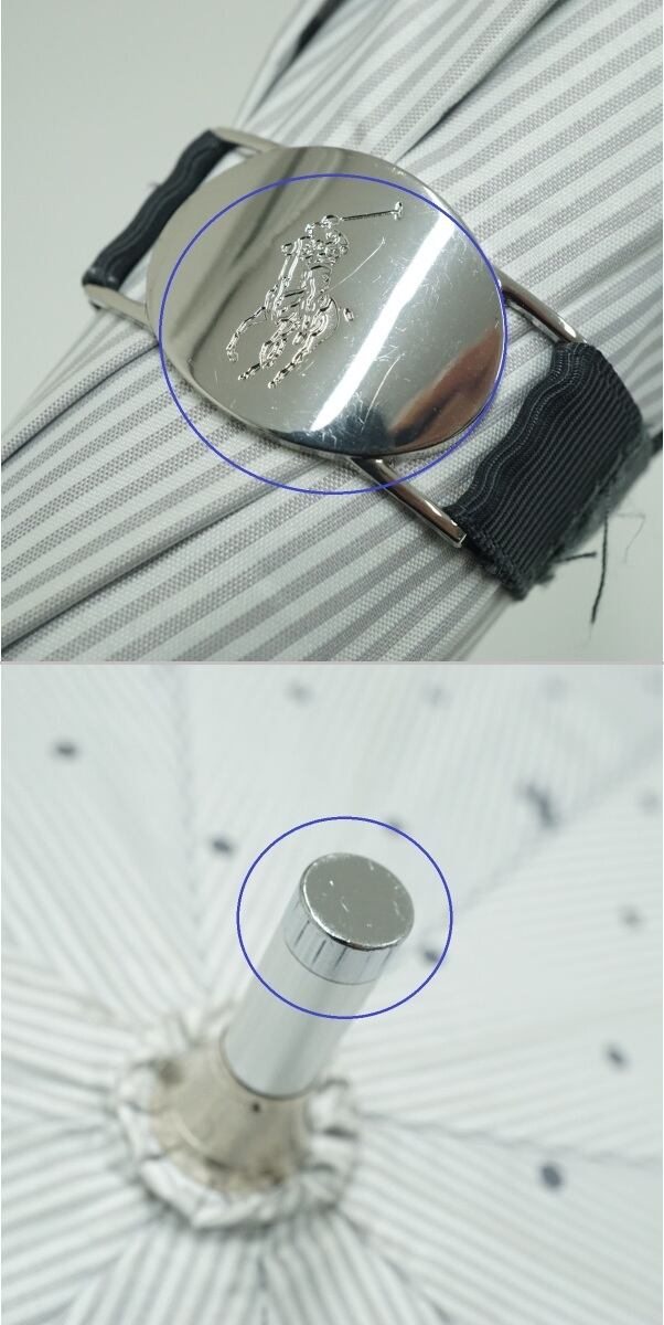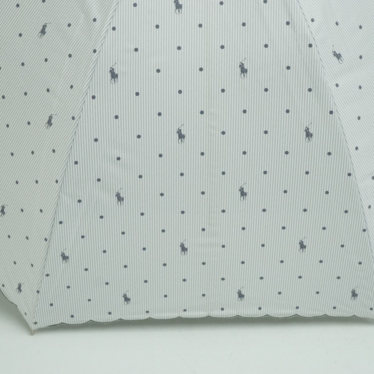 日傘 Polo Ralph Lauren ポロラルフローレン USED品 ドット ポロポニー ホワイト×ライトグレー 晴雨兼用 58cm S3626