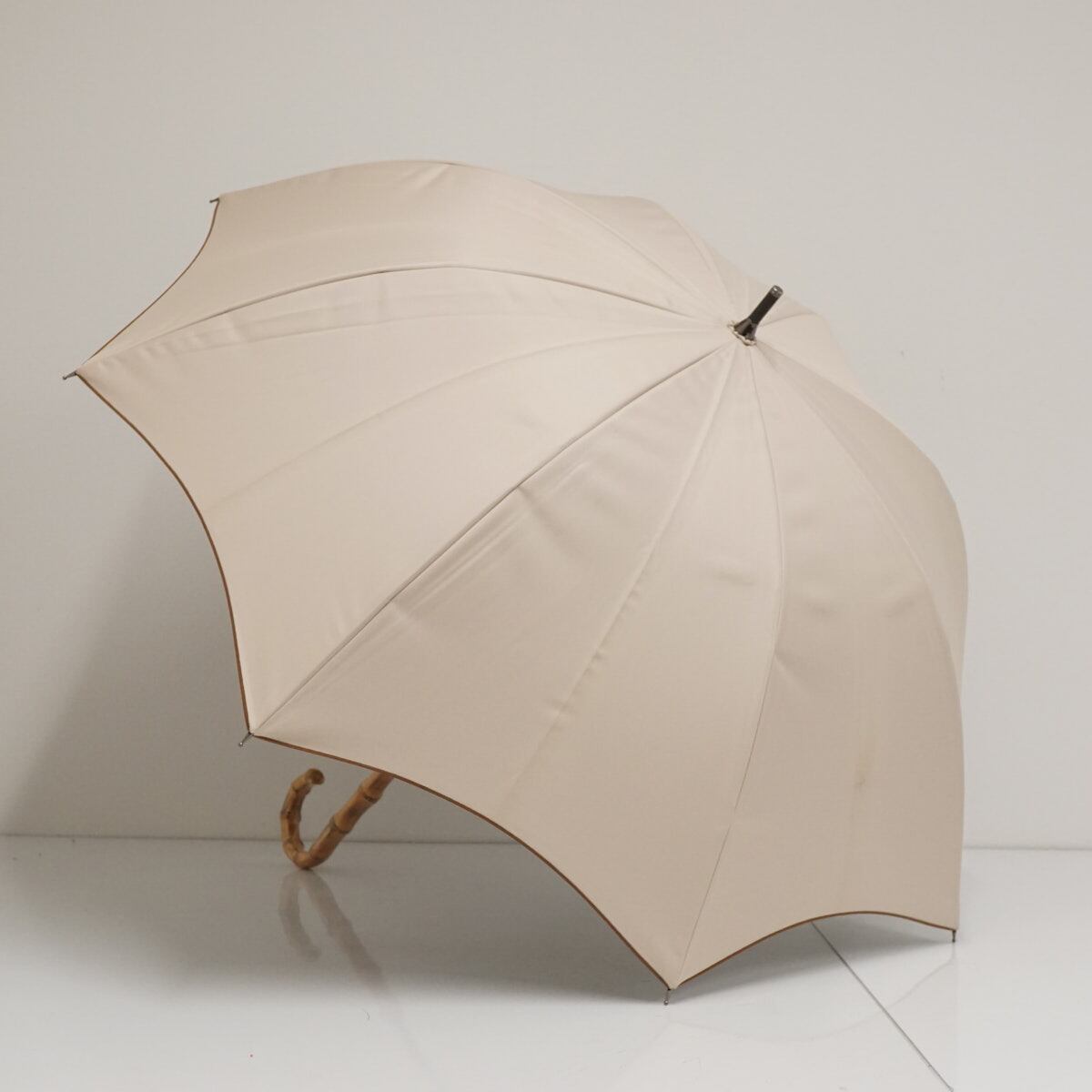 完全遮光折日傘 芦屋ロサブラン USED品 ミドルサイズ プレーン ベージュ 寒竹手元 UV 遮熱 55cm S3635