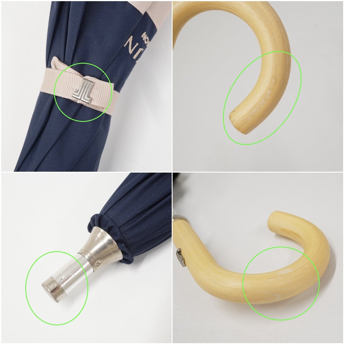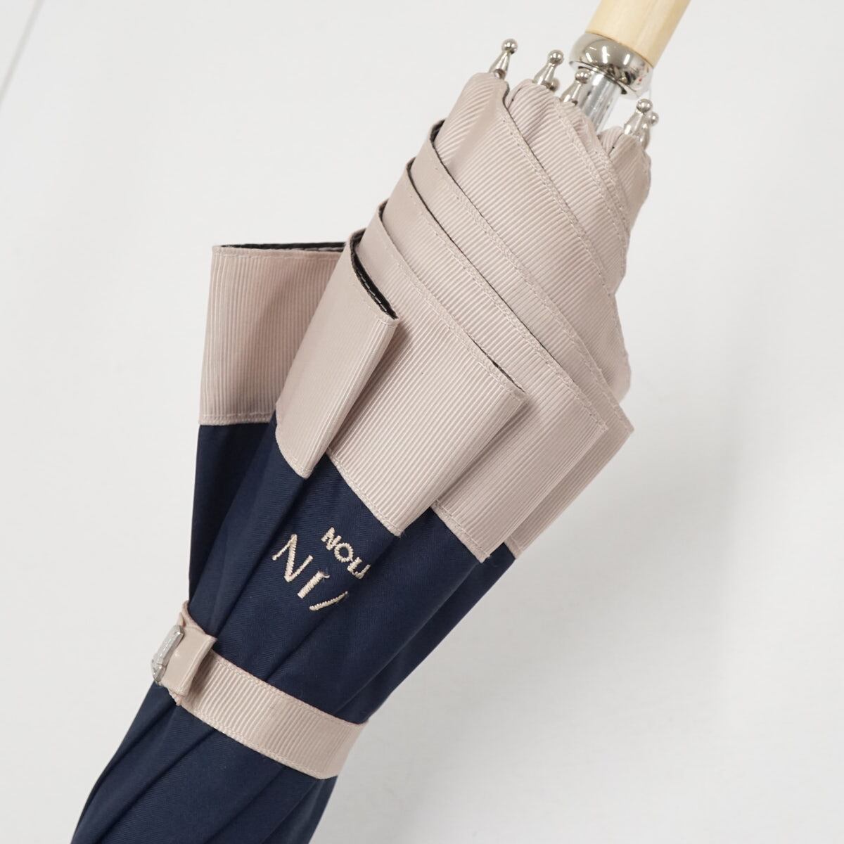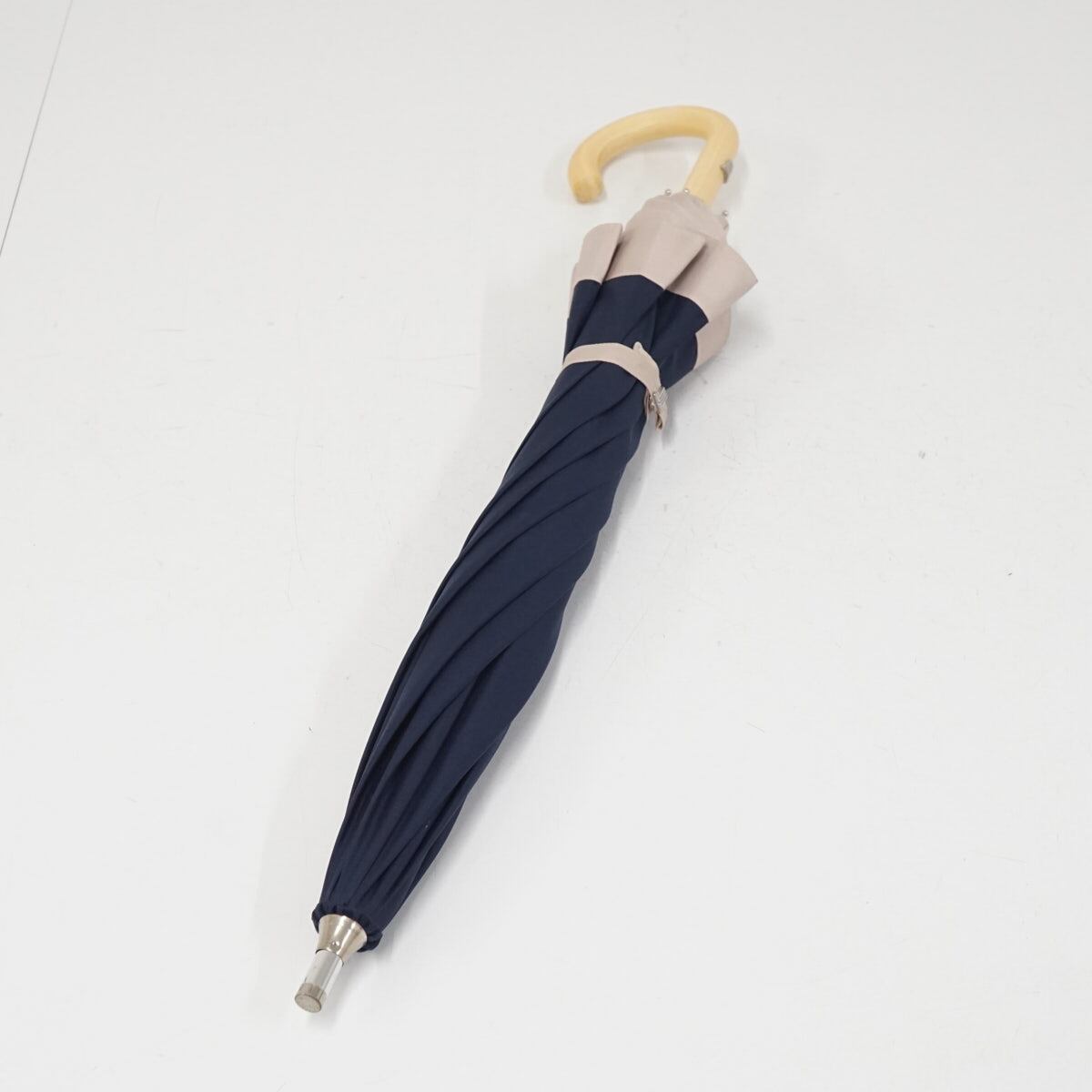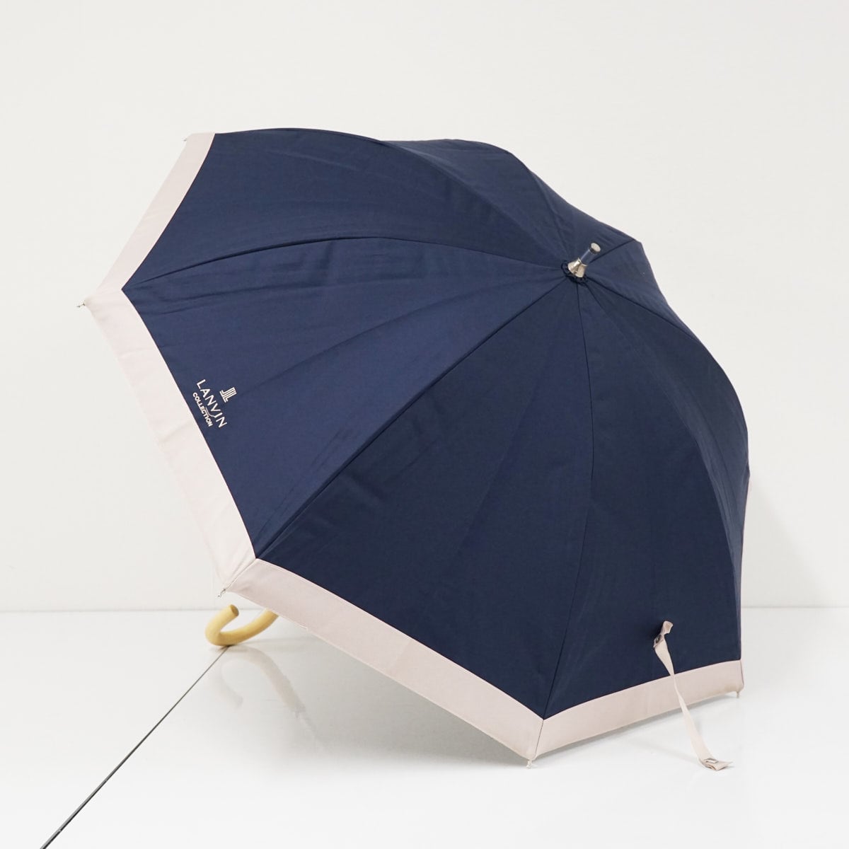 晴雨兼用日傘 LANVIN COLLECTON ランバンコレクション USED美品 ネイビー グログランリボン グラス骨 UV 遮光 遮熱 47cm A3638