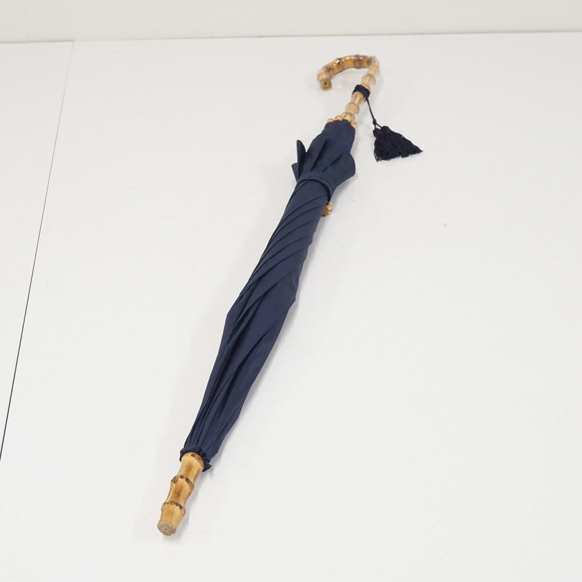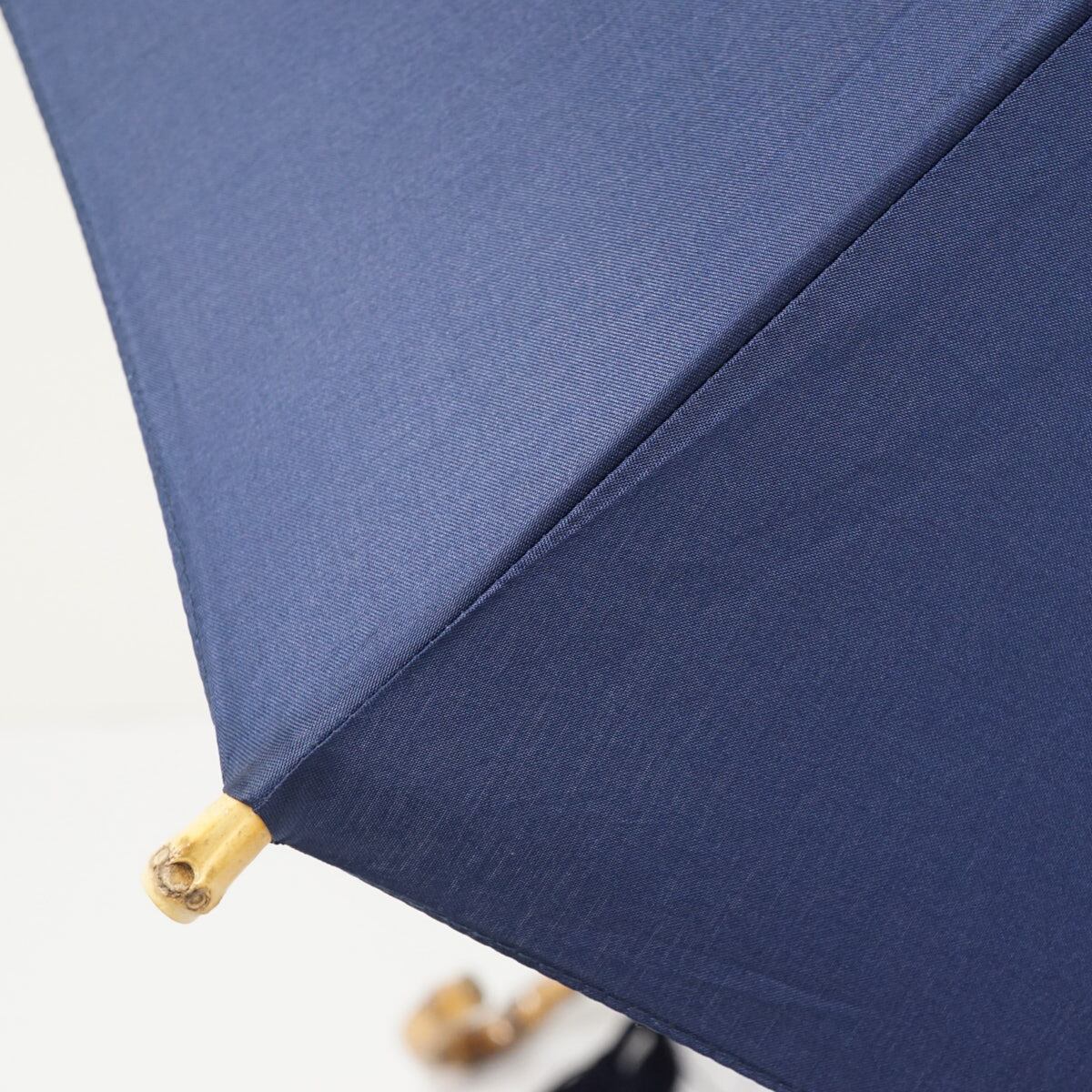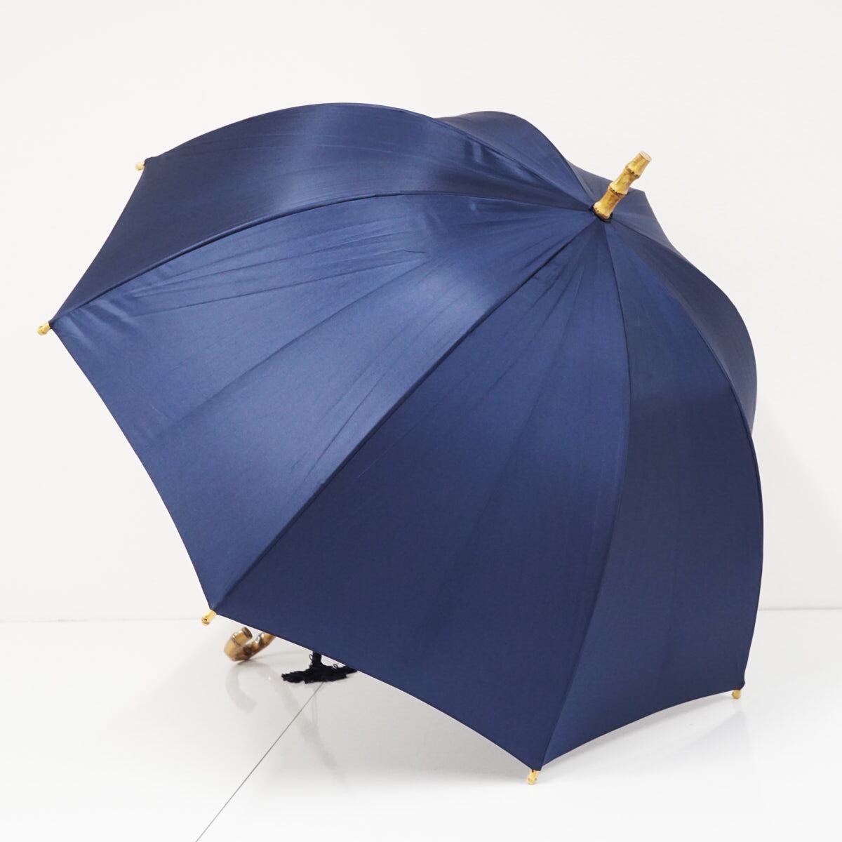 傘 WAKAO ワカオ USED美品 ドーム型バンブー長傘 シンプル ネイビー 無地 高級 日本製 富士絹 60cm A3651