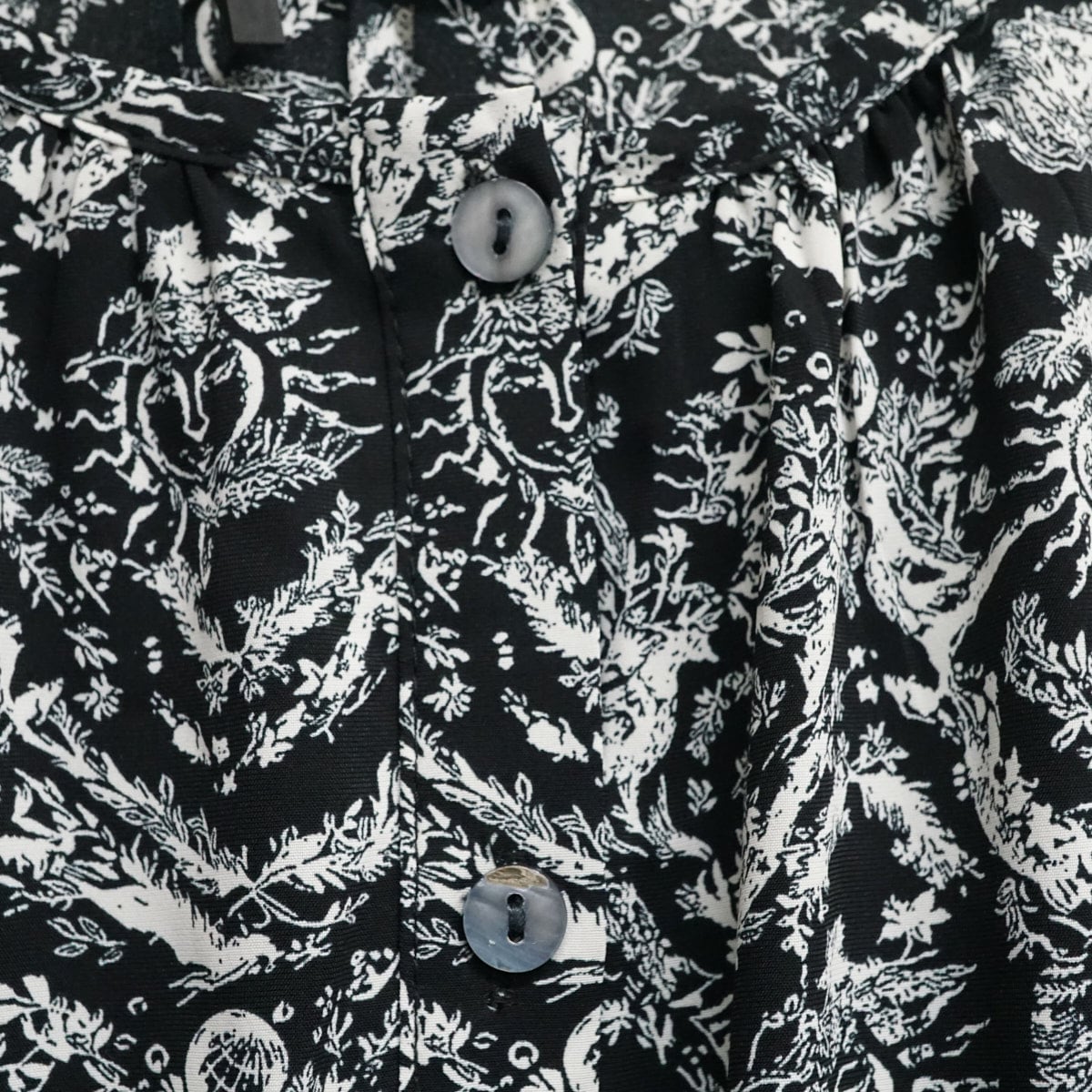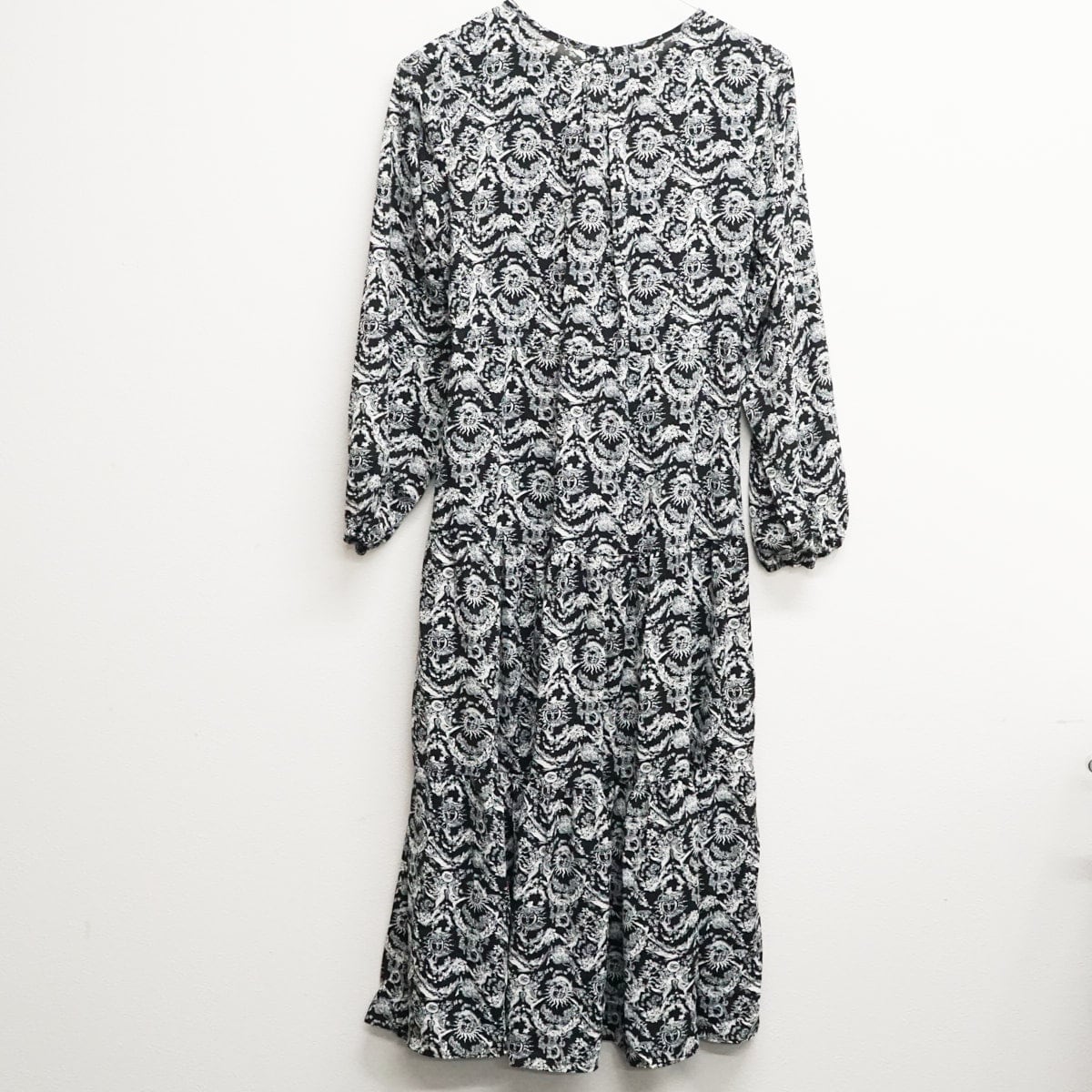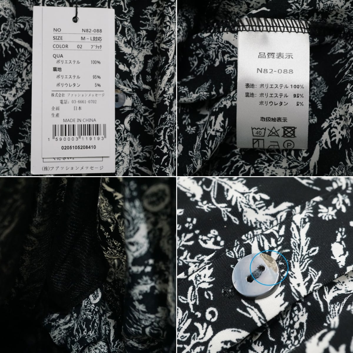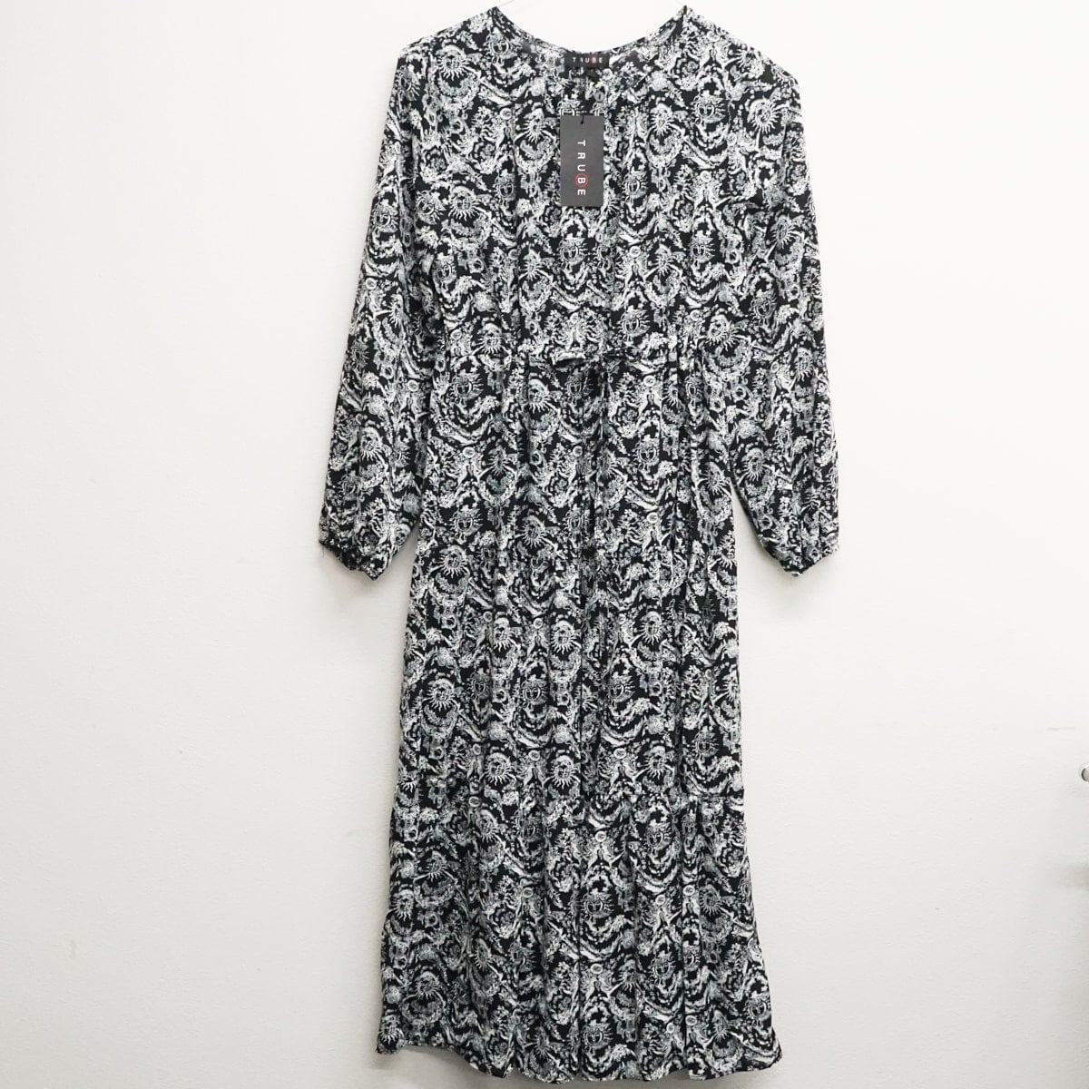 【新品未使用】 TRUBE テゥルべ ワンピース 長袖 ブラック×ホワイト シフォン 総柄 プリーツ レディース M-L N82-08 X9518
