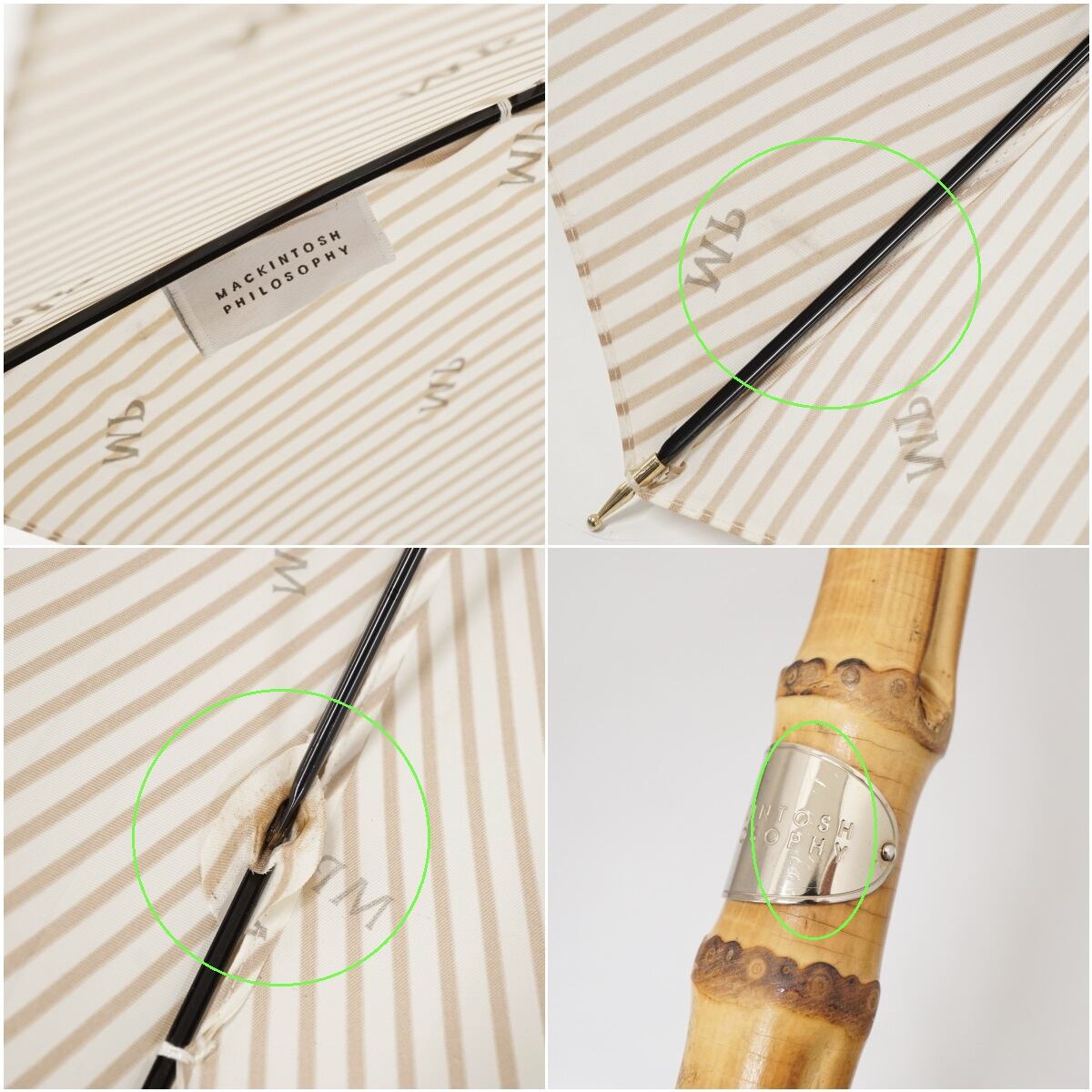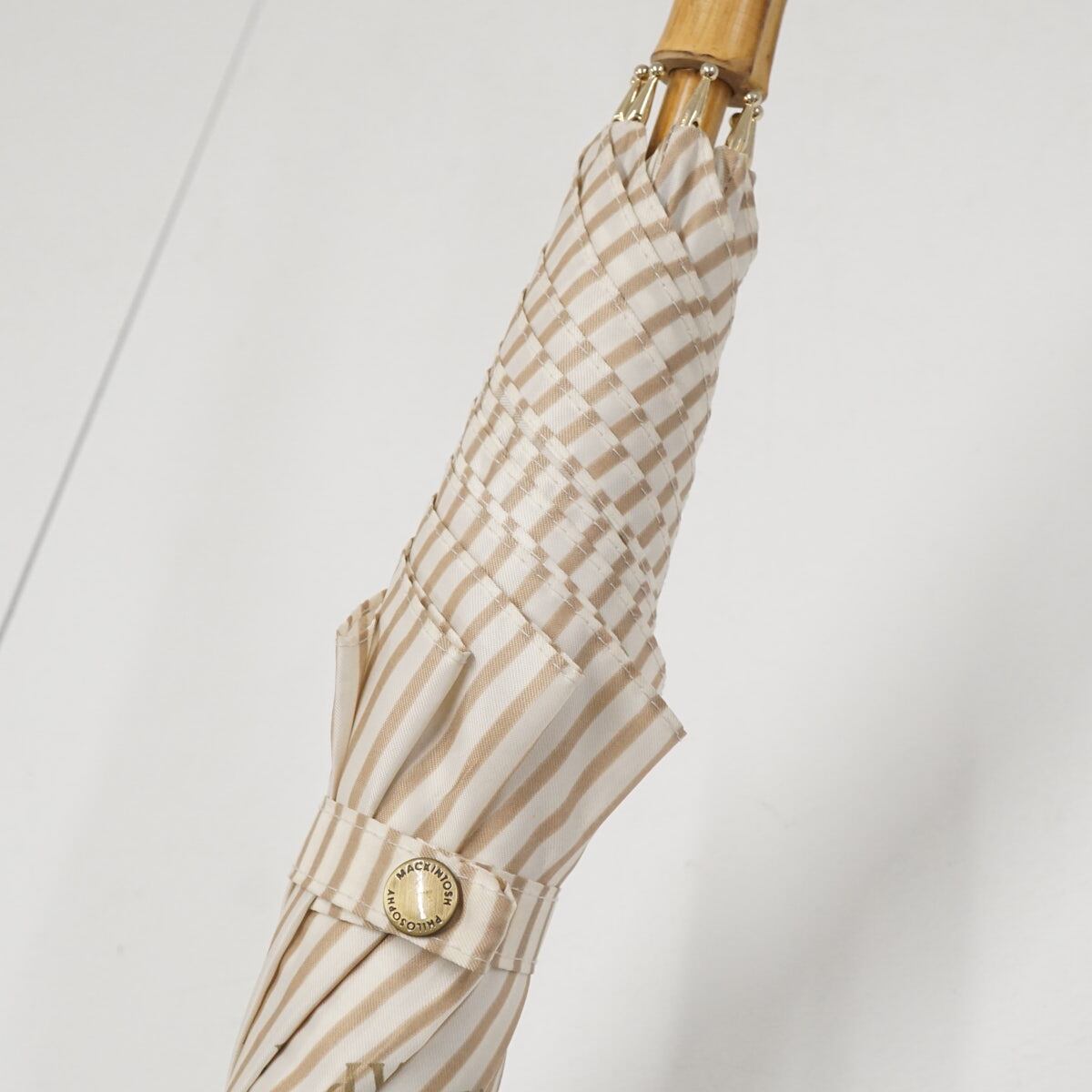 傘 MACKINTOSH PHILOSOPHY USED美品 ストライプ 寒竹手元 木製シャフト マッキントッシュフィロソフィー 60cm S3652