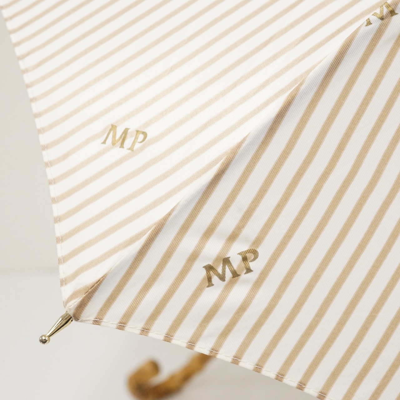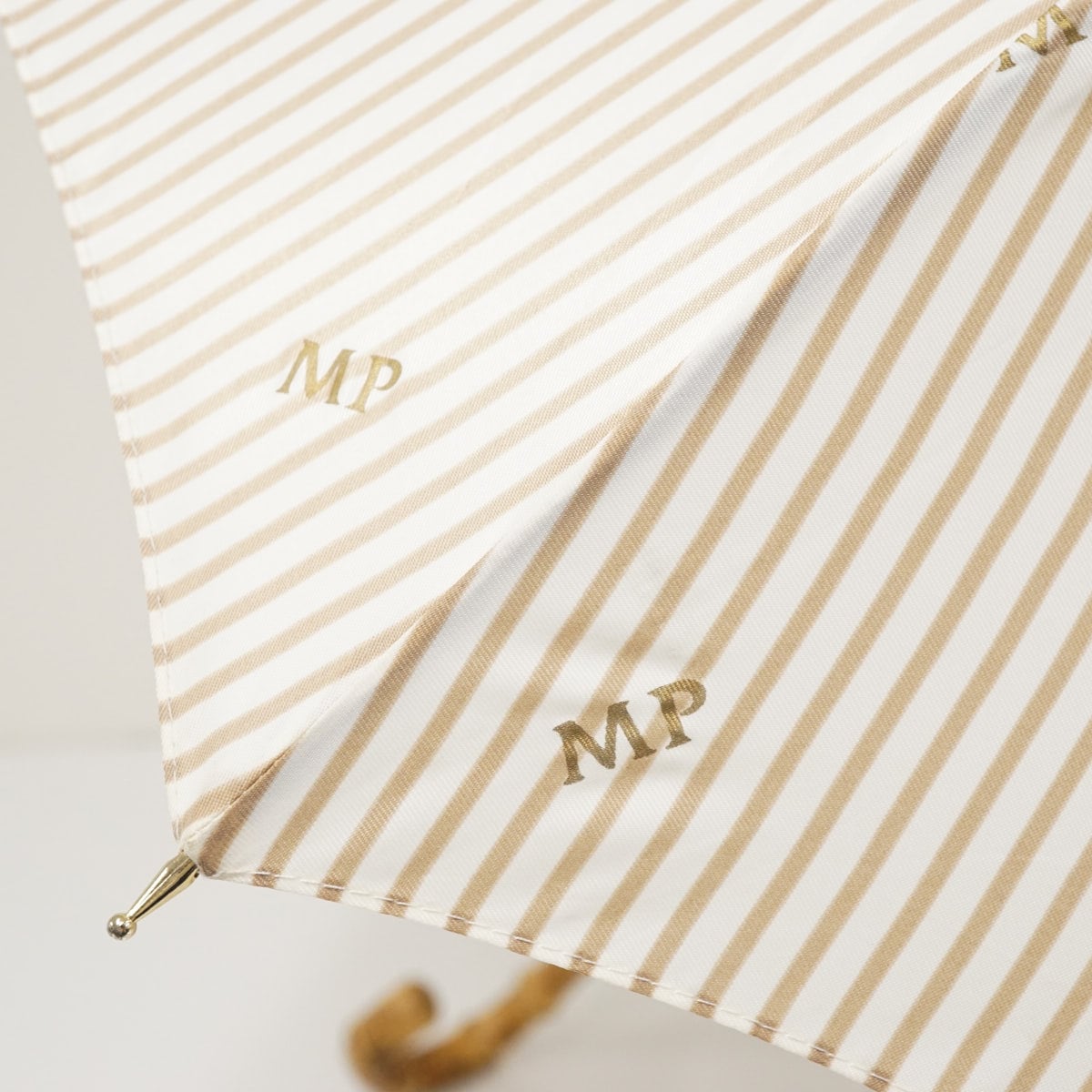 アイボリー×ベージュのストライプに「MP」ロゴを散りばめた、さりげないブランド感を感じられるデザインです。